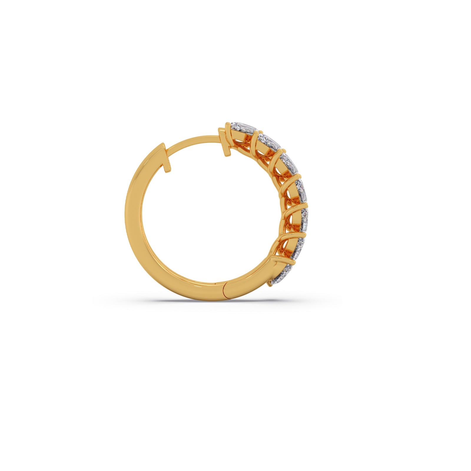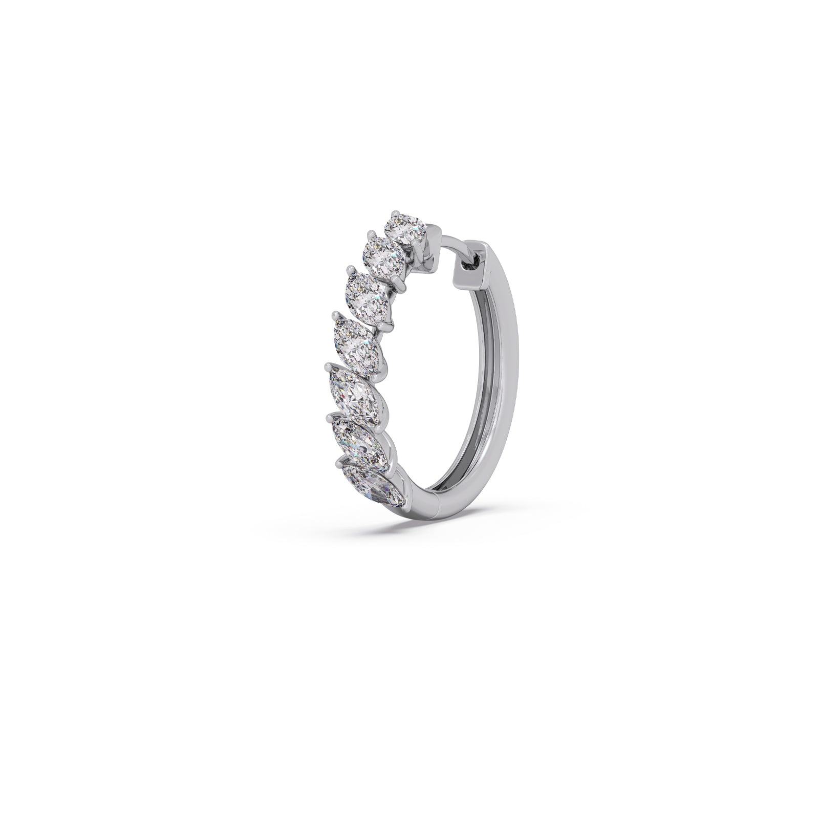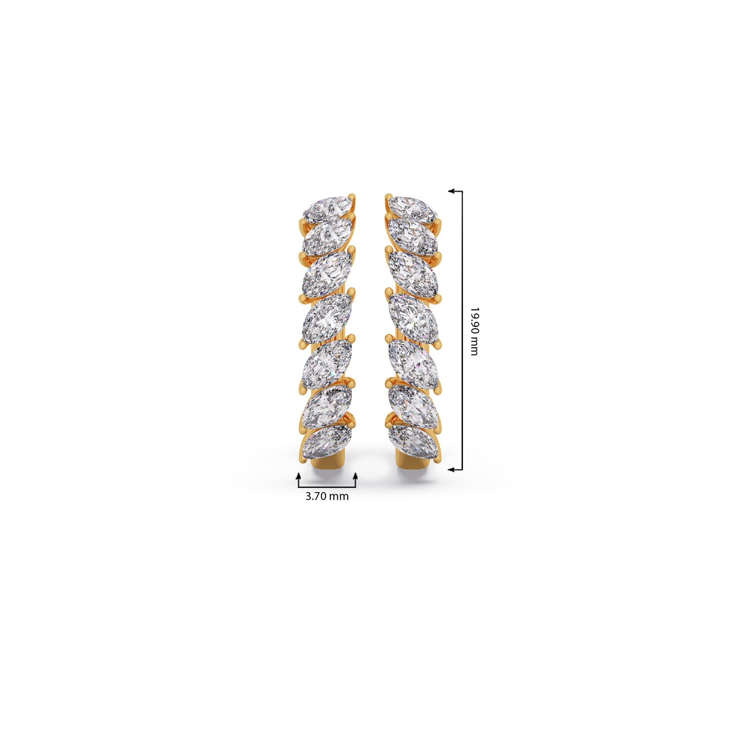 Elegant and timeless, these diamond hoop earrings feature 14 shimmering marquise-cut diamonds totaling 1.4 carats. Set in a sleek, minimalist design, the diamonds capture light beautifully, adding refined sparkle to any look. A perfect blend of simplicity and sophistication for everyday elegance or special occasions.
