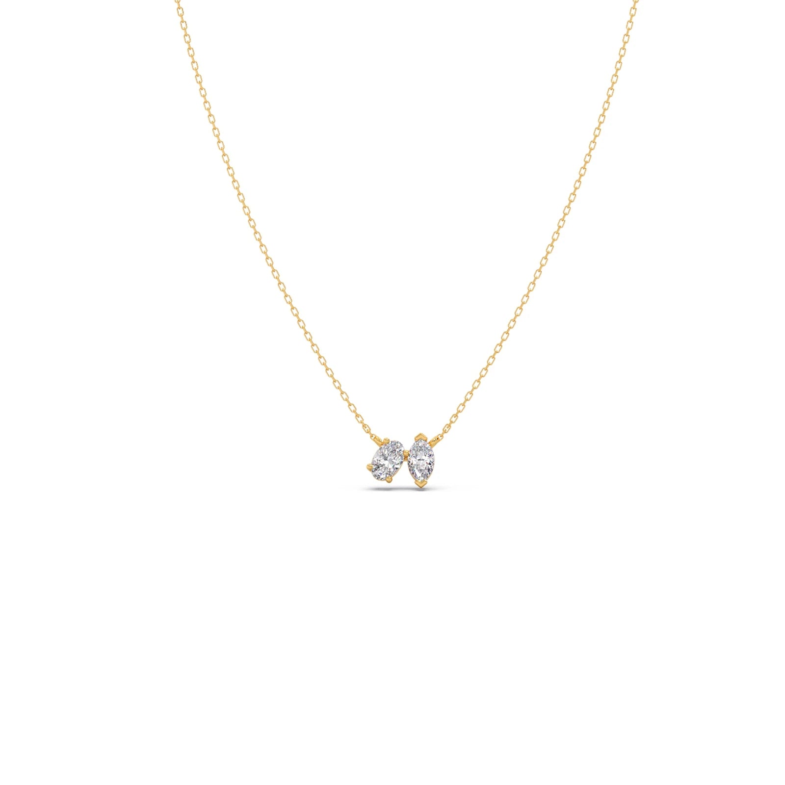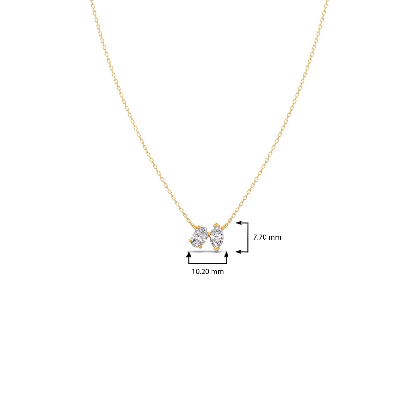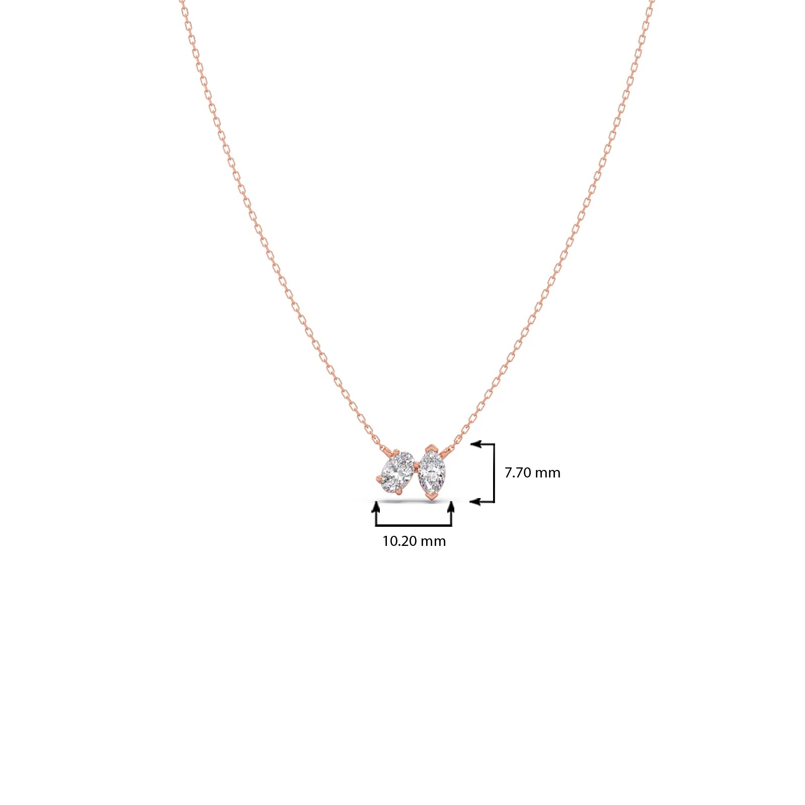 This elegant pendant features a captivating blend of a sleek marquise-cut diamond and a luminous oval-cut diamond. Their distinctive, elongated shapes combine to create a sophisticated and modern design with brilliant sparkle. Suspended gracefully, this versatile pendant adds a touch of unique elegance to any look.