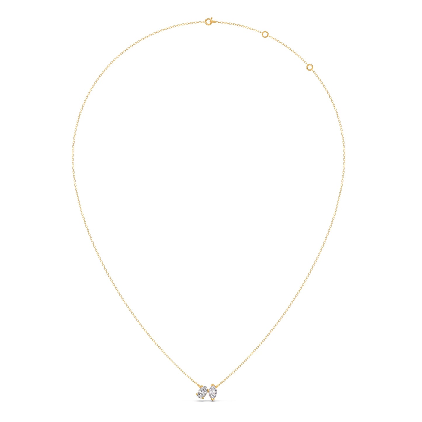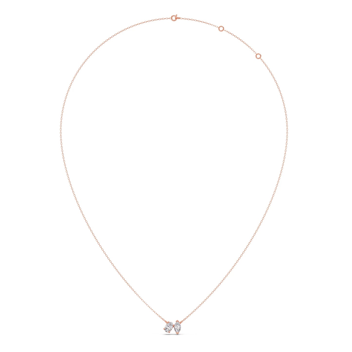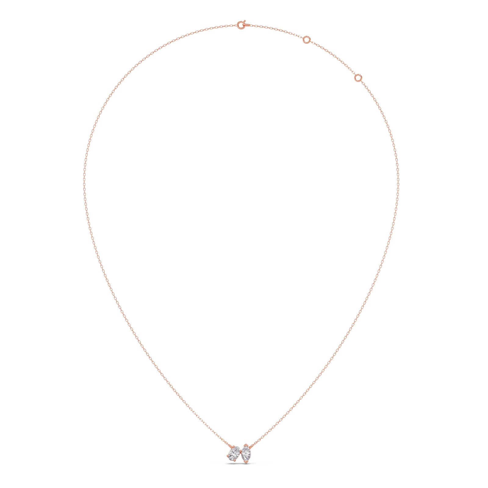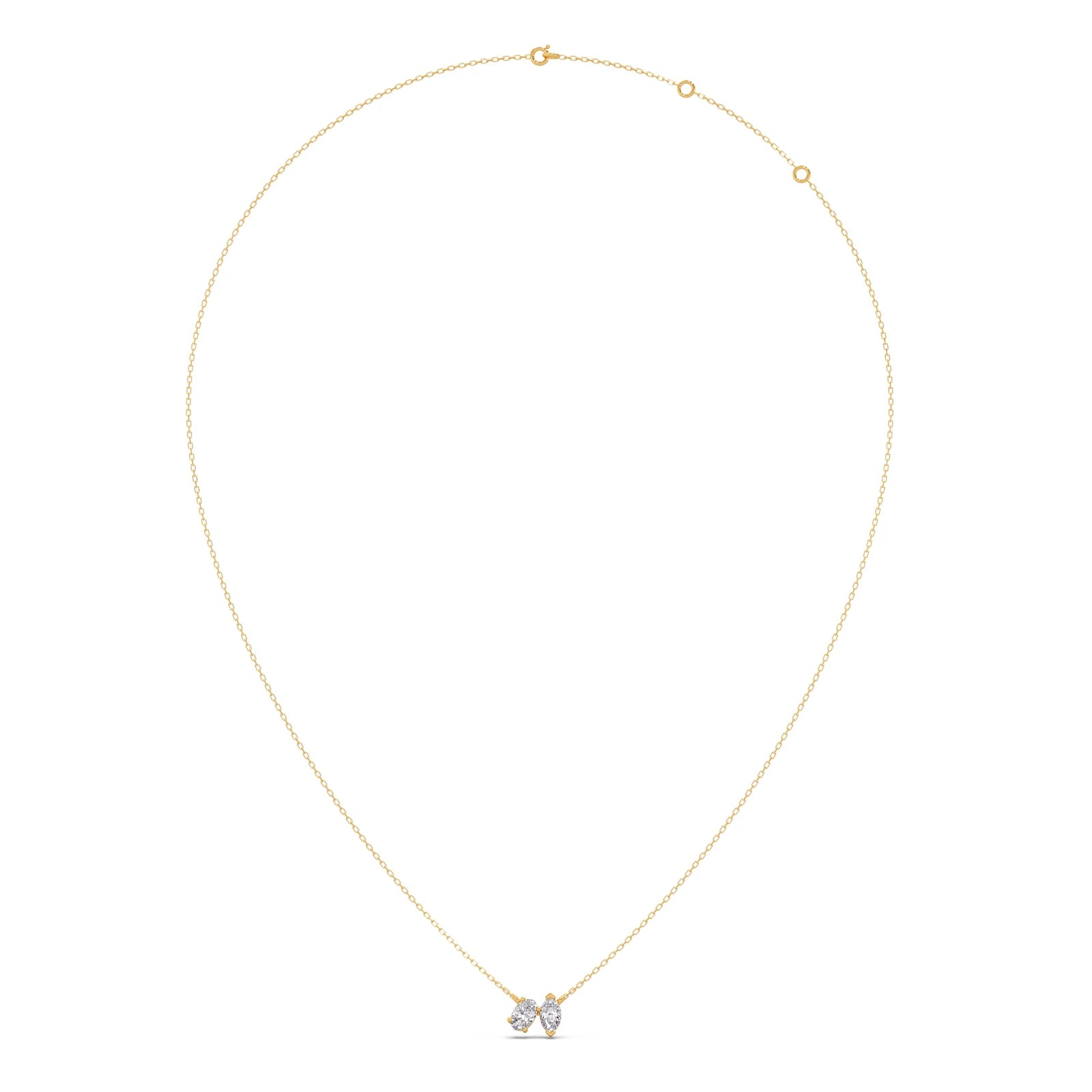 This elegant pendant features a captivating blend of a sleek marquise-cut diamond and a luminous oval-cut diamond. Their distinctive, elongated shapes combine to create a sophisticated and modern design with brilliant sparkle. Suspended gracefully, this versatile pendant adds a touch of unique elegance to any look.