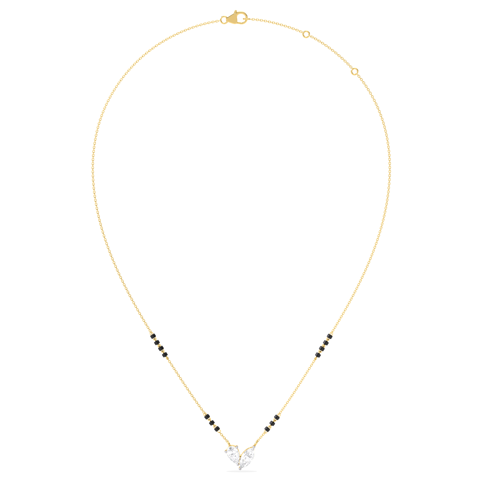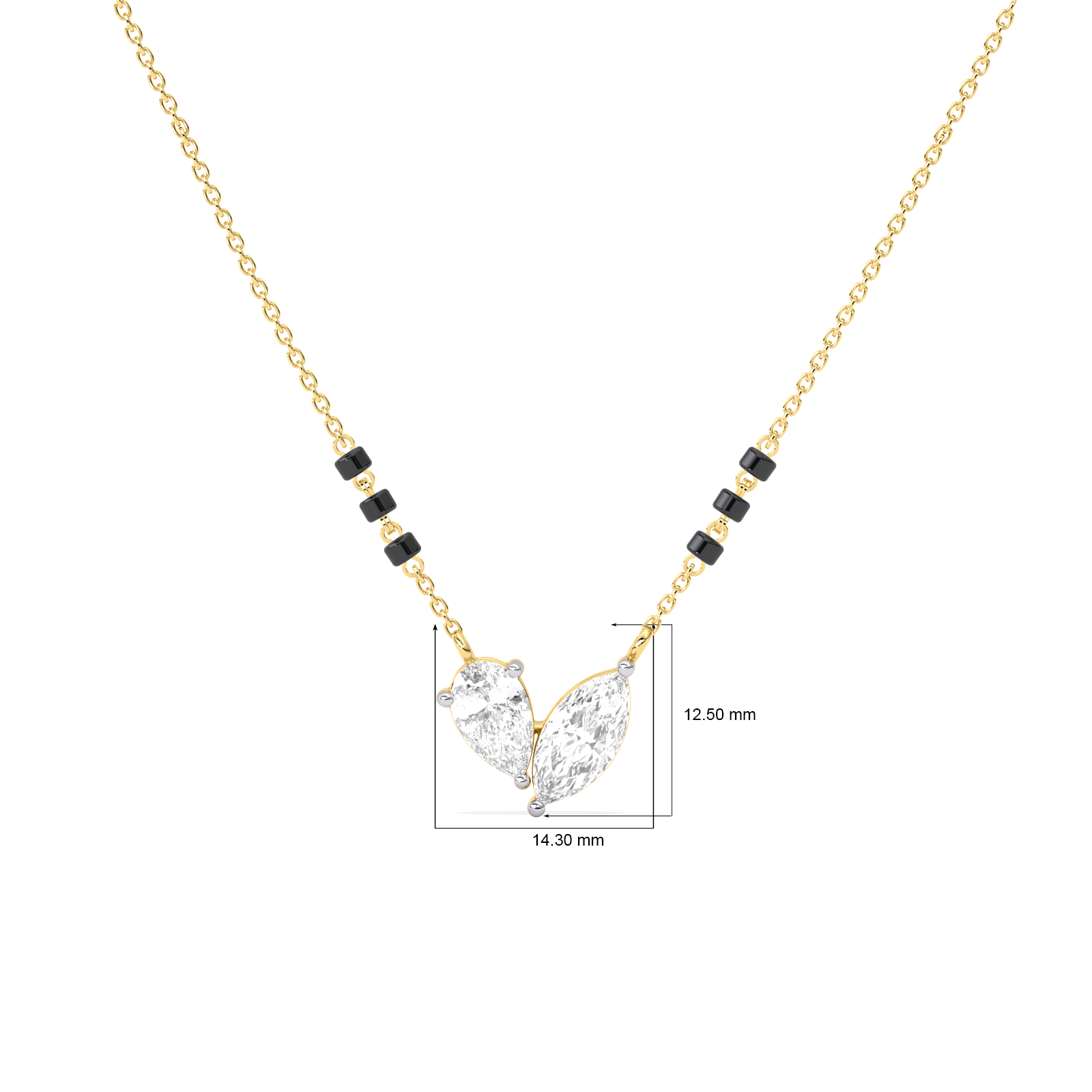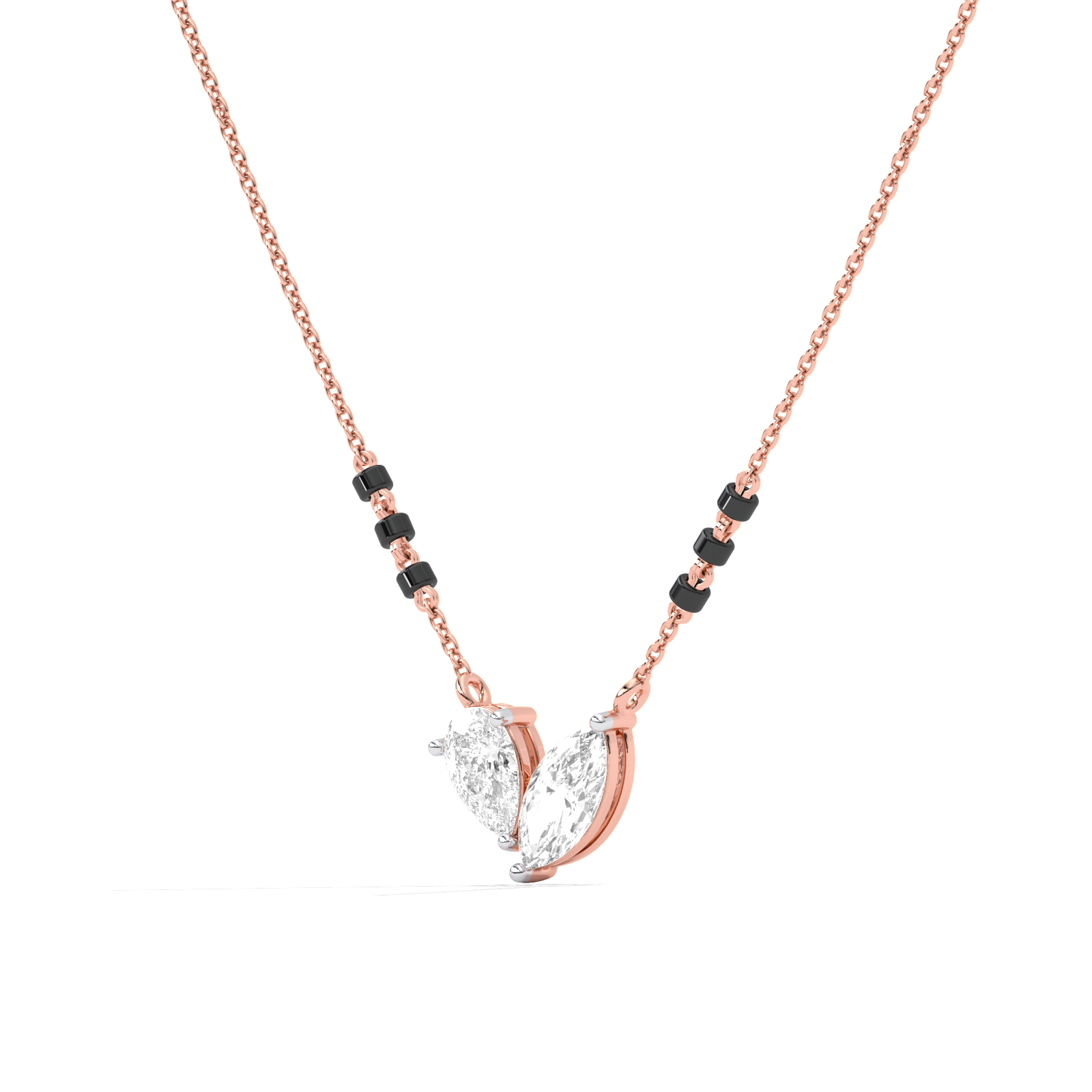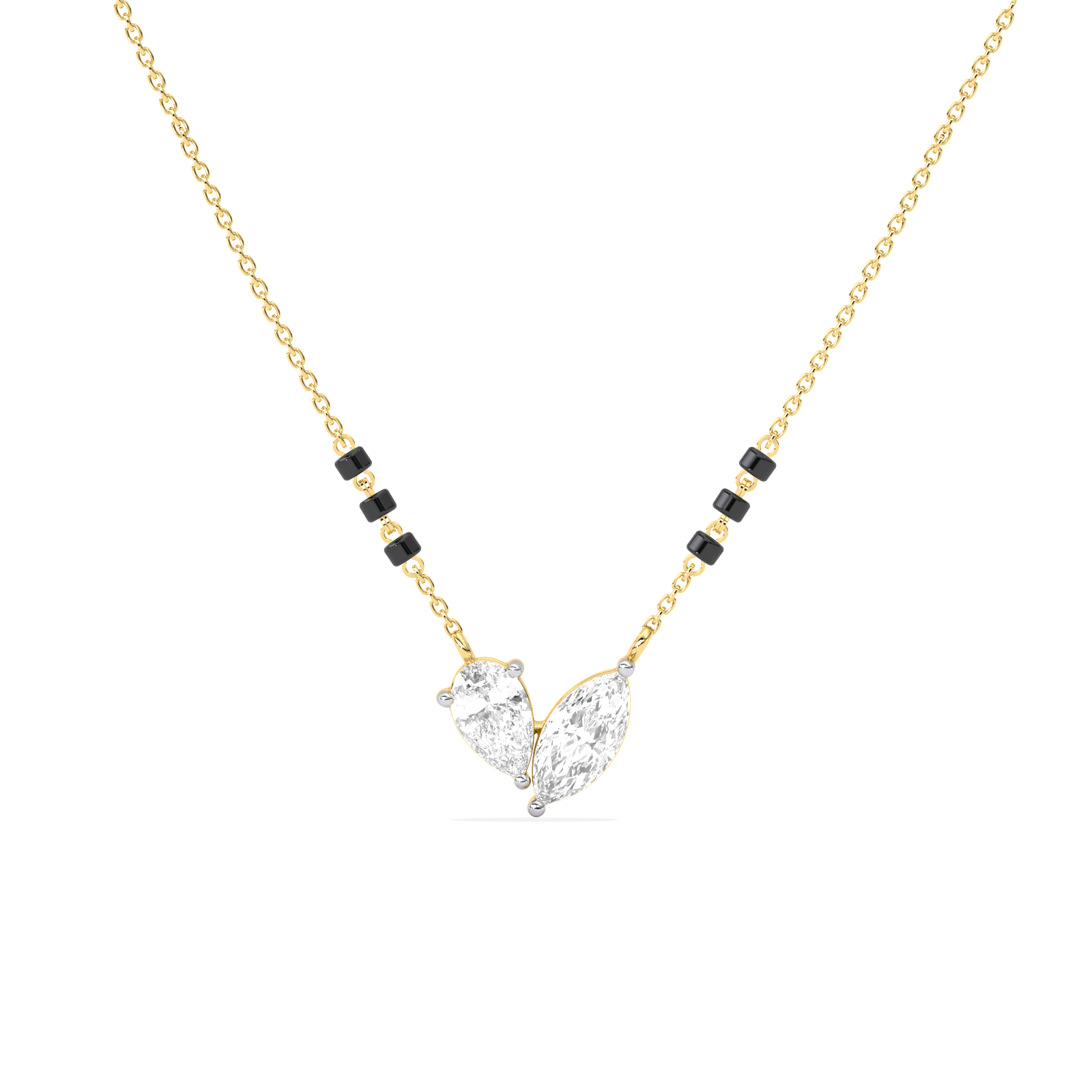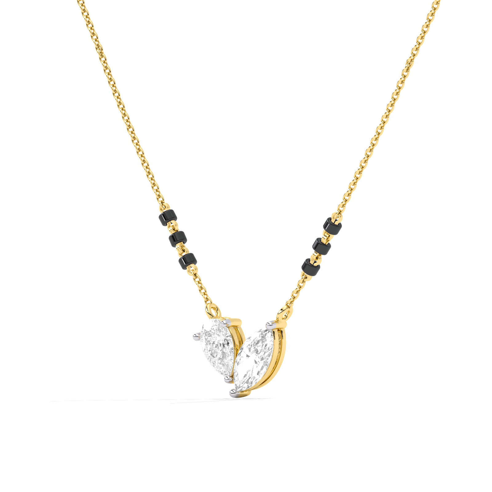 The Marquise & Pear Diamond Mangalsutra Necklace is a symbol of love and togetherness. With two radiant diamonds on a delicate gold chain with classic black beads, it blends tradition with modern elegance—perfect for the woman who cherishes both.