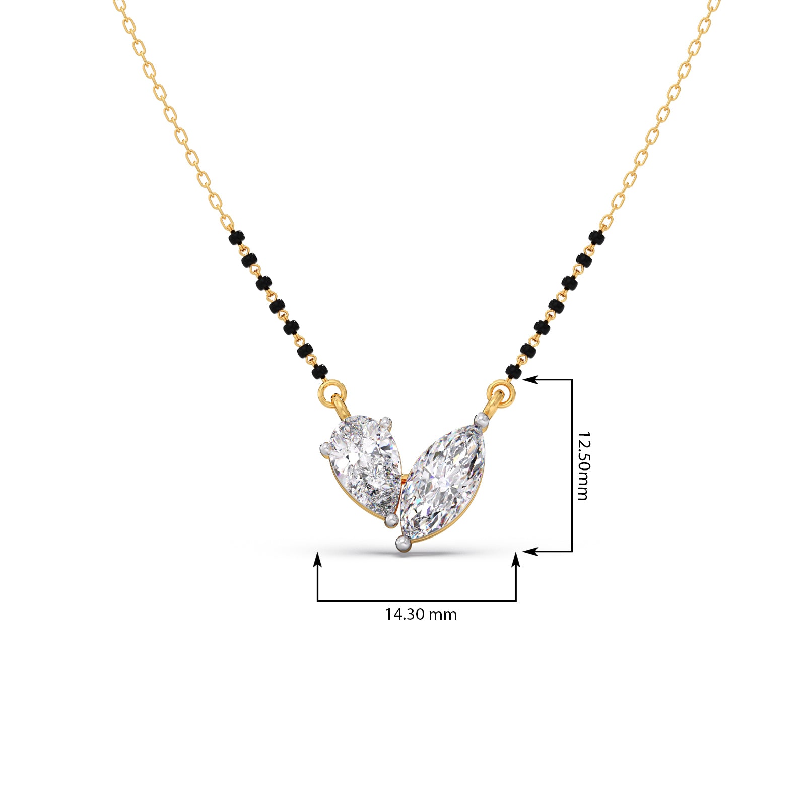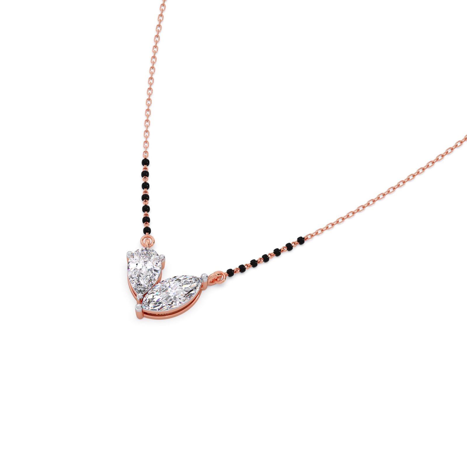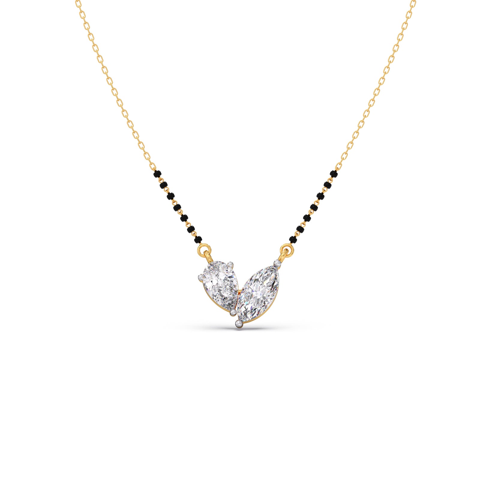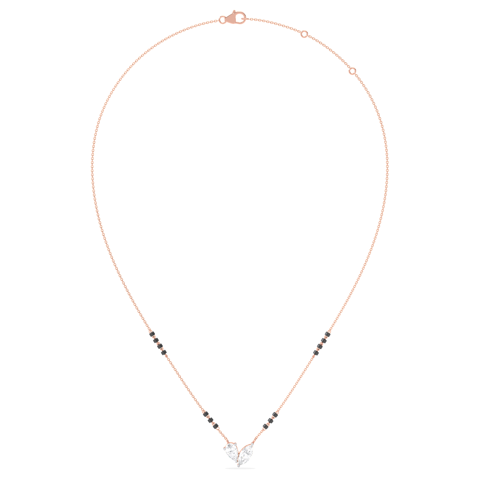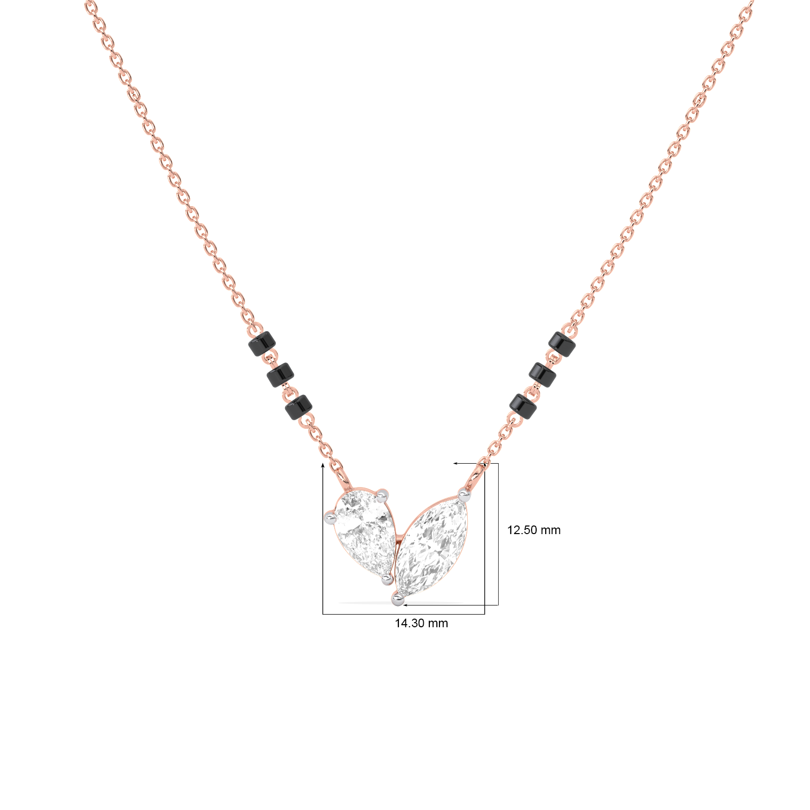 The Marquise & Pear Diamond Mangalsutra Necklace is a symbol of love and togetherness. With two radiant diamonds on a delicate gold chain with classic black beads, it blends tradition with modern elegance—perfect for the woman who cherishes both.