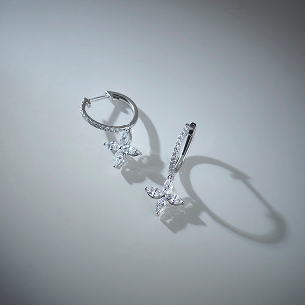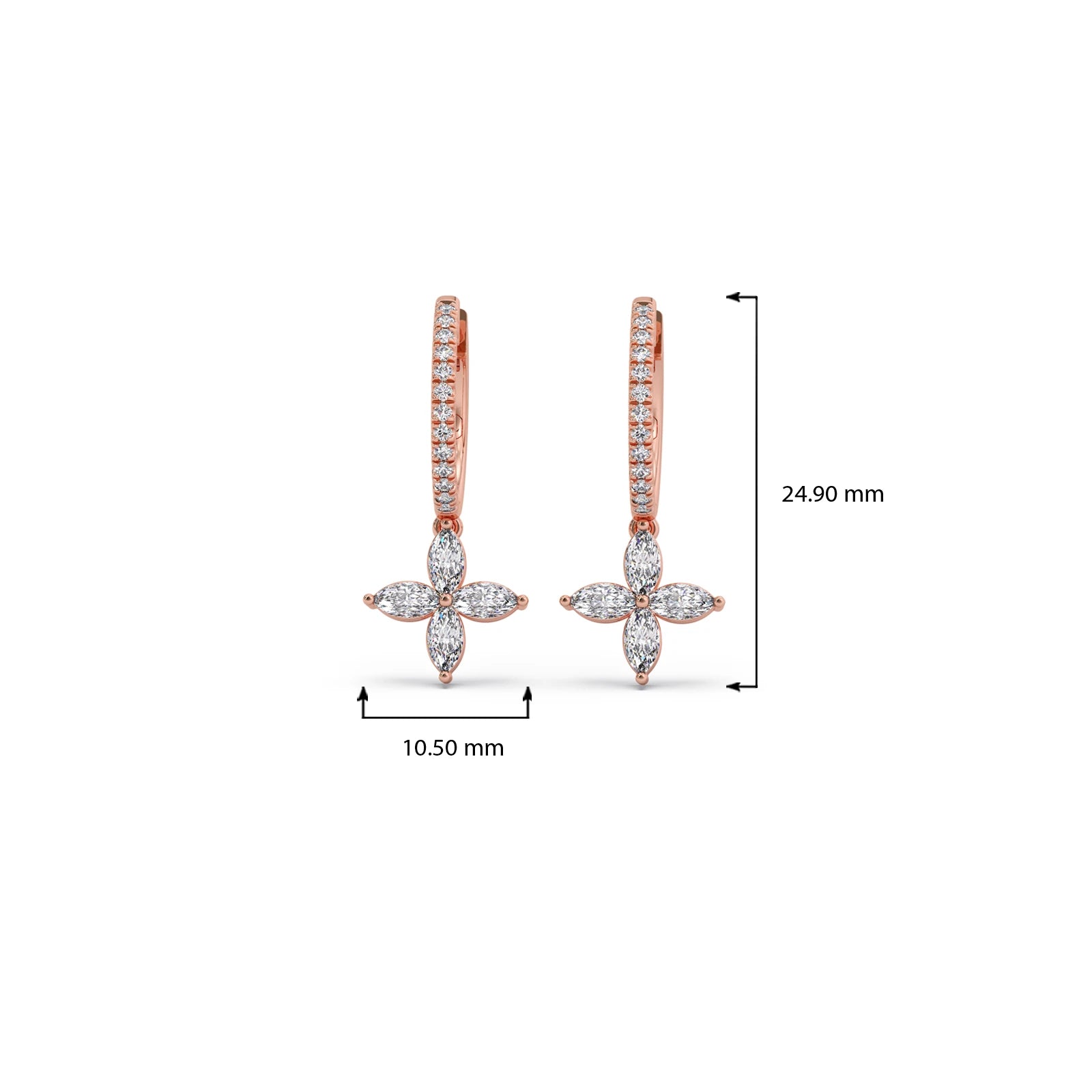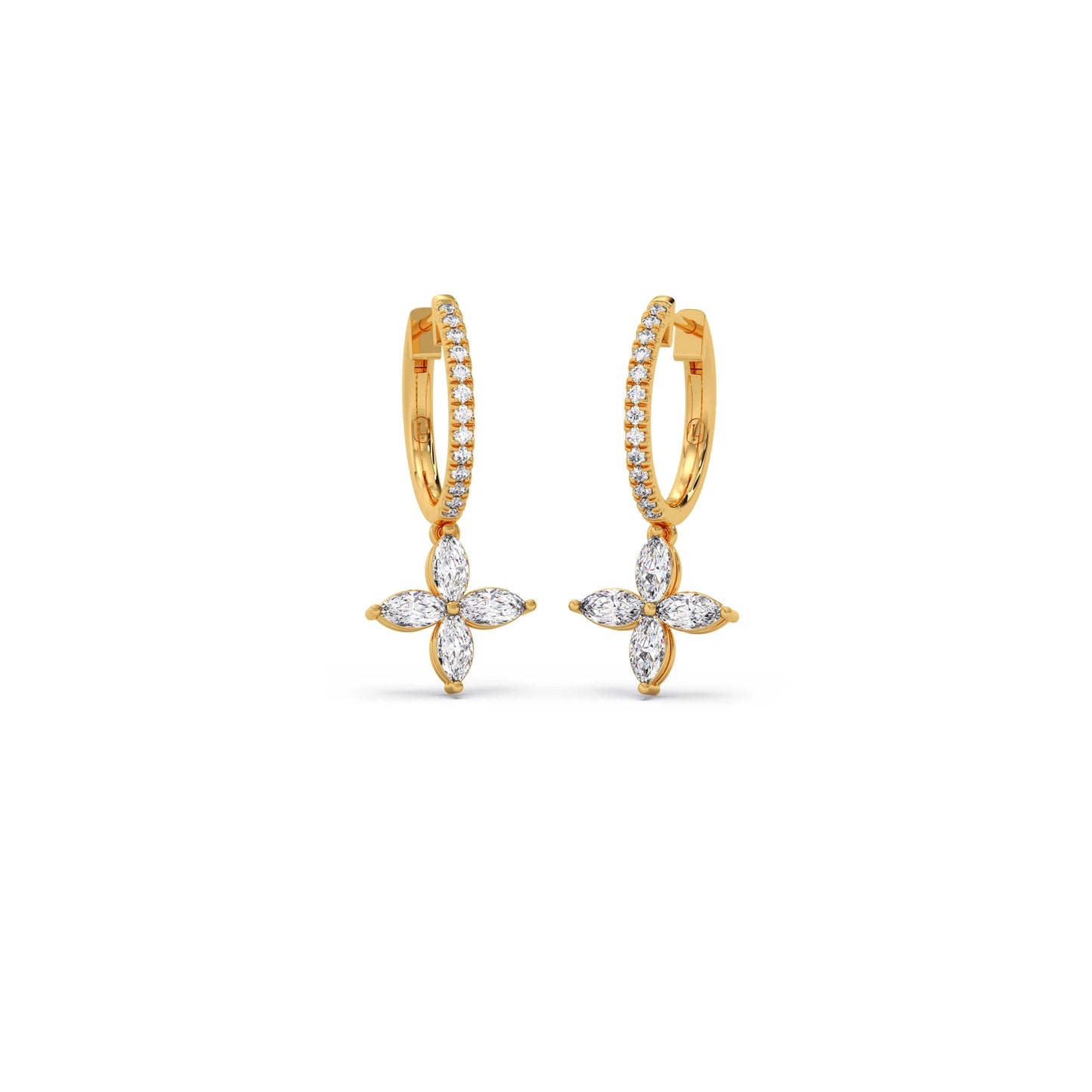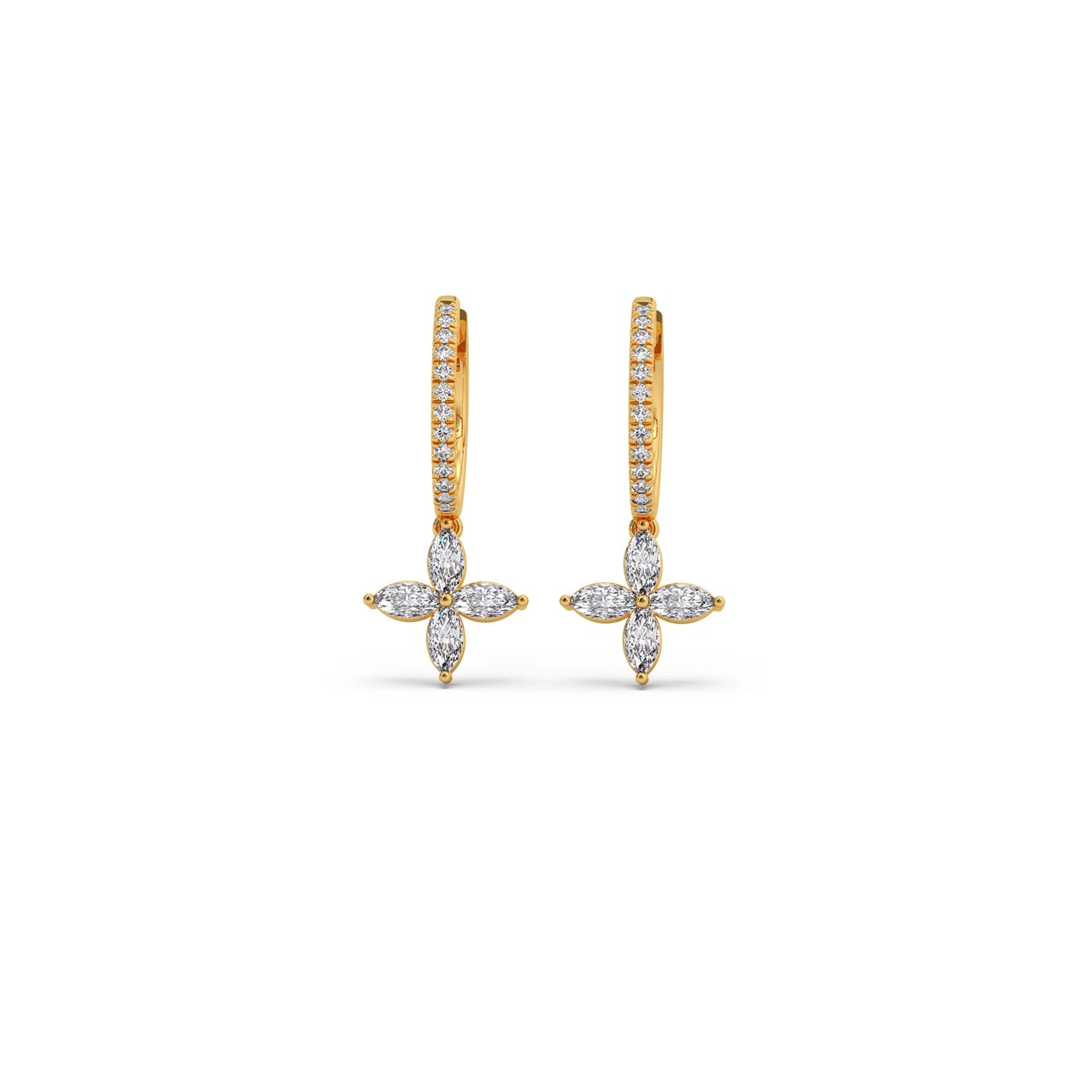 Unveil enchanting sparkle with our Marquise & Round Diamond Dangle Earrings. Featuring delicate marquise diamonds forming elegant floral clusters, complemented by brilliant round diamonds, these captivating earrings sway gracefully with every movement. Perfect for adding sophisticated charm and a touch of unique artistry to your look.