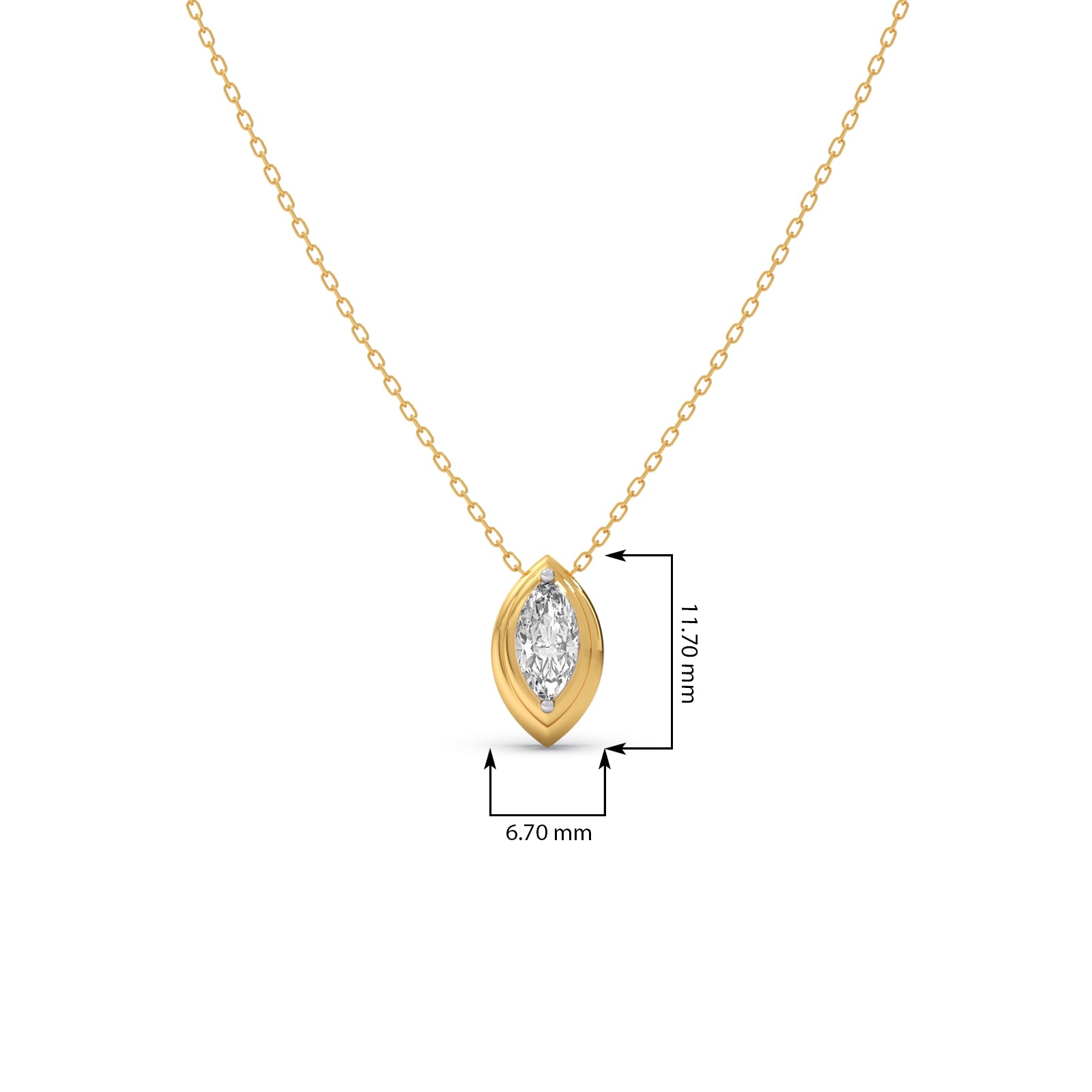Accentuate your neckline with our captivating Marquise Shape Diamond Pendant Necklace. This elegant piece features a brilliant marquise-cut diamond, renowned for its elongated, boat-like shape that maximizes sparkle and creates an illusion of greater size. Set delicately to enhance its unique silhouette, this pendant adds a touch of sophisticated allure and refined brilliance to any outfit.