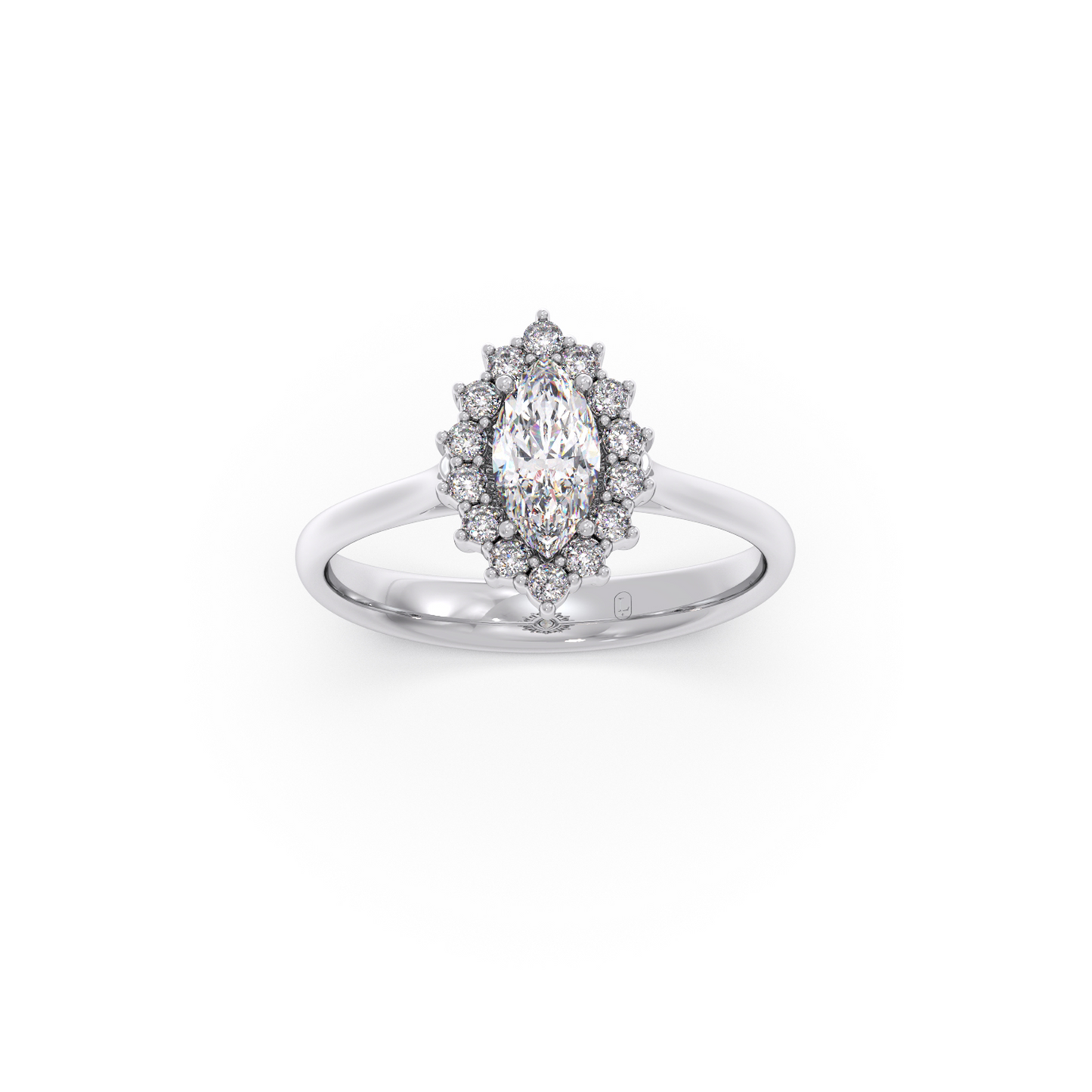 This Marquise Shape Diamond with Halo Setting Ring is a true symbol of elegance. The halo setting enhances the unique marquise diamond, creating a design that embodies beauty and sophistication.✨💍