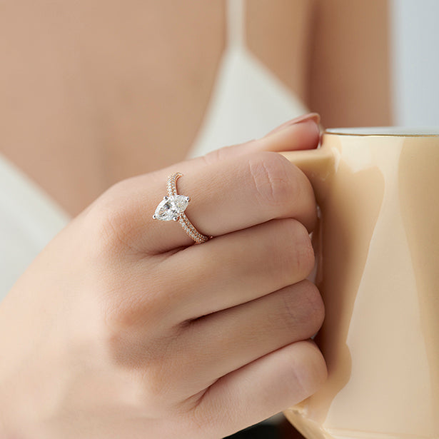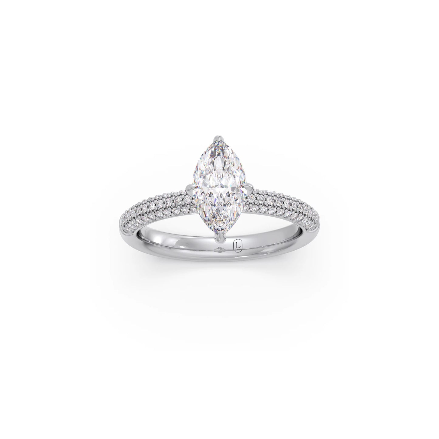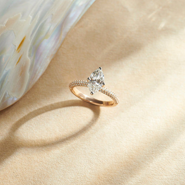 Slip this ring onto your finger, and you'll feel an immediate sense of grace. The marquise diamond, with its delicate points and sweeping curves, rests like a luminous petal. It's a shape that feels inherently feminine, elongating your finger with an elegant touch. As you move your hand, the diamond catches the light in a dazzling display – a subtle yet constant reminder of the brilliance within you and the love that brought this treasure to your hand.