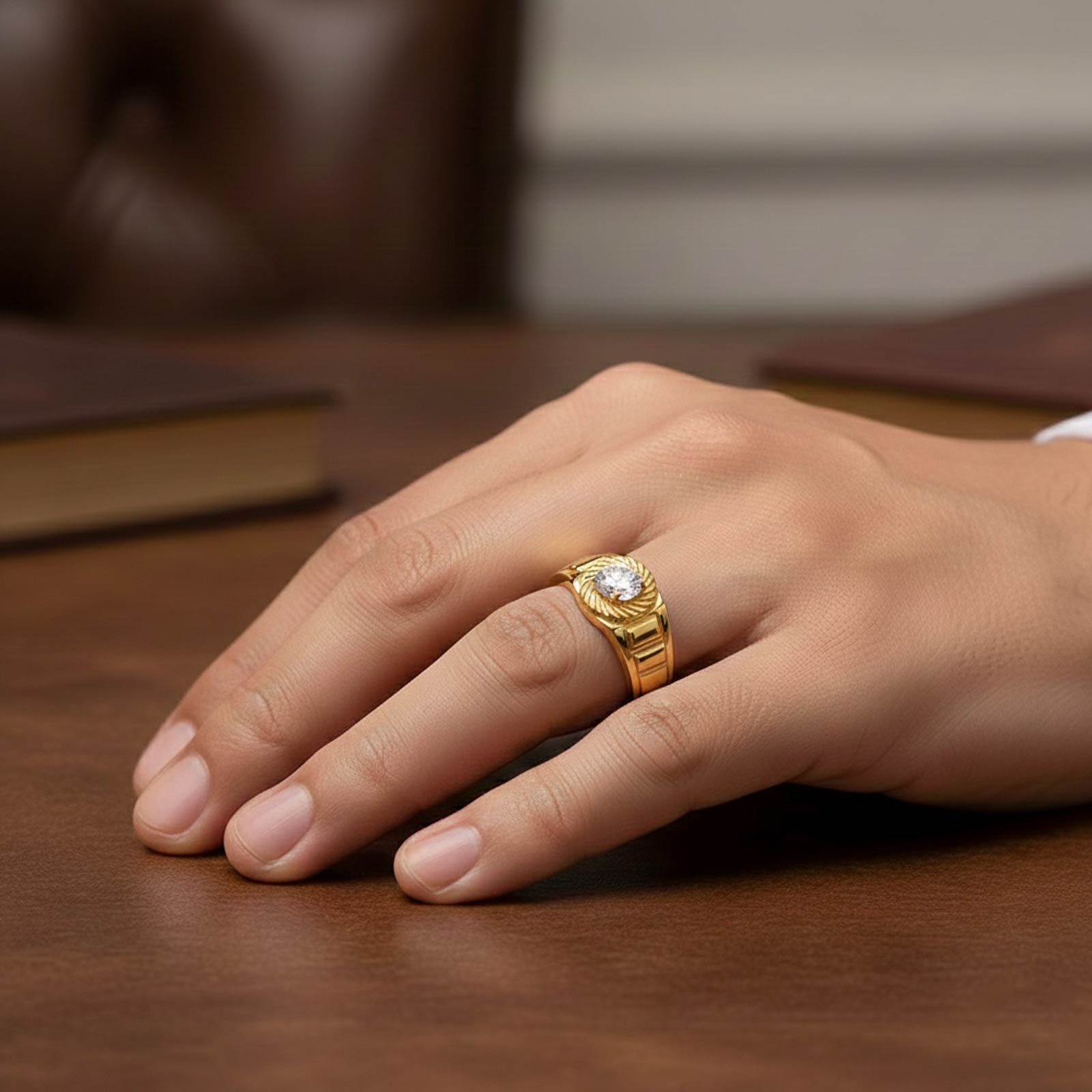 Dual Tone Luxurious Diamond Geometric Men's Band