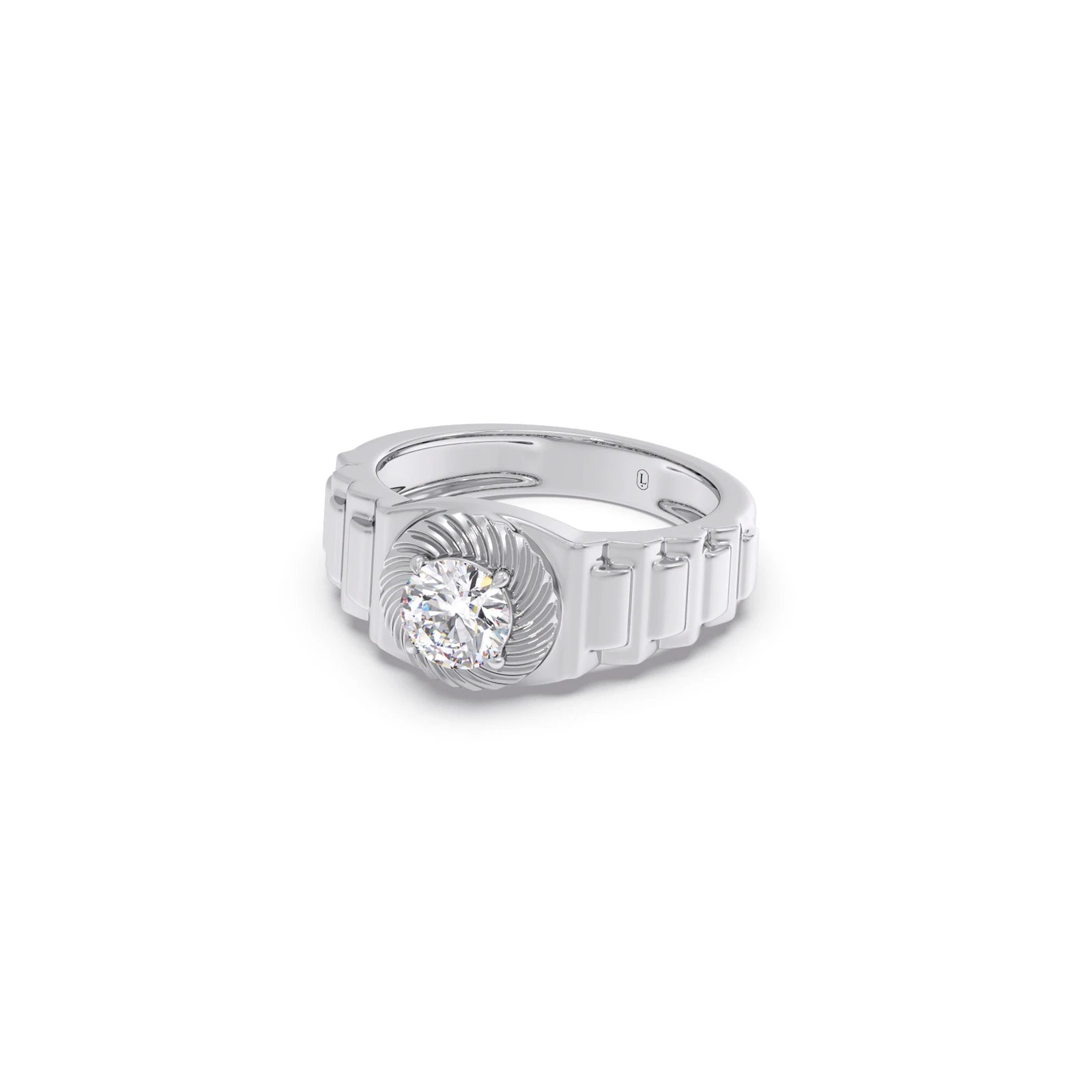 Mens Textured Solitaire Ring