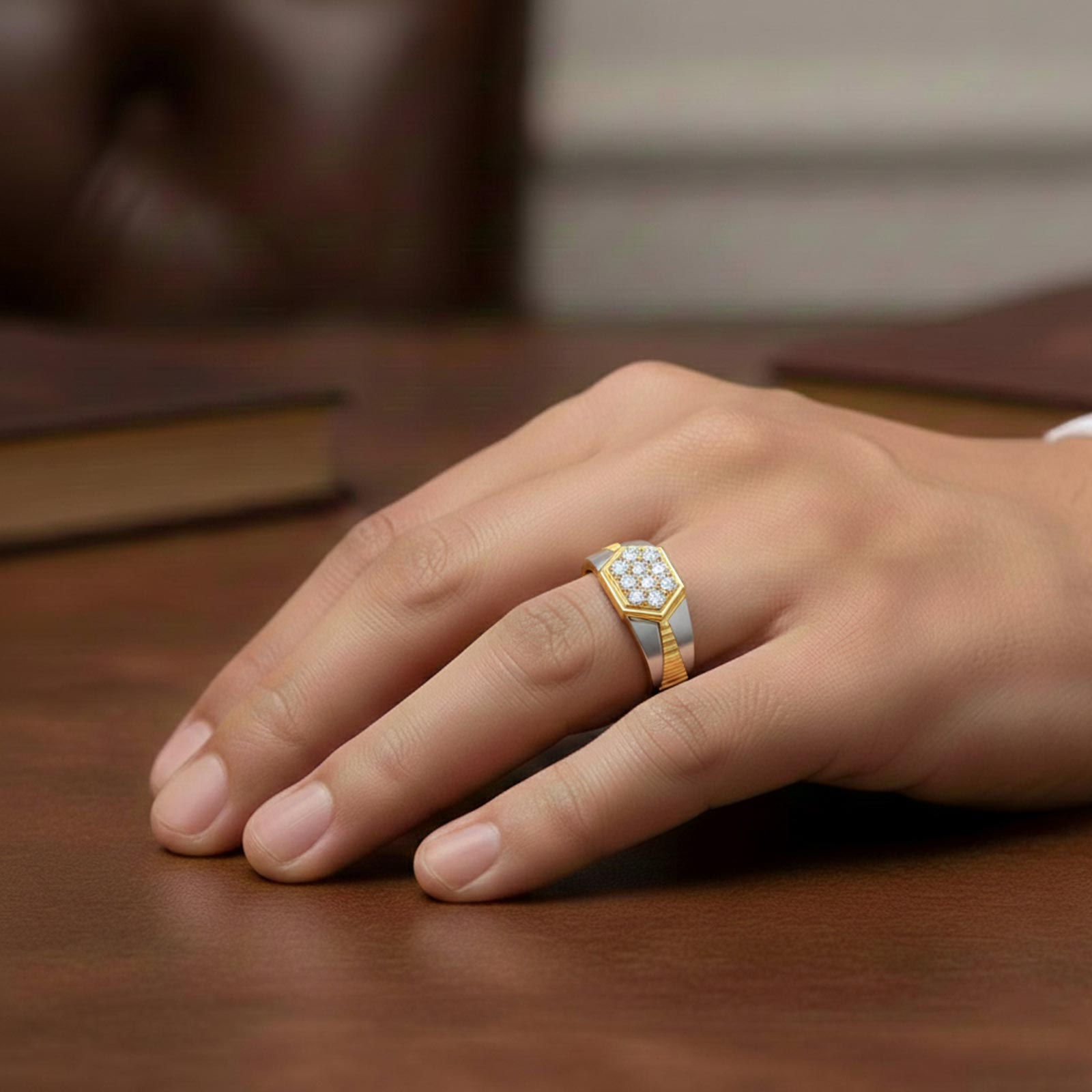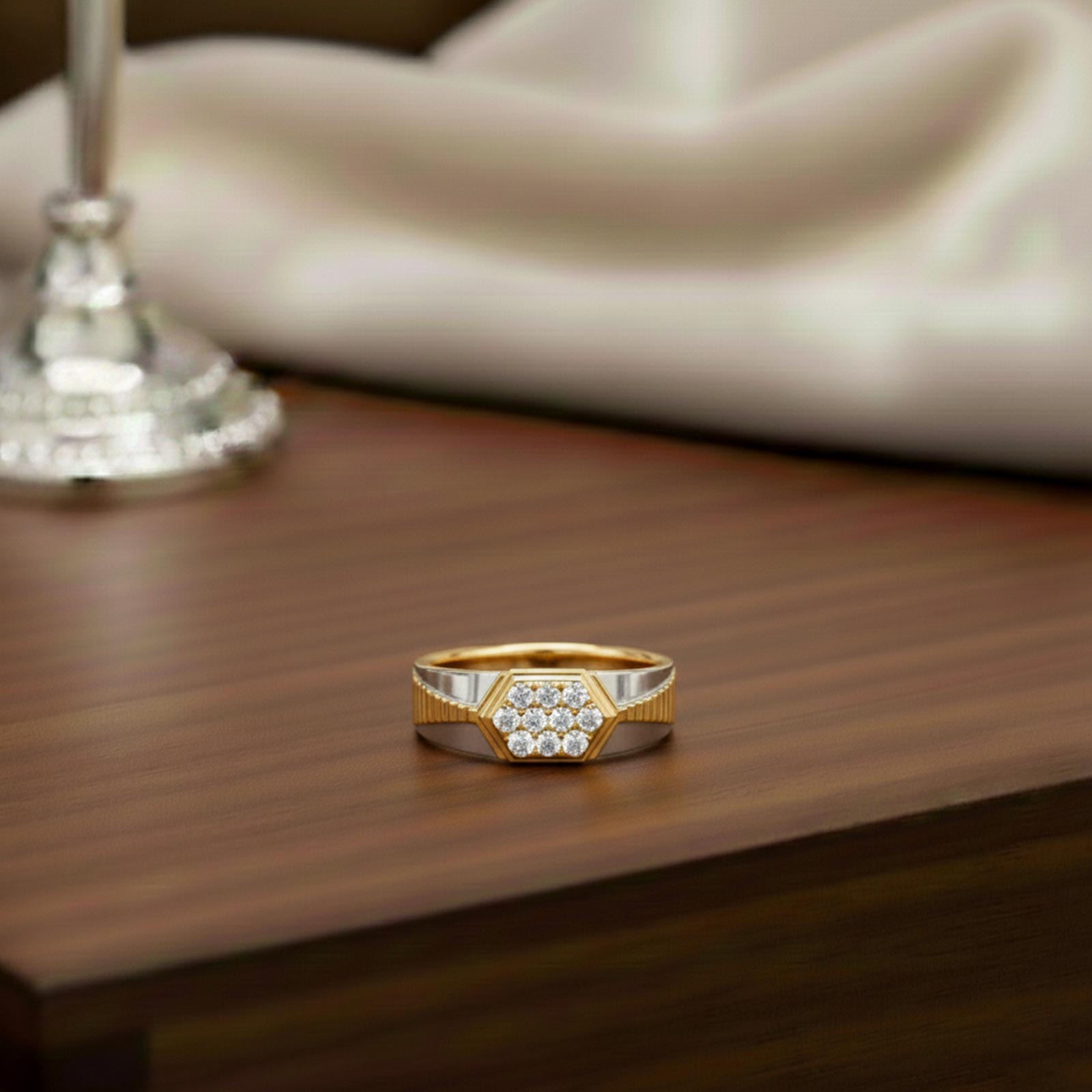 Dual Tone Luxurious Diamond Geometric Men's Band
