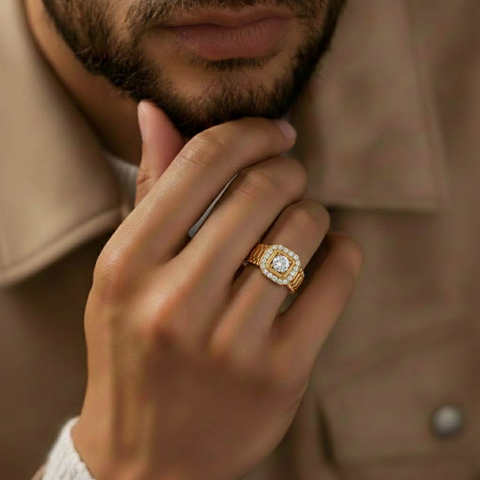 Dual Tone Luxurious Diamond Geometric Men's Band