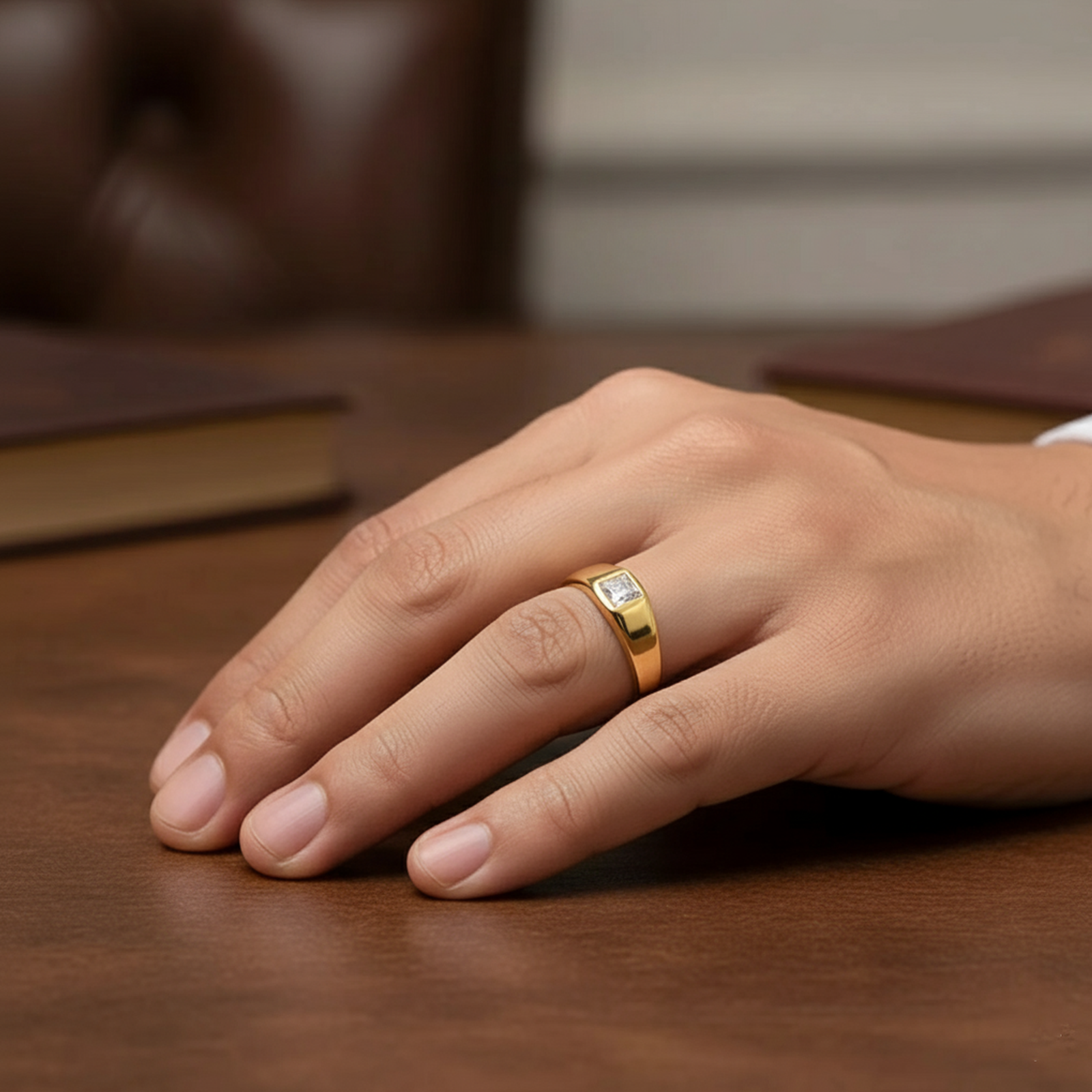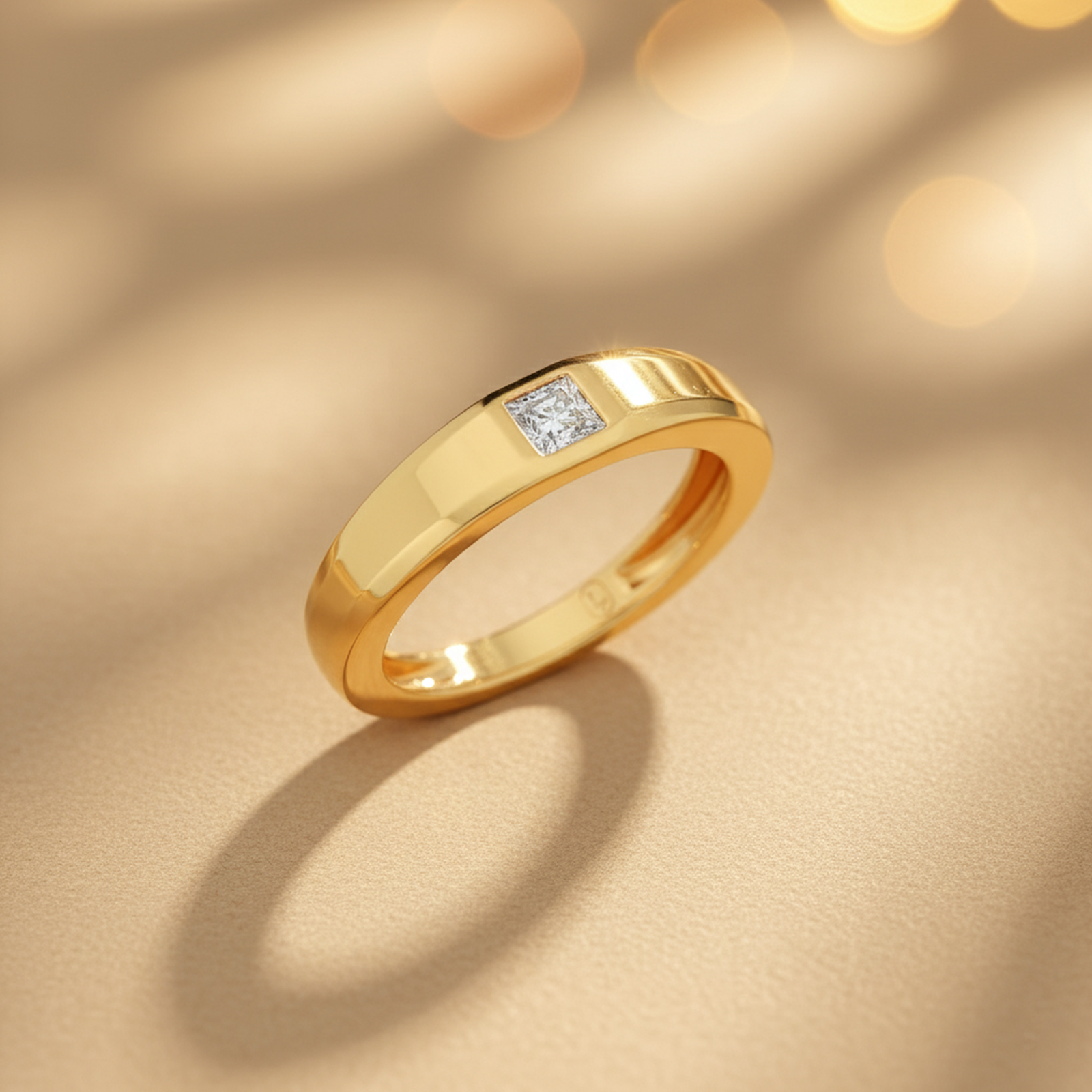 Command attention with this bold and sophisticated men's band. A single, striking princess-cut diamond takes center stage, expertly set to maximize its brilliant fire and clean lines. This band offers a powerful statement of modern elegance and timeless strength.