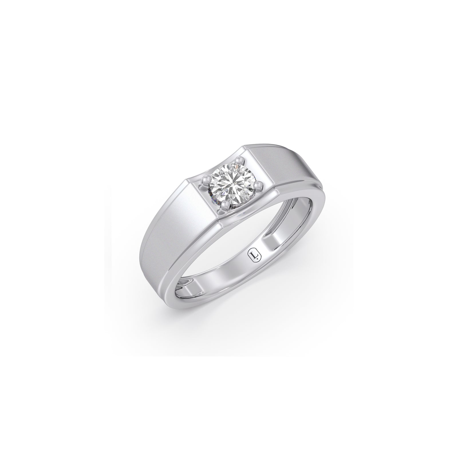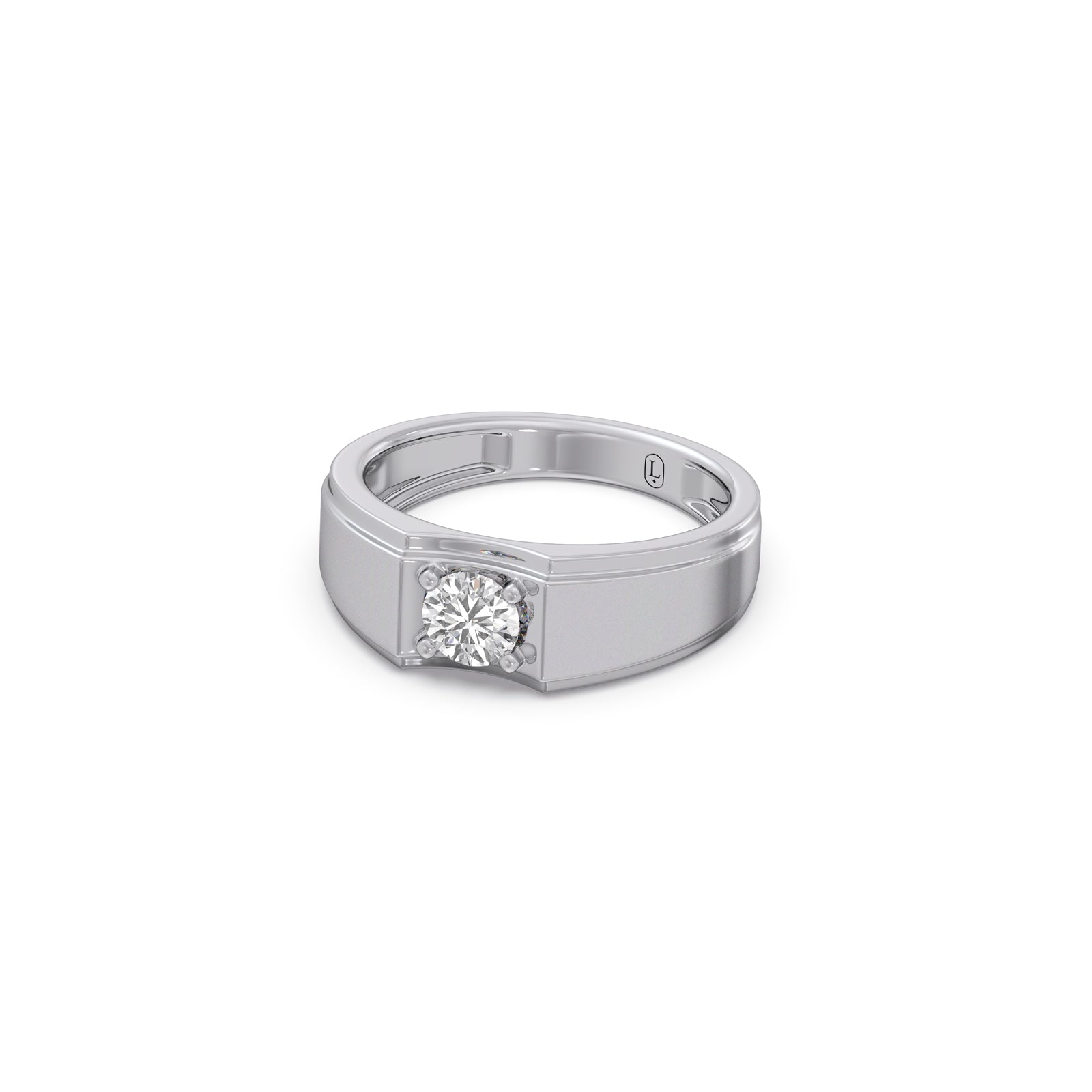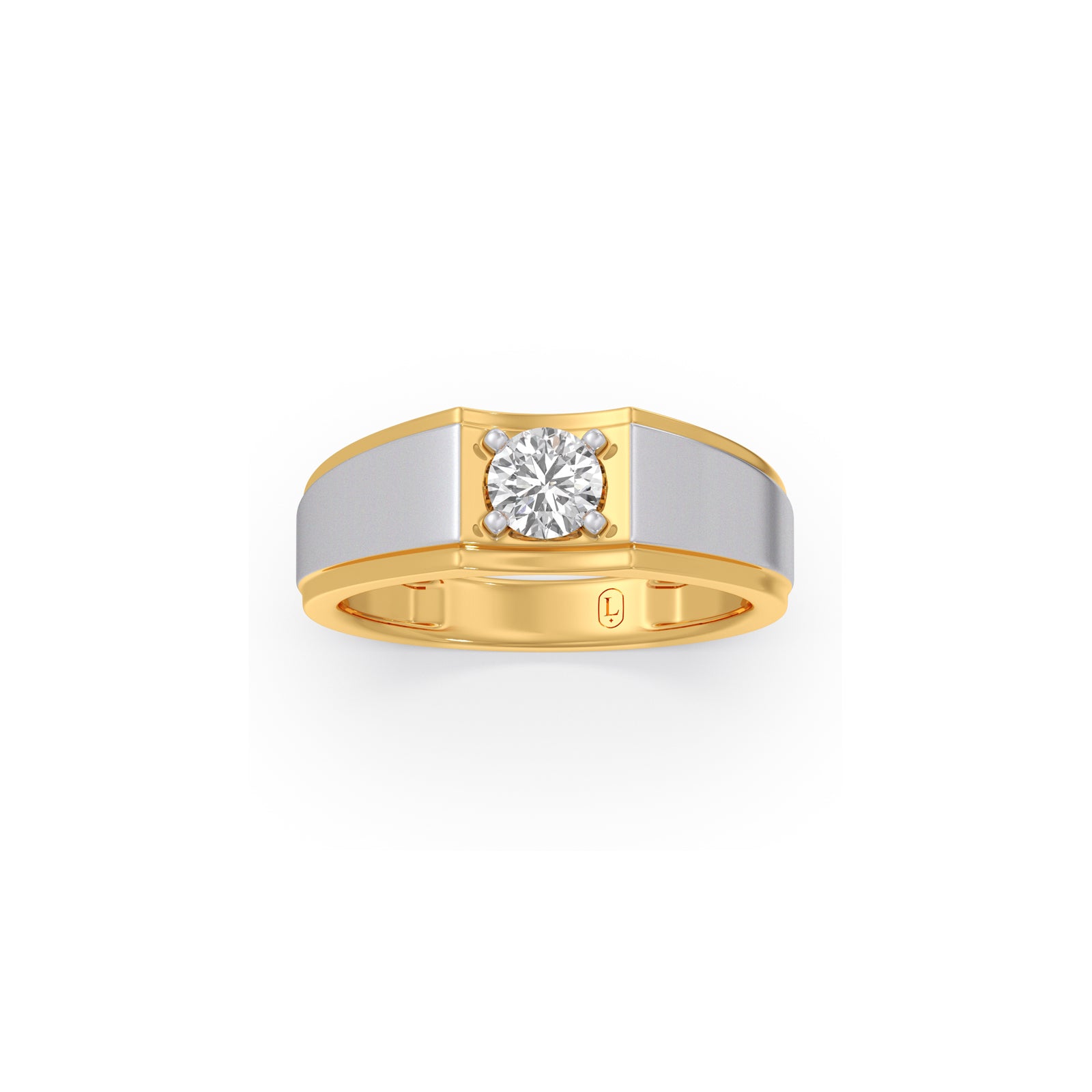 The Men's Two-Tone Prong-Set Solitaire Band showcases timeless elegance with a modern twist. Featuring a striking solitaire diamond secured in a classic prong setting, this ring is designed for sophistication. The contrasting two-tone band adds depth and style, making it a perfect statement of refined masculinity.