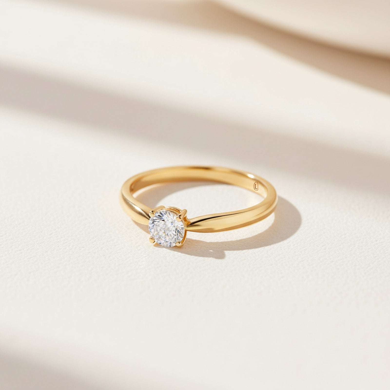This classic and elegant round solitaire ring showcases a brilliant diamond set in a polished yellow gold band. The timeless four-prong setting allows the stone to catch the light from every angle. This exquisite ring is a symbol of everlasting love, perfect for a proposal or a special anniversary.