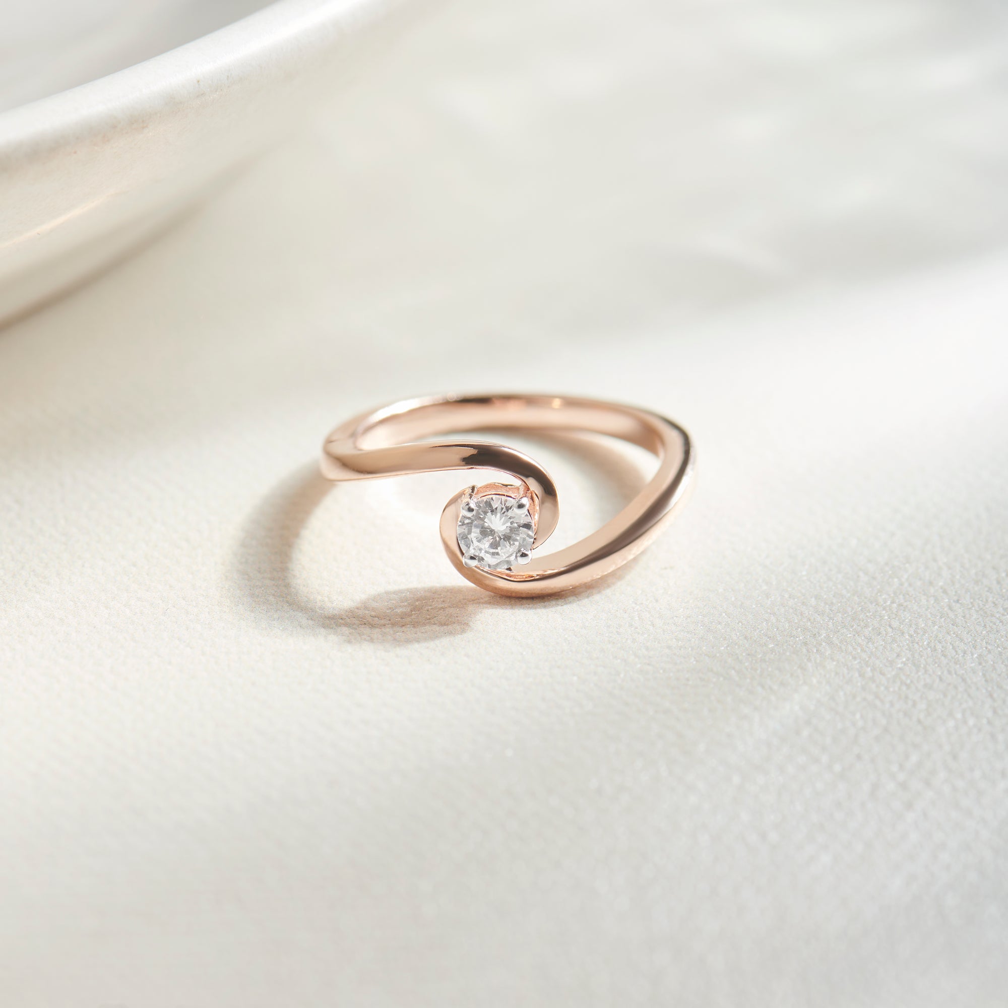 The Modern Swirl Solitaire Ring features a graceful, flowing design that beautifully cradles a stunning center stone. Its sleek, contemporary curves add a touch of elegance and movement, creating a unique yet timeless look. Perfect for those who appreciate modern sophistication with a romantic twist.