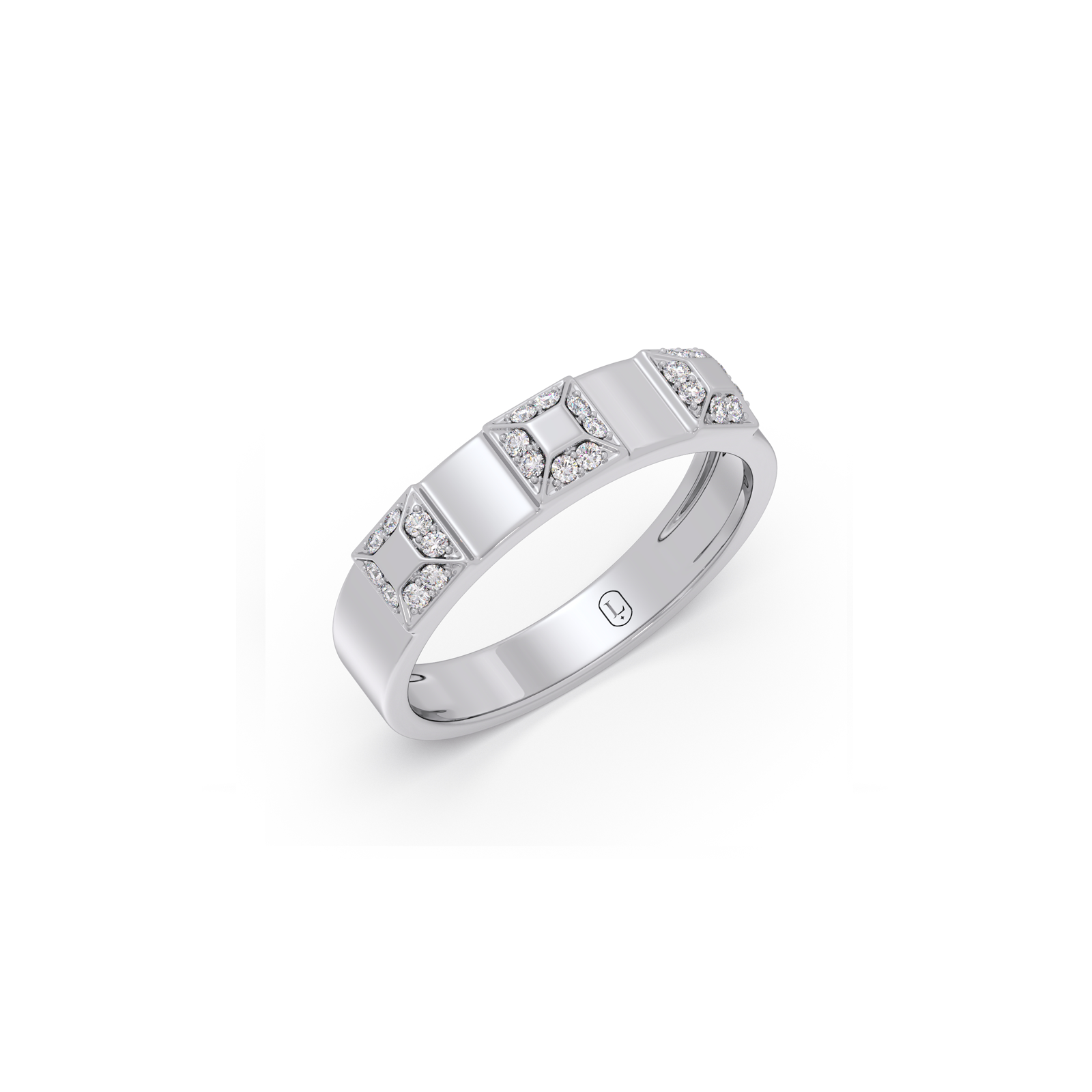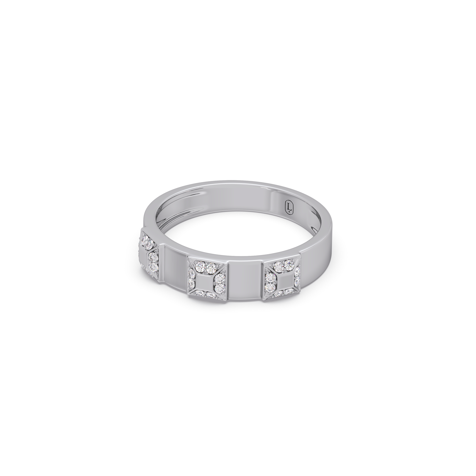 These Mosaic Platinum Couple Band features a unique square shape or modern minimalist design, crafted in classic round diamonds. Their delicate size and sophisticated sparkle make him suitable for both everyday casual wear and formal attire.