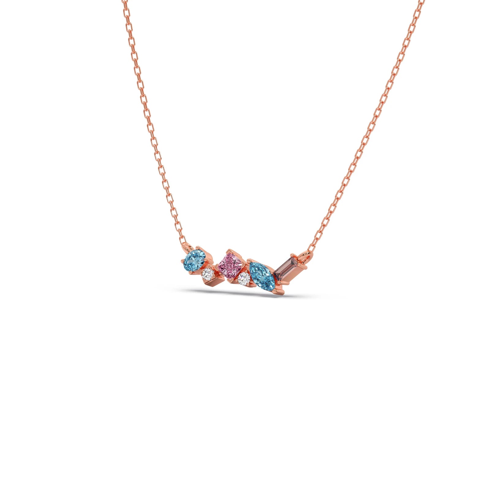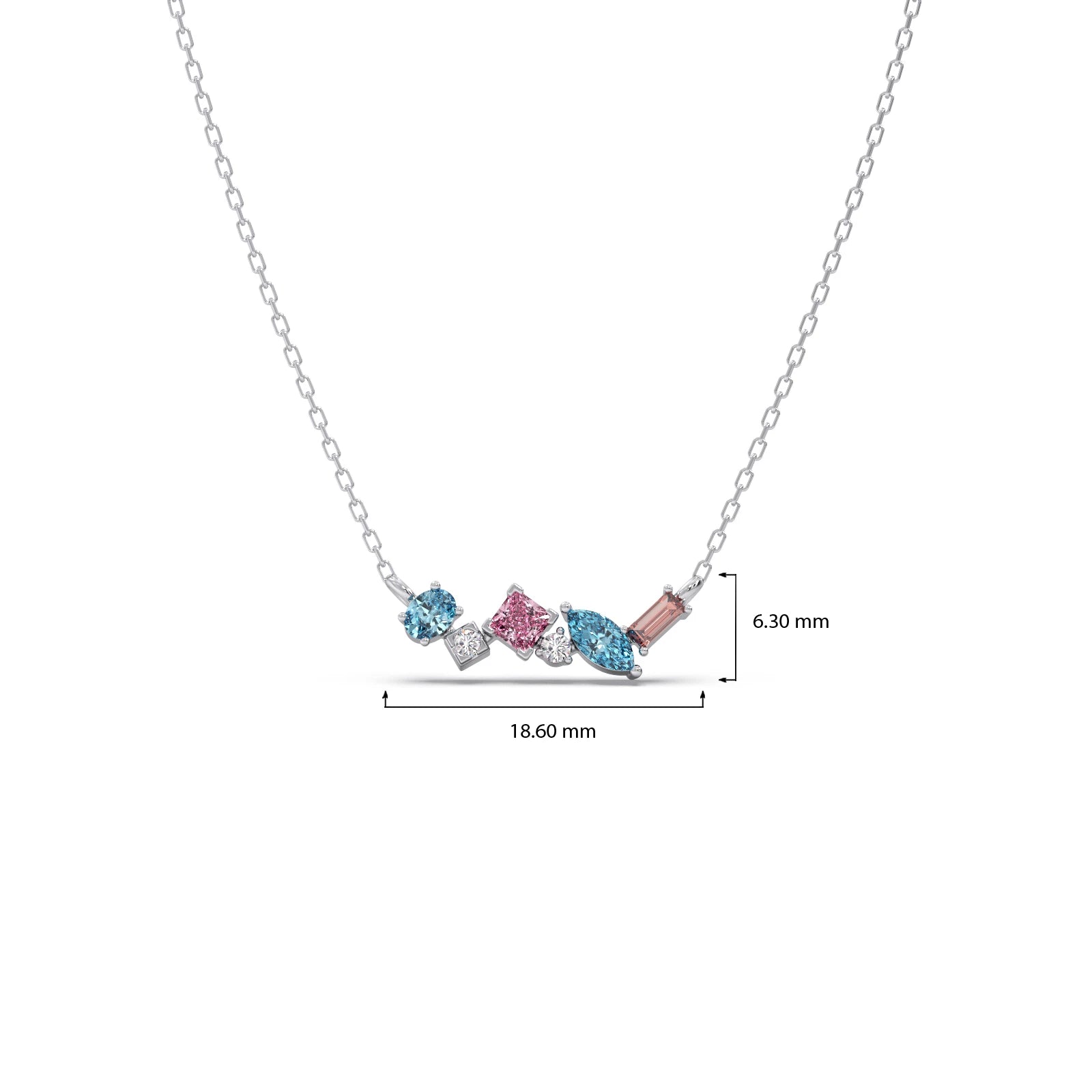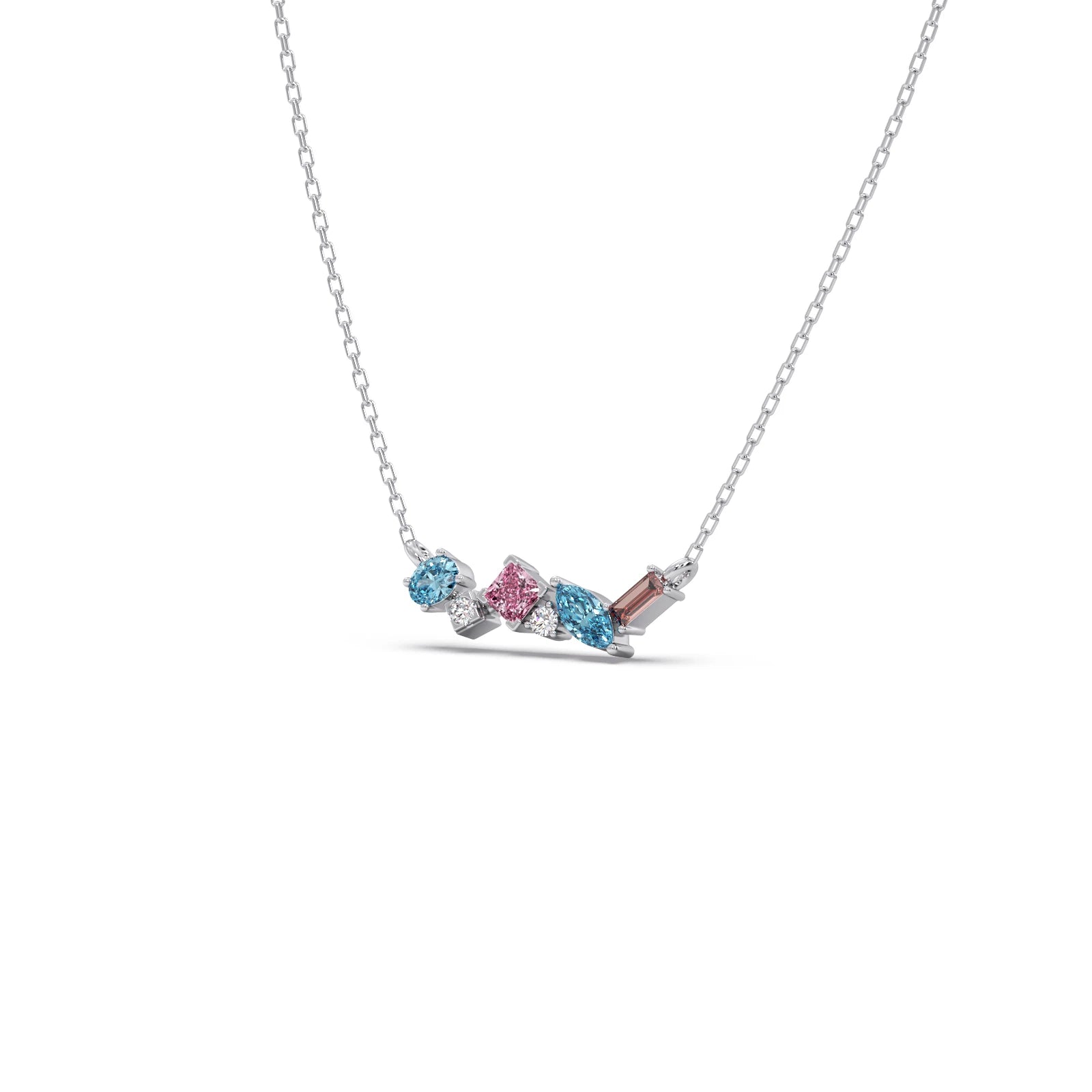 This vibrant pendant features a dazzling bar of assorted gemstones, meticulously set to create a captivating spectrum of colors. Each precious stone is beautifully complemented by sparkling diamond accents, adding brilliant light and elegance. A unique and modern statement piece, perfect for those who cherish expressive, colorful luxury.