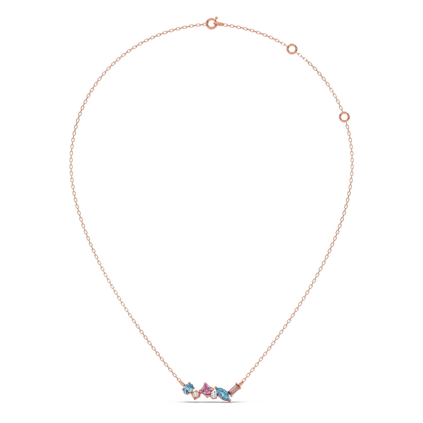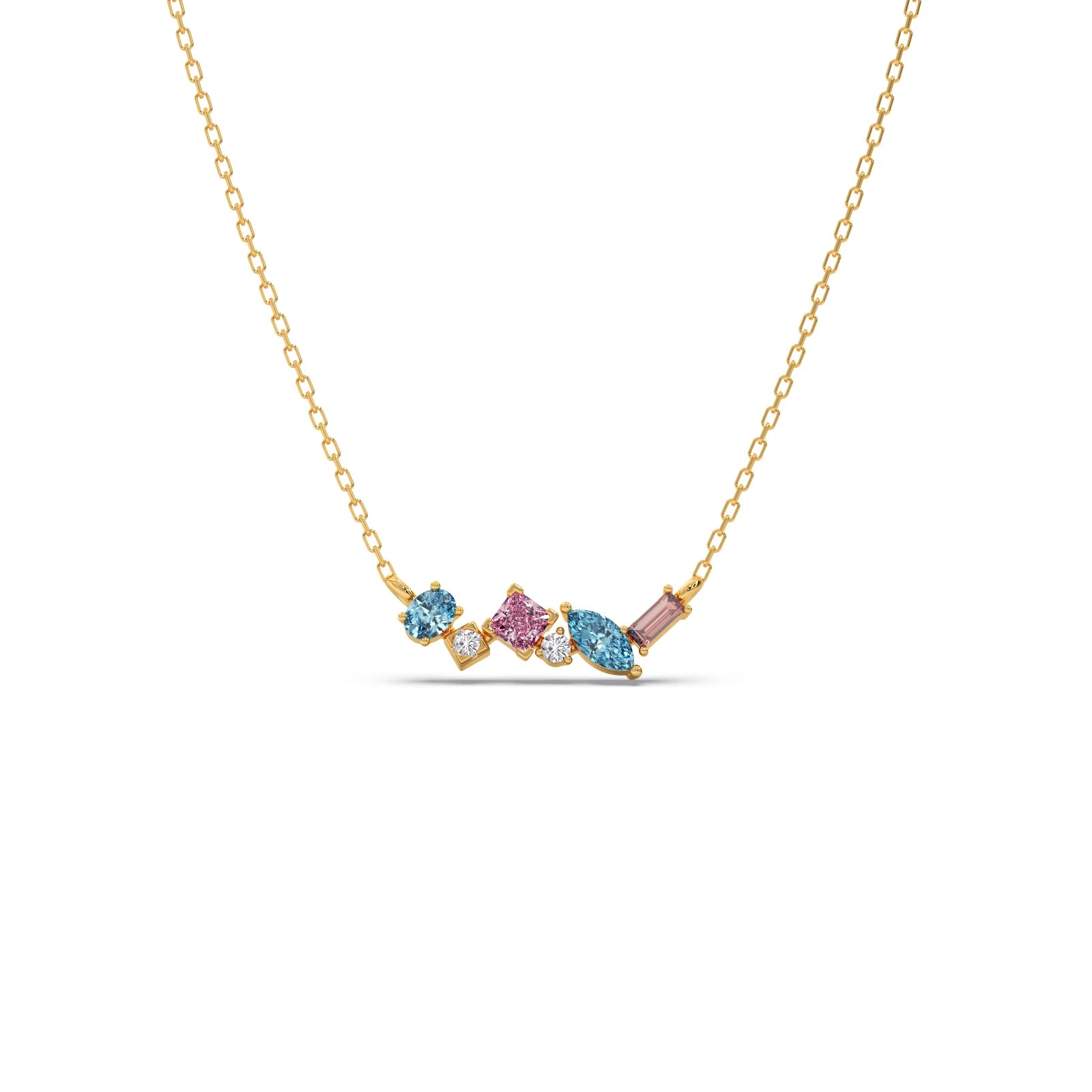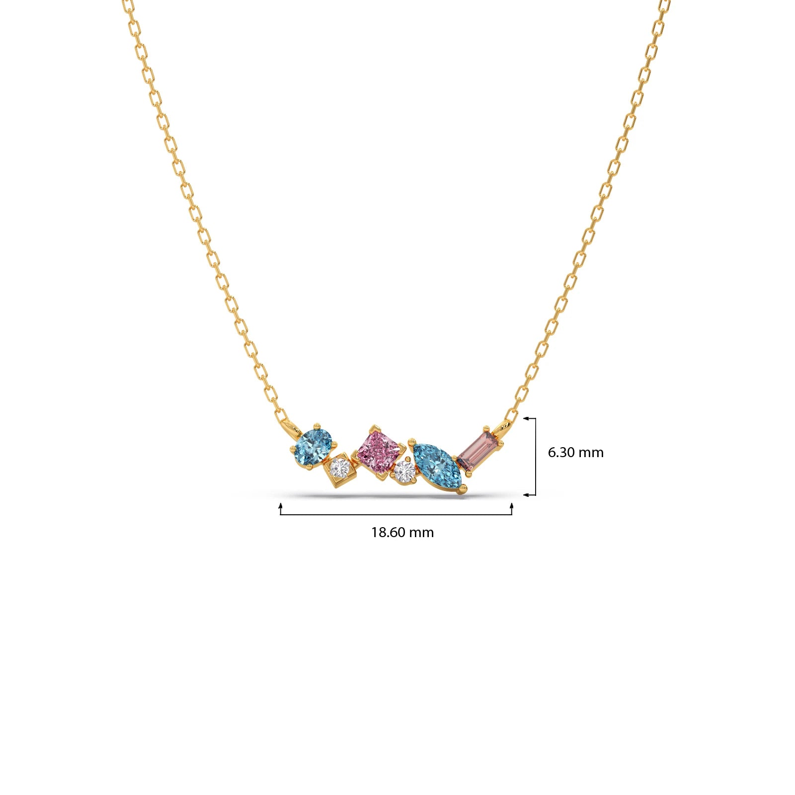This vibrant pendant features a dazzling bar of assorted gemstones, meticulously set to create a captivating spectrum of colors. Each precious stone is beautifully complemented by sparkling diamond accents, adding brilliant light and elegance. A unique and modern statement piece, perfect for those who cherish expressive, colorful luxury.