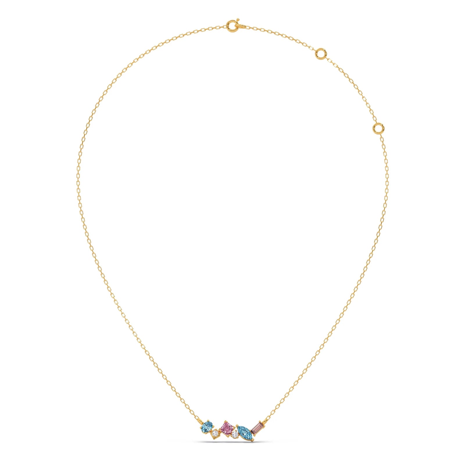 Multicolor Gemstone Bar With Diamond Pendant