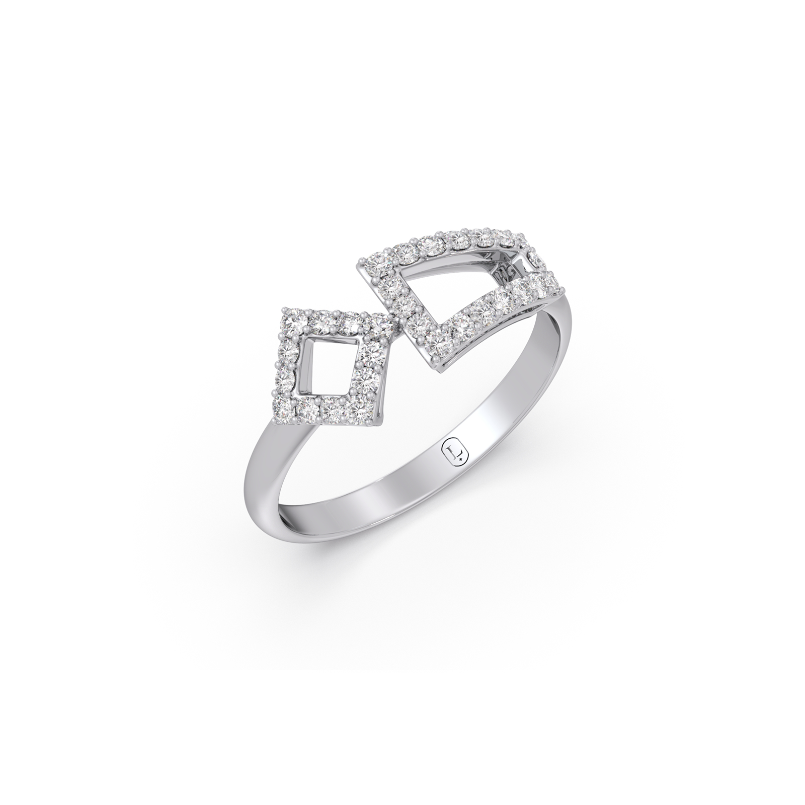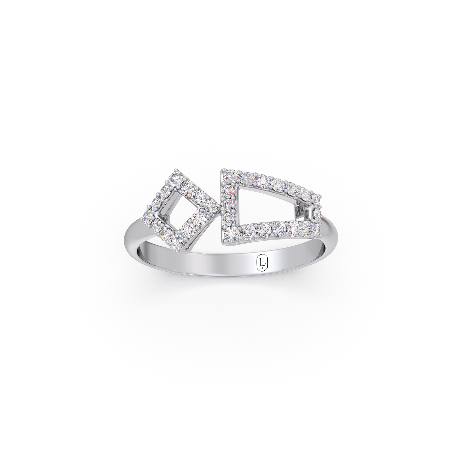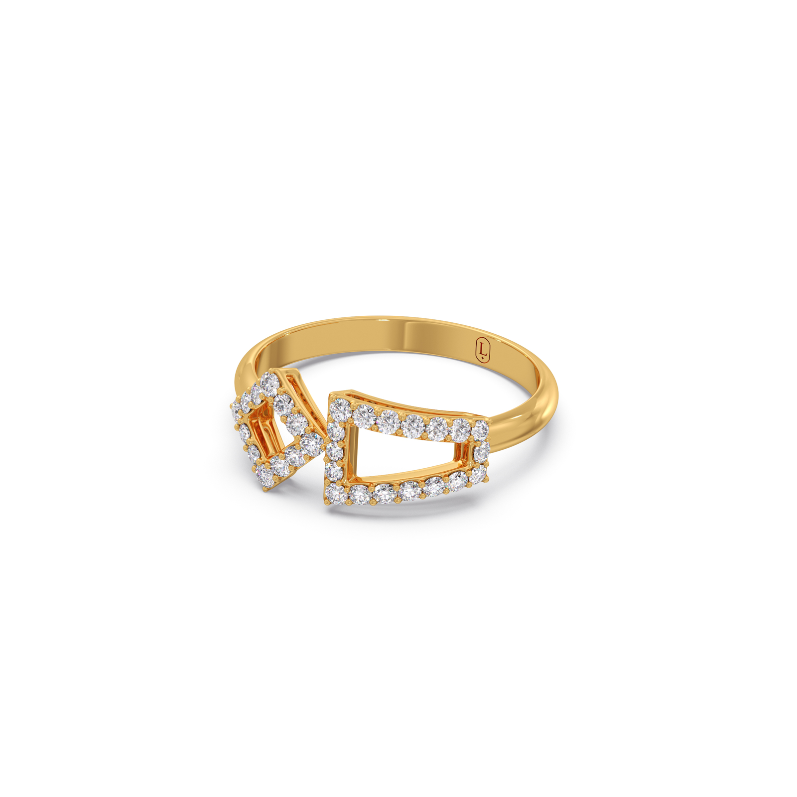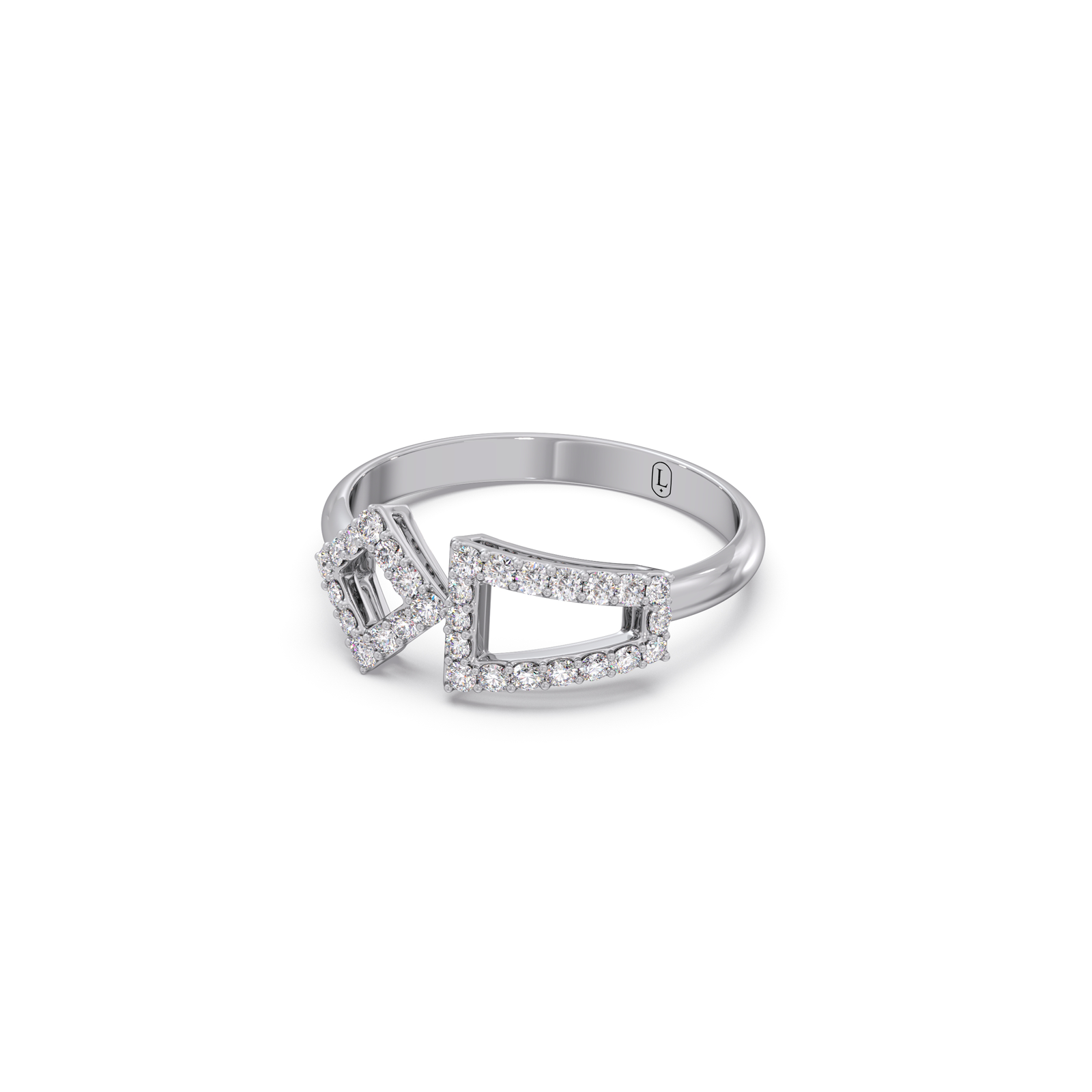 Shift your style perspective with this striking ring. Its unusual geometric shape and offset diamond placement create a captivating, modern look. A uniquely designed piece that promises non-traditional brilliance and timeless appeal.
