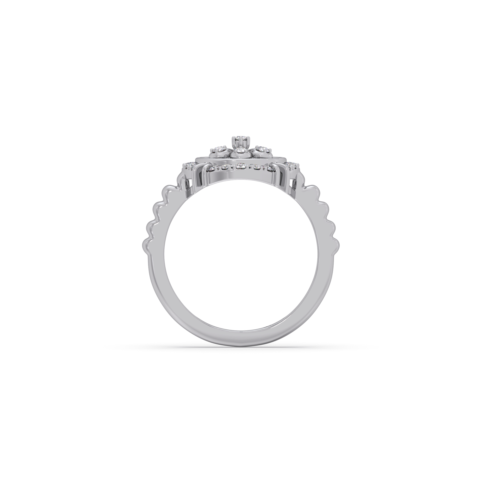 A delicate fusion of nature and craftsmanship, this ring features blooming diamond artistry that captures timeless elegance. Its intricate floral detailing and radiant sparkle create a graceful statement, perfect for celebrating beauty, love, and refined sophistication.