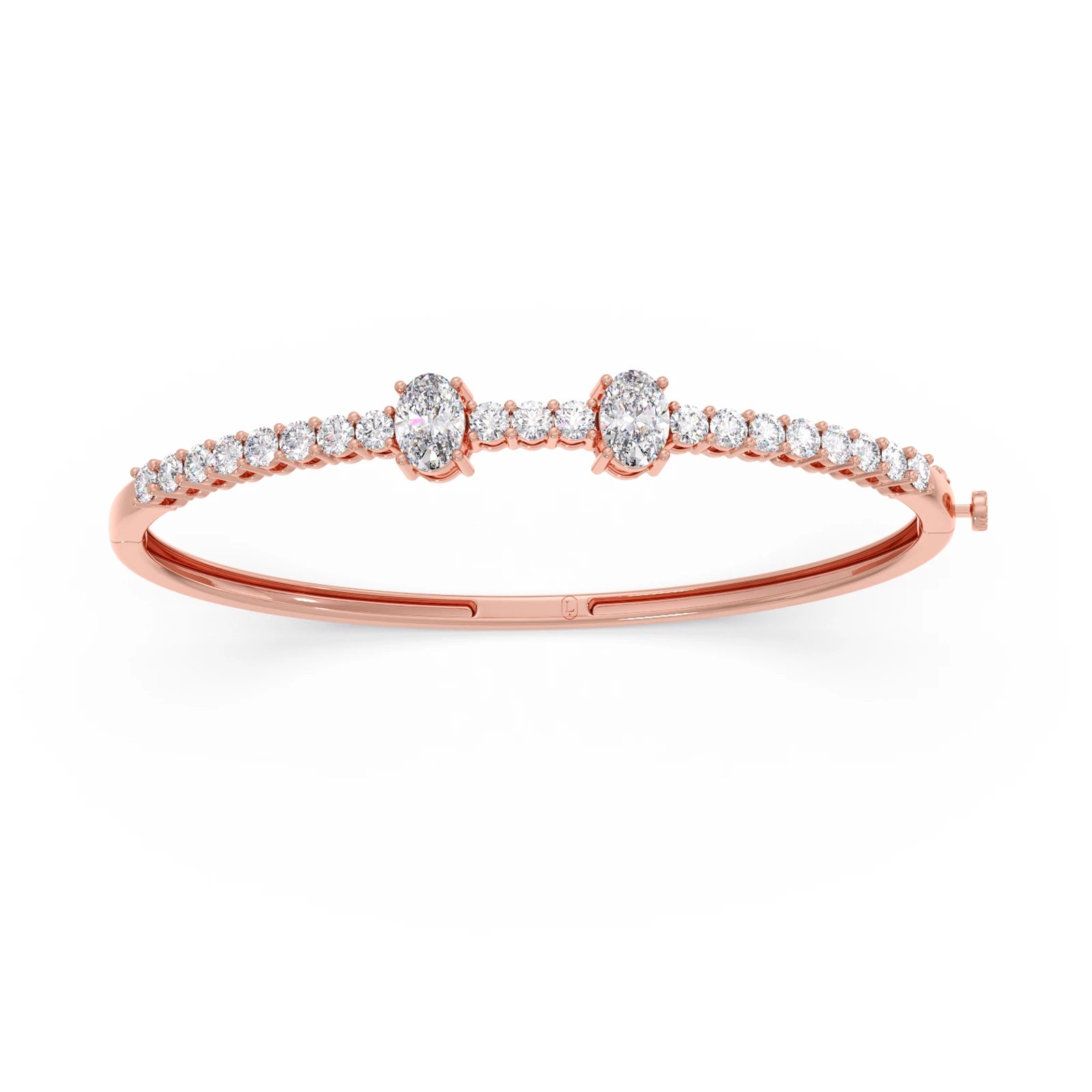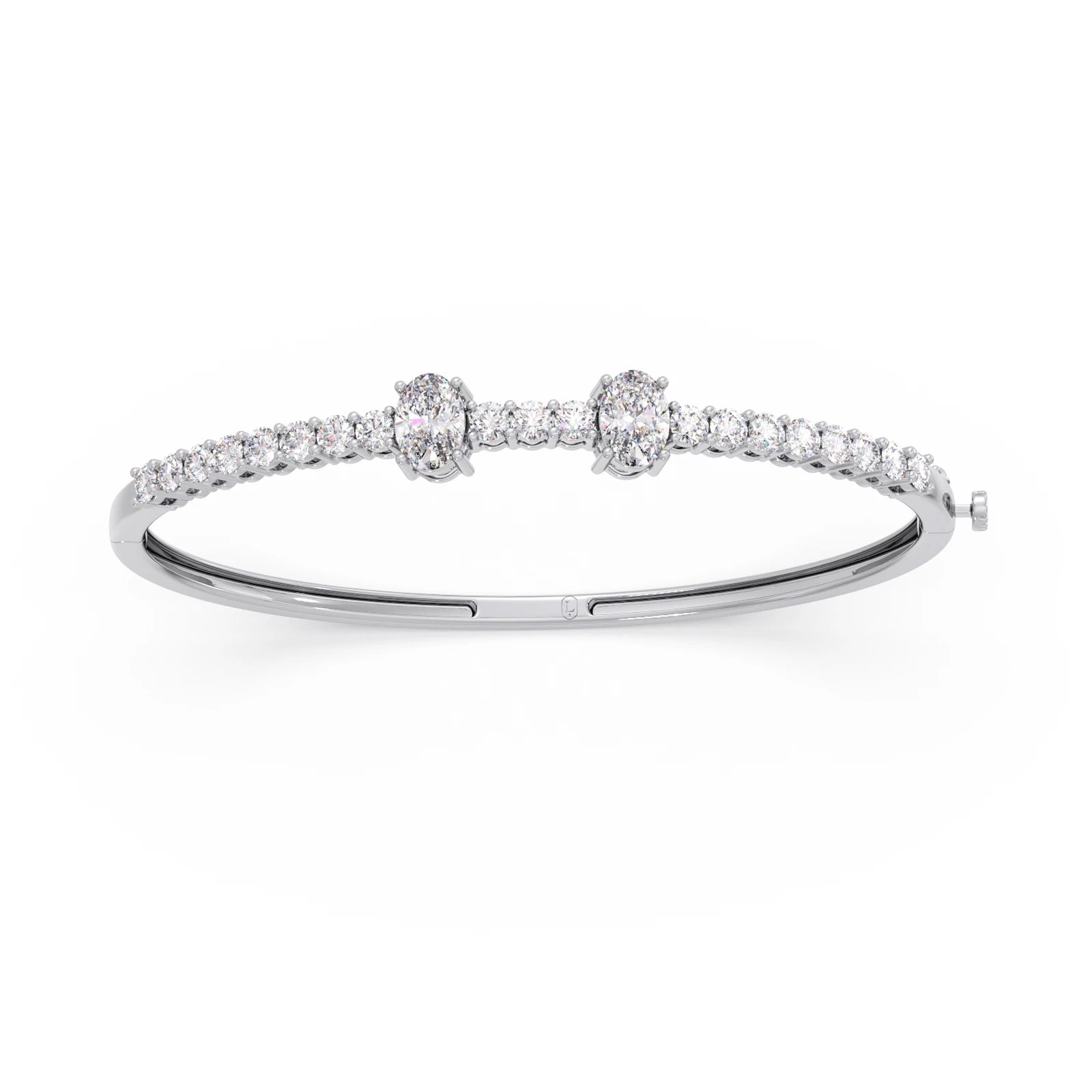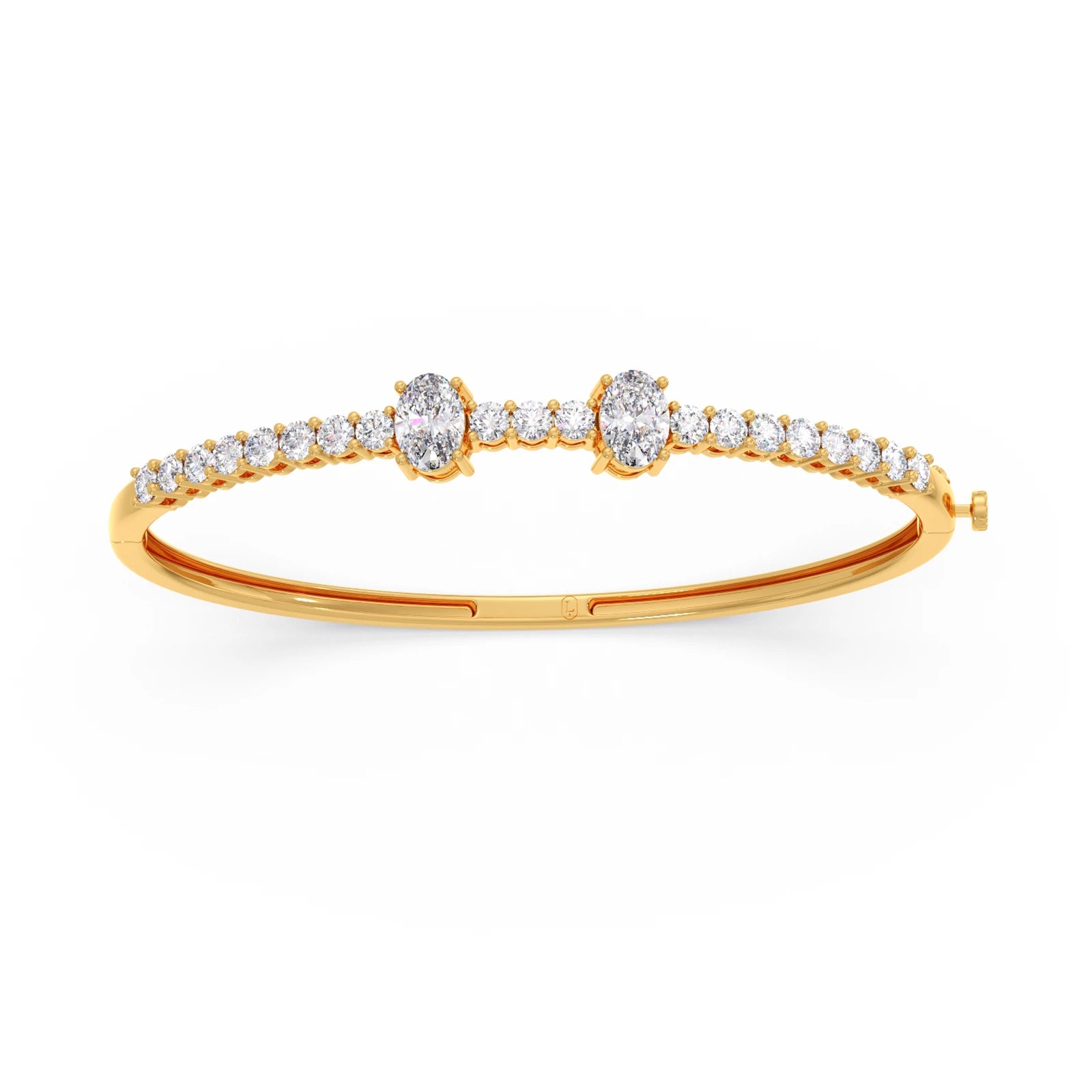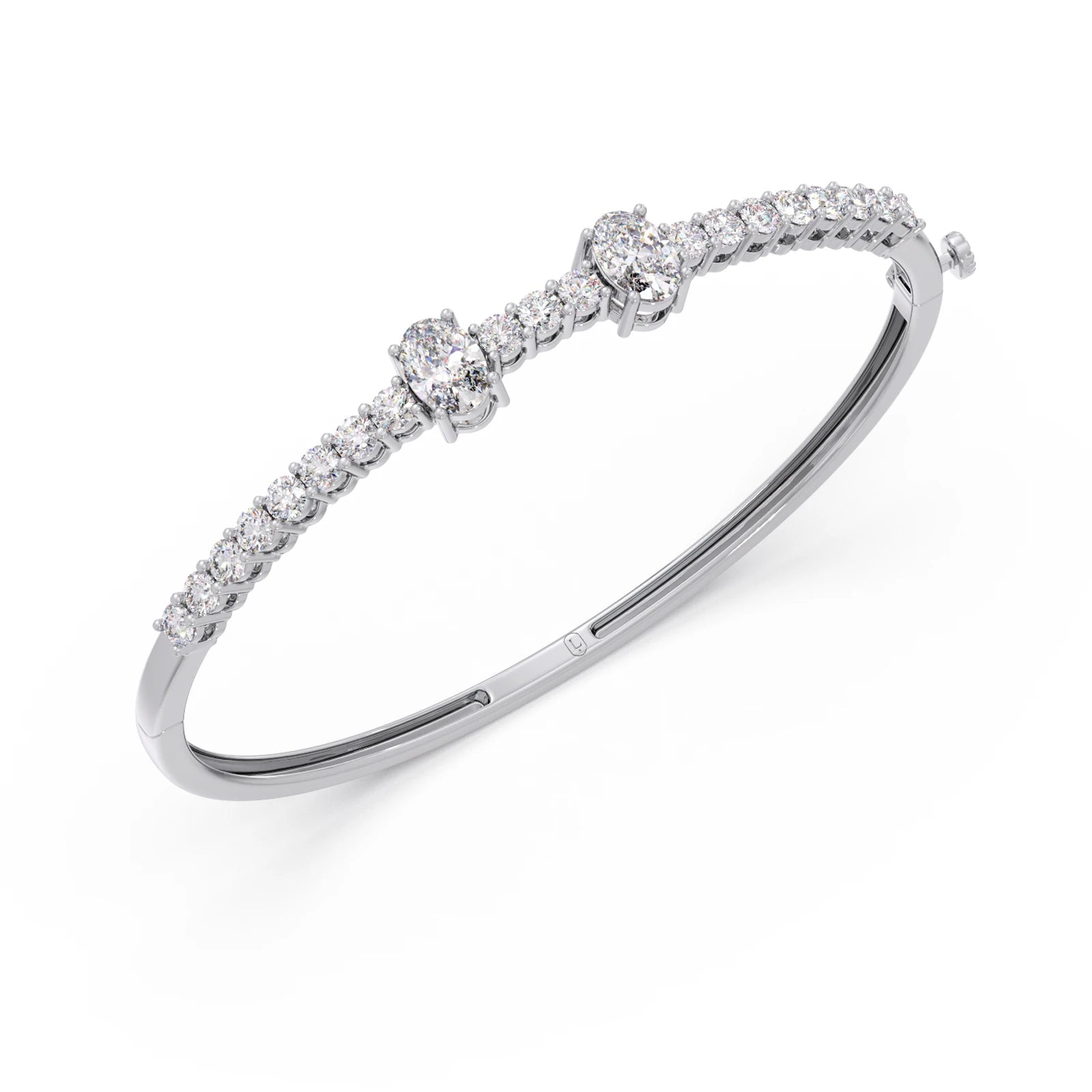 This elegant bracelet showcases a captivating oval-cut diamond as its radiant centerpiece. Delicate round-cut diamonds are meticulously set as accents, enhancing the brilliance and sophisticated allure of the central stone. Crafted with exquisite detail, this piece adds a touch of timeless sparkle to any occasion. A perfect blend of classic design and dazzling beauty.