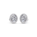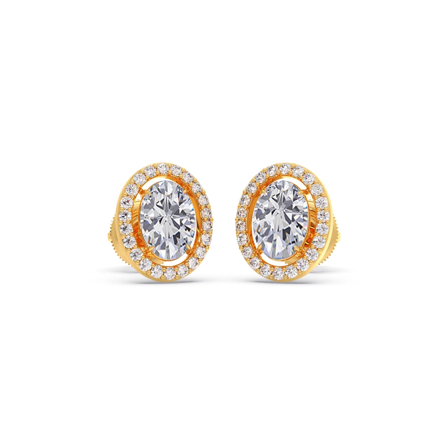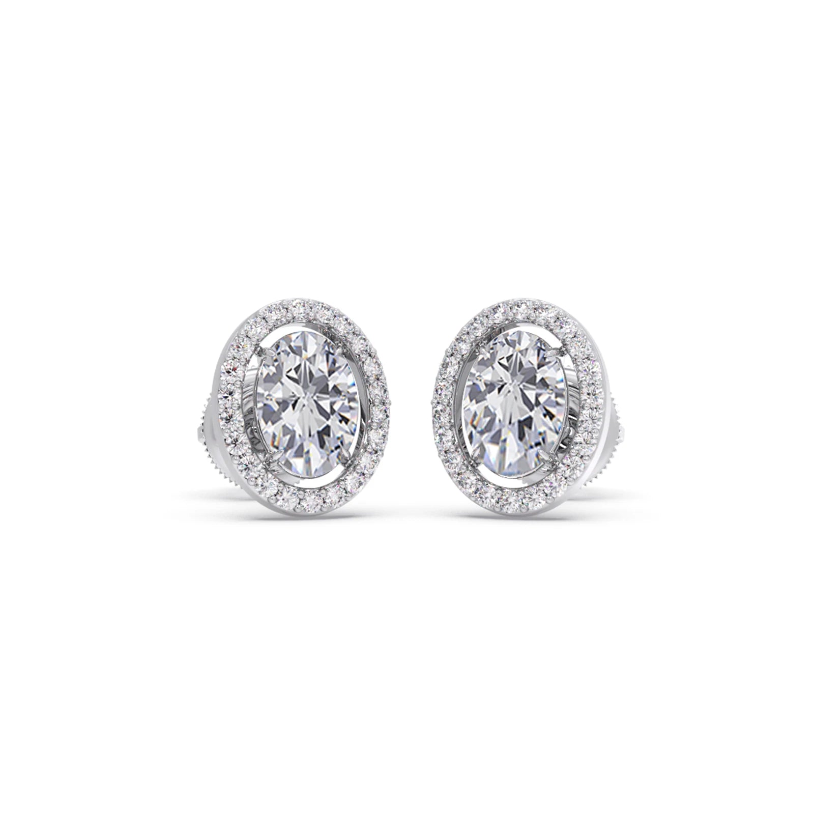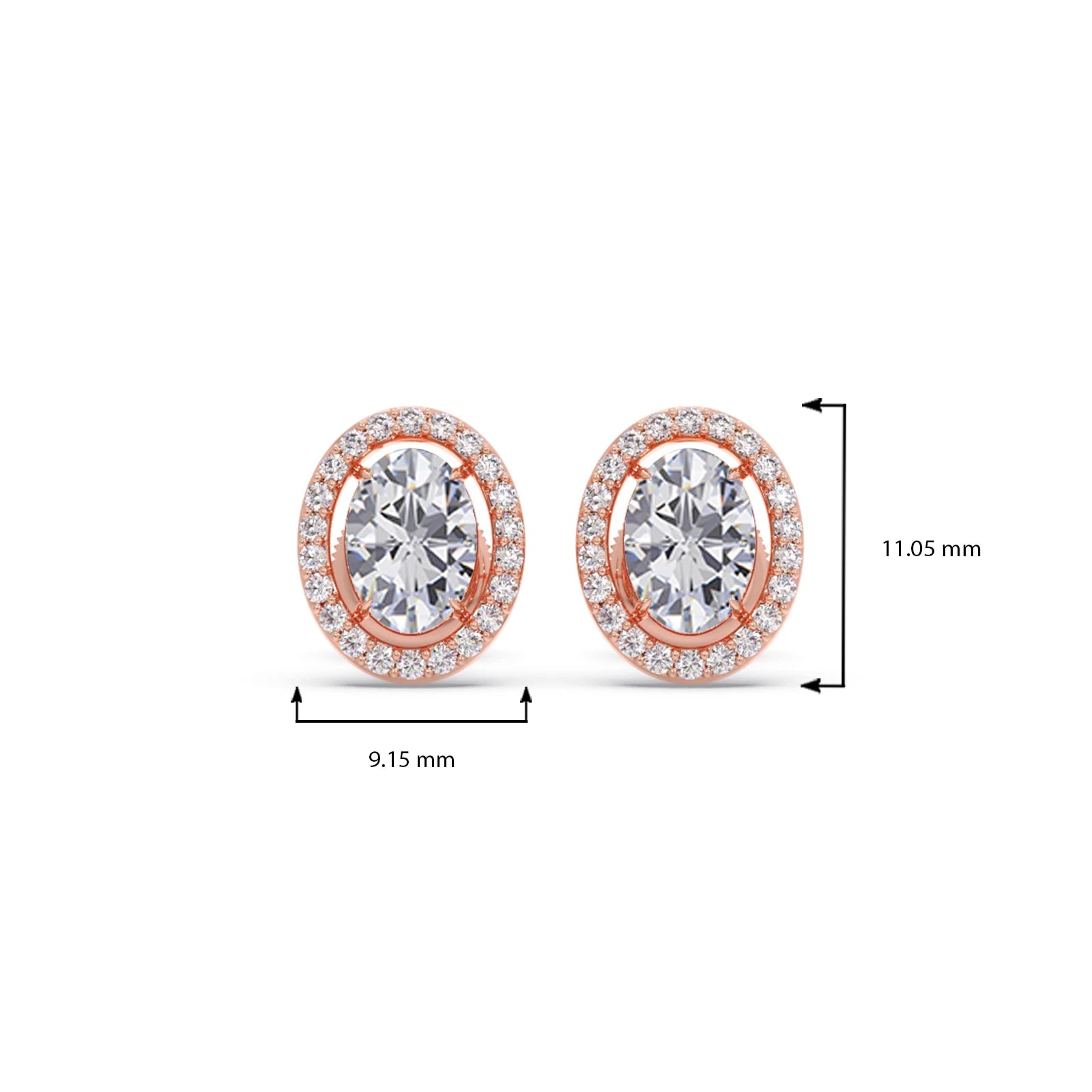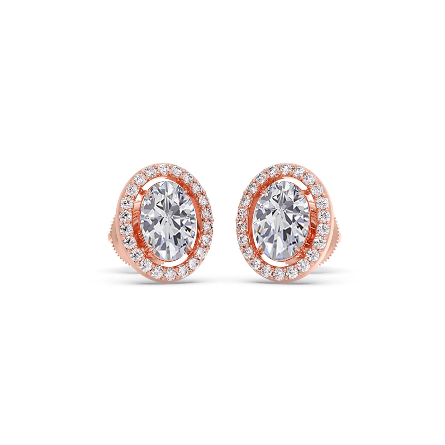 These elegant stud earrings feature a sparkling oval-cut diamond encircled by a halo of smaller diamonds. The rose gold setting adds a touch of warmth and complements the brilliance of the diamonds.