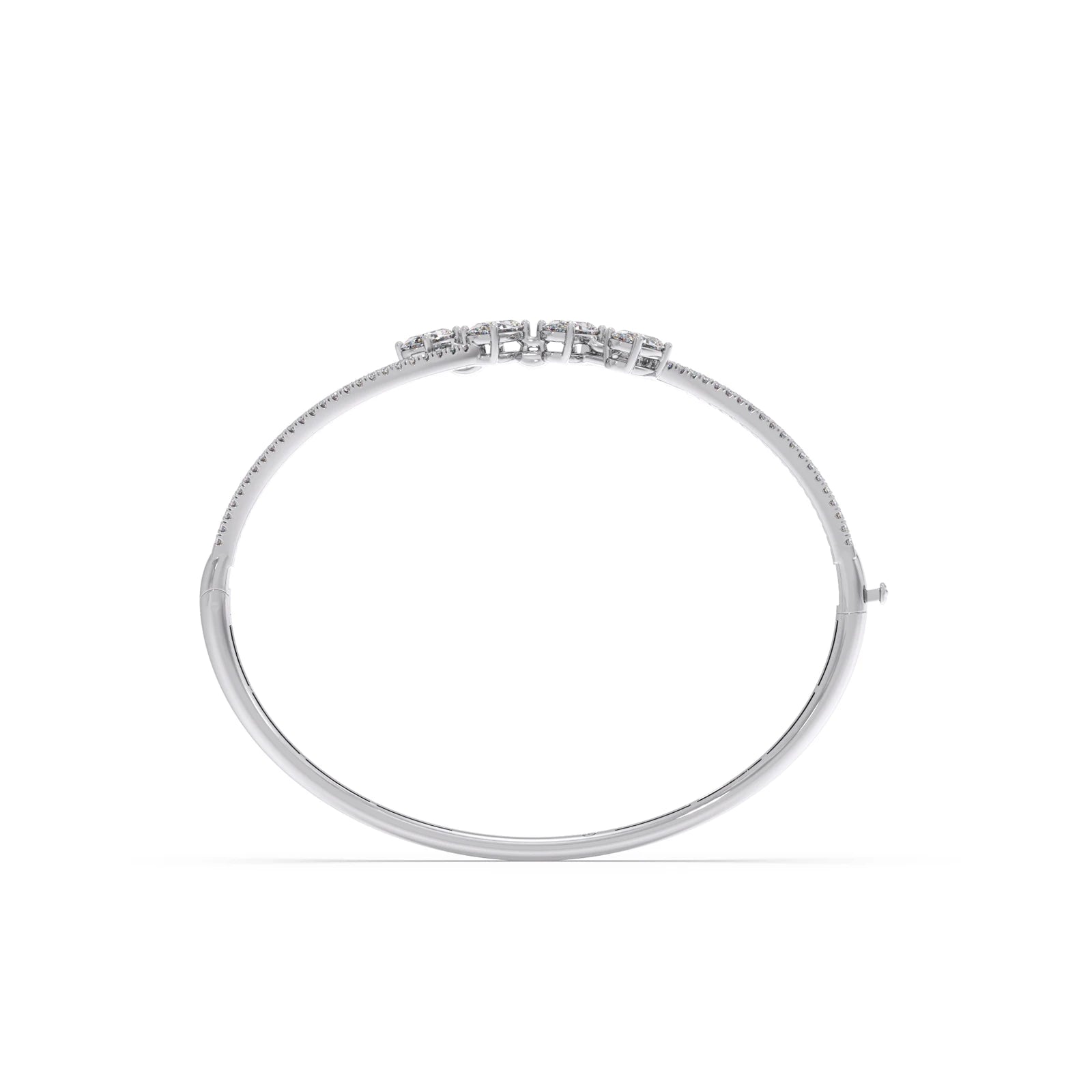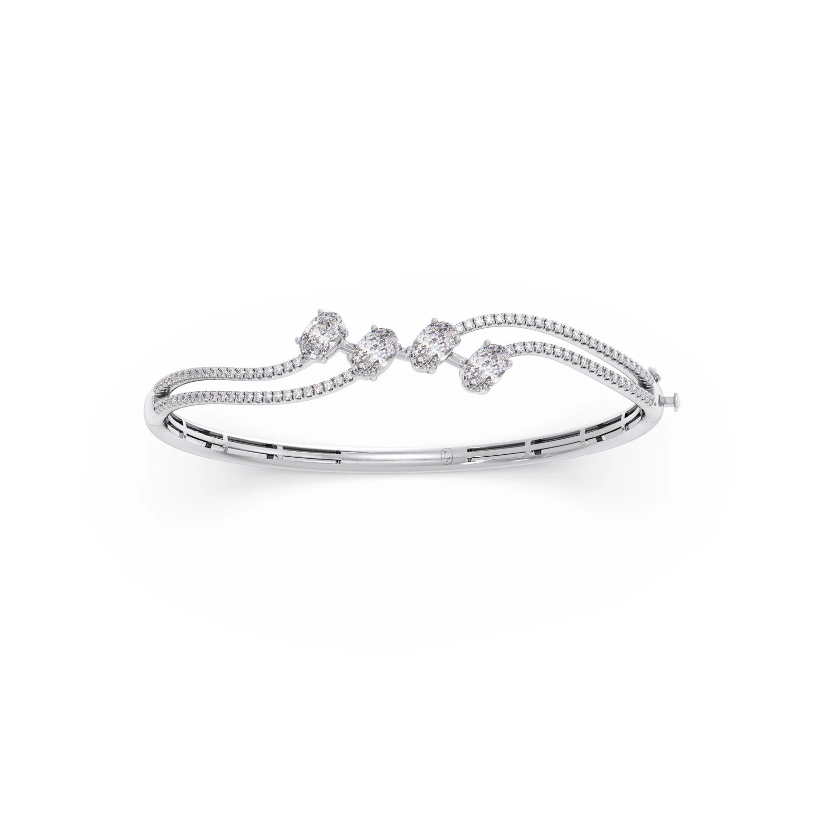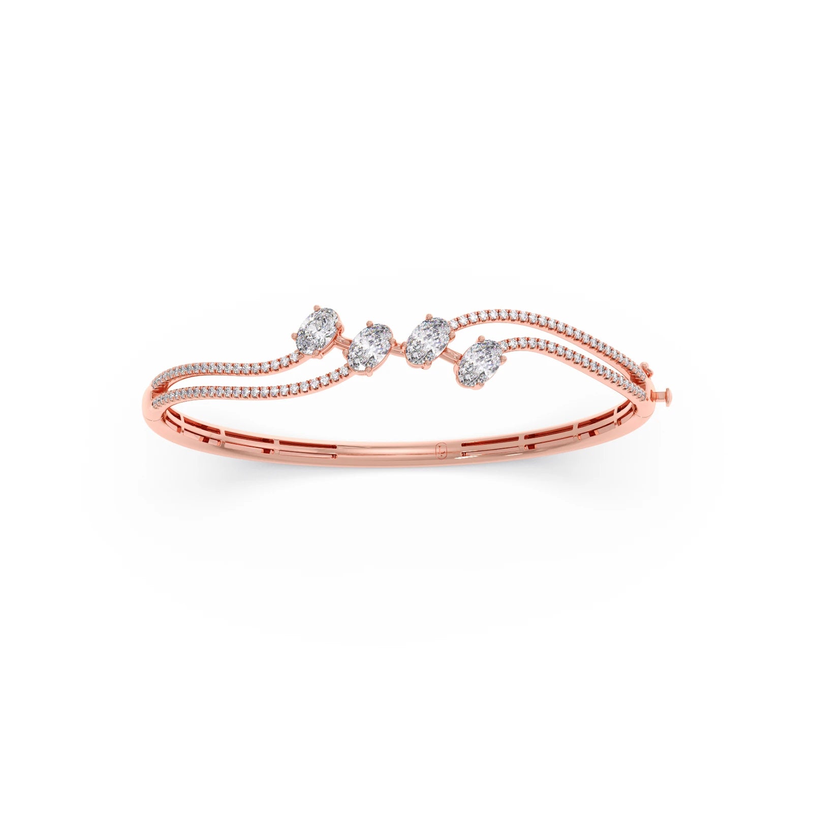This elegant bangle features a graceful wave design, adorned with sparkling oval-cut diamonds. The fluid lines and brilliant stones create a sophisticated and eye-catching bracelet, perfect for adding a touch of modern luxury to any occasion.