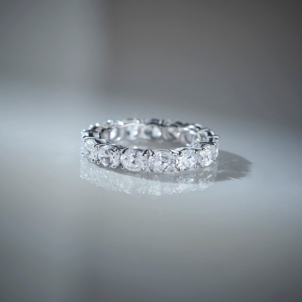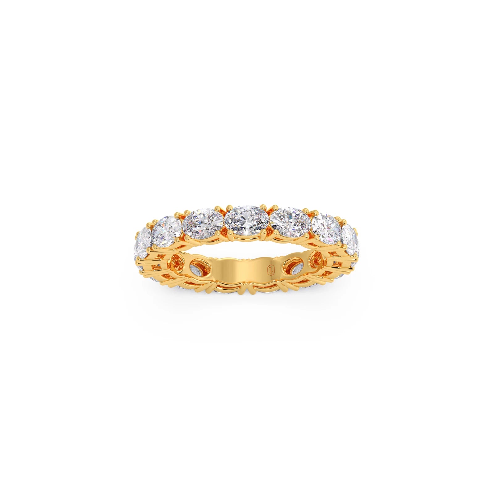 The Oval Cut Eternity Band showcases a continuous loop of exquisite oval-cut diamonds, symbolizing everlasting love and commitment. With its sleek and elegant design, this timeless piece offers exceptional brilliance and sophistication, making it the perfect statement of romance and refinement.