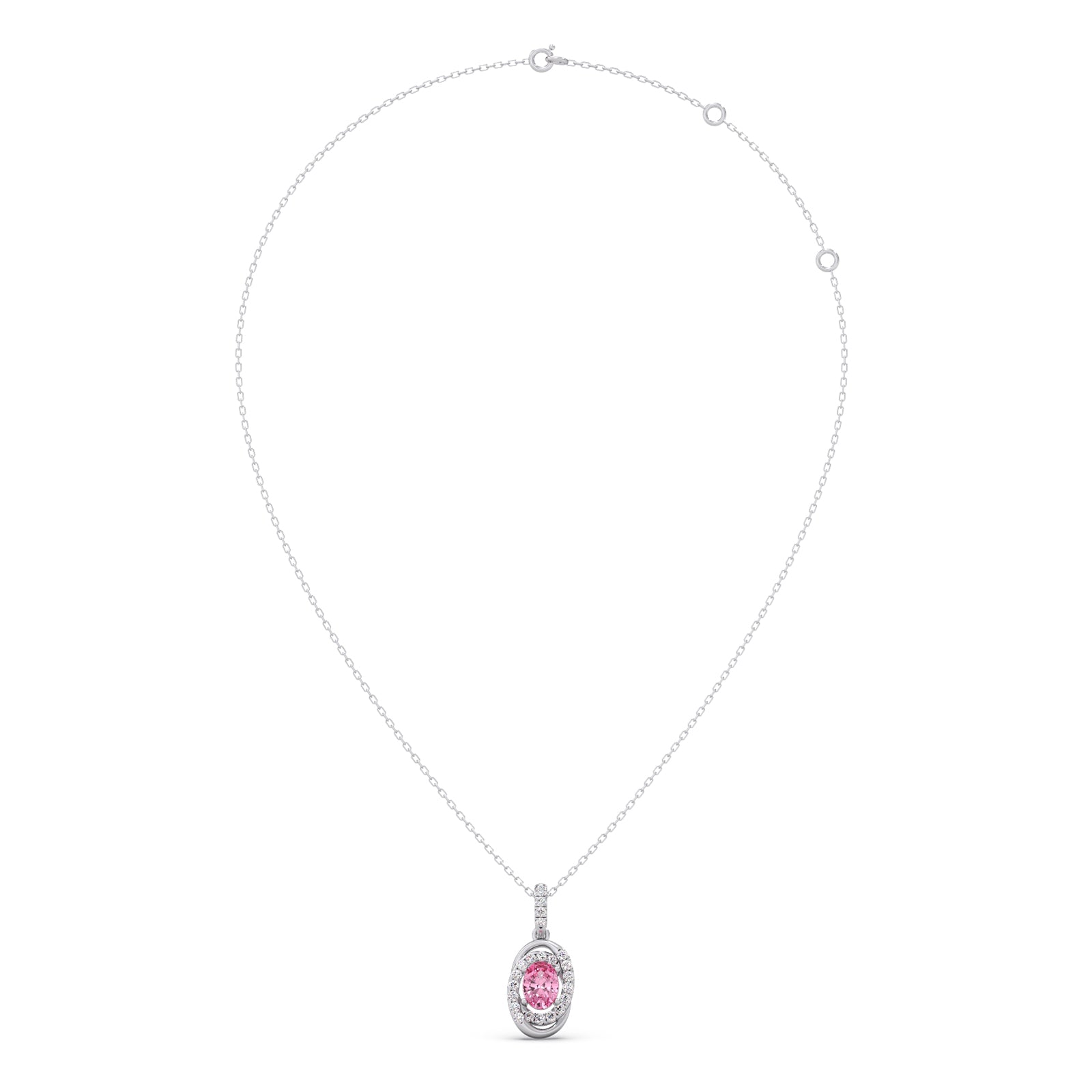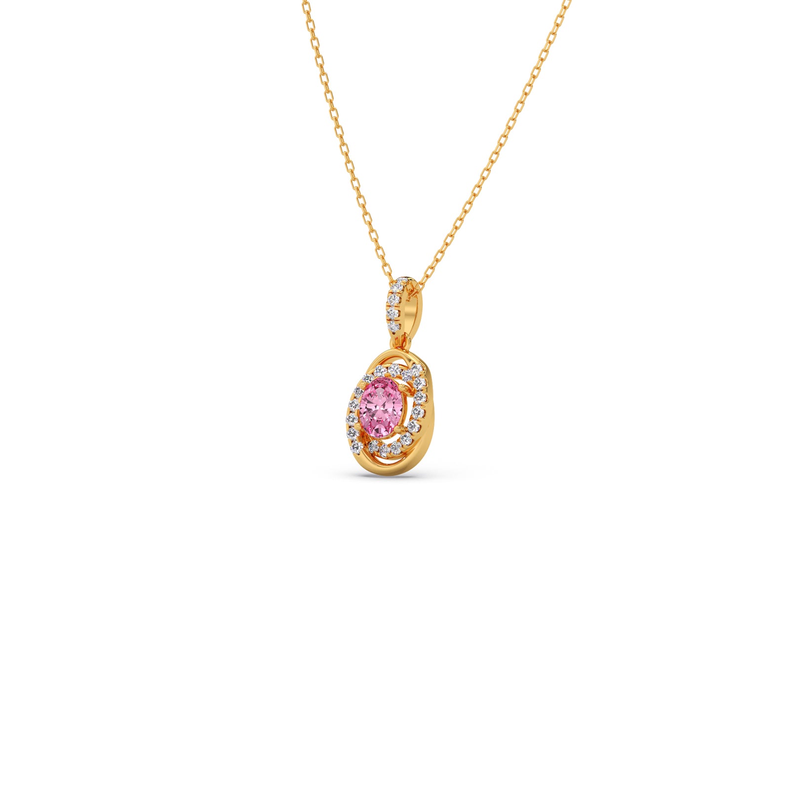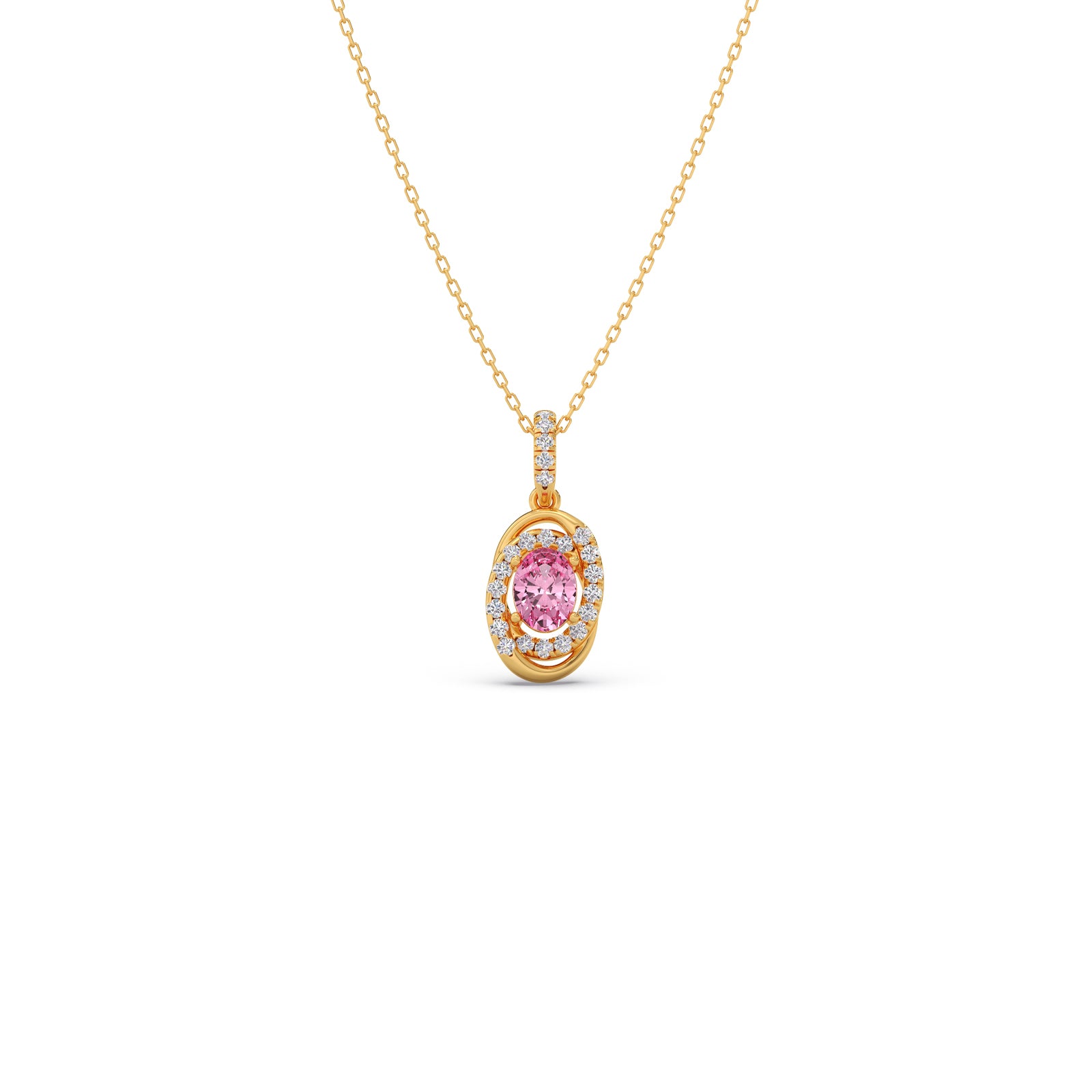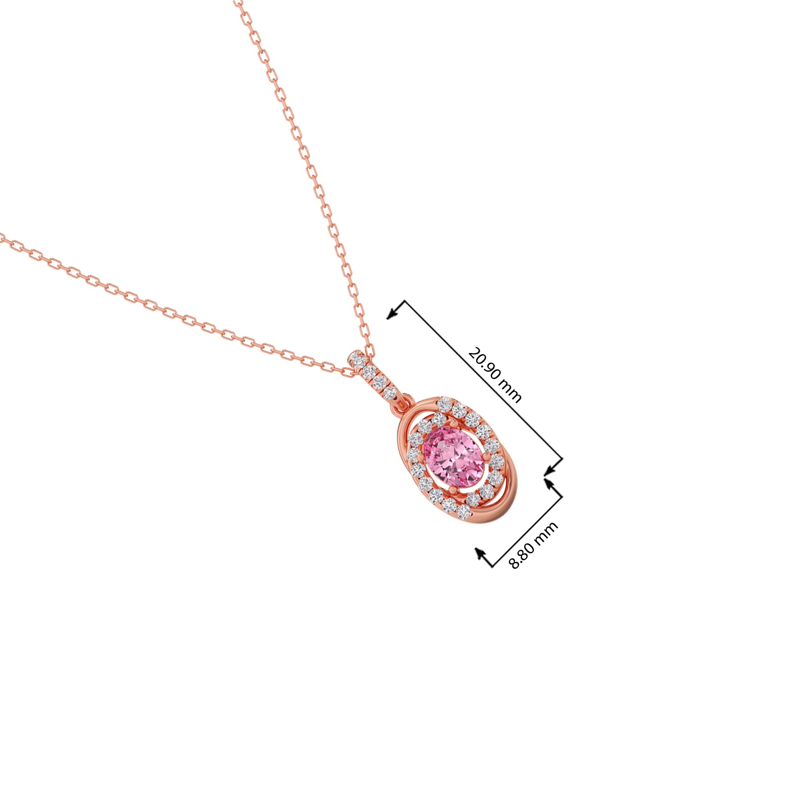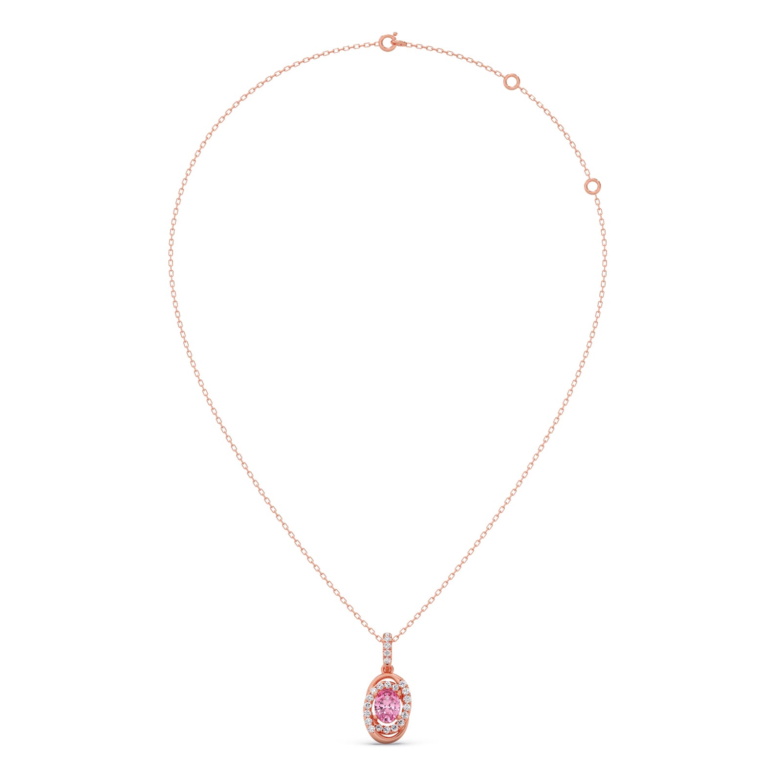 Oval-Cut Pink Gemstone with Round Diamond Halo Pendant
