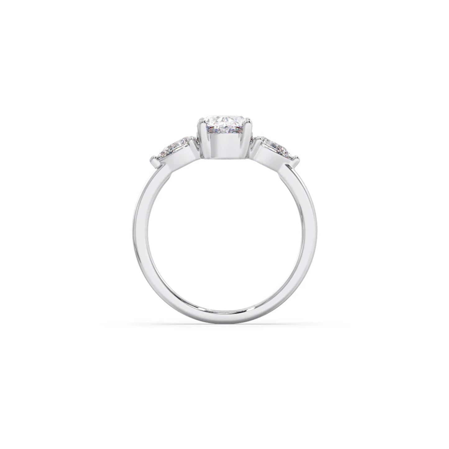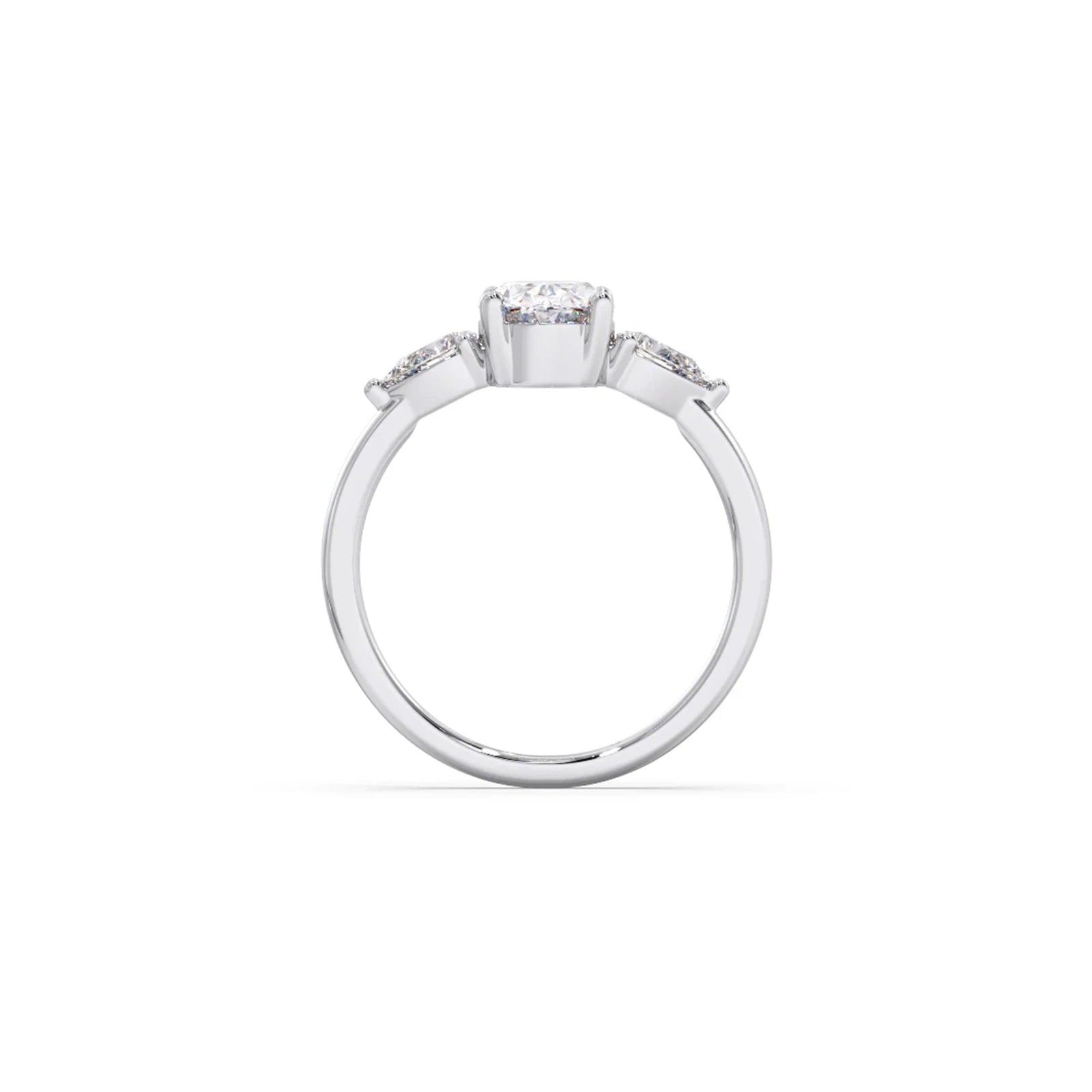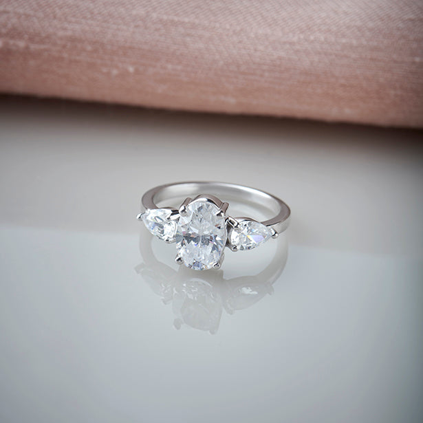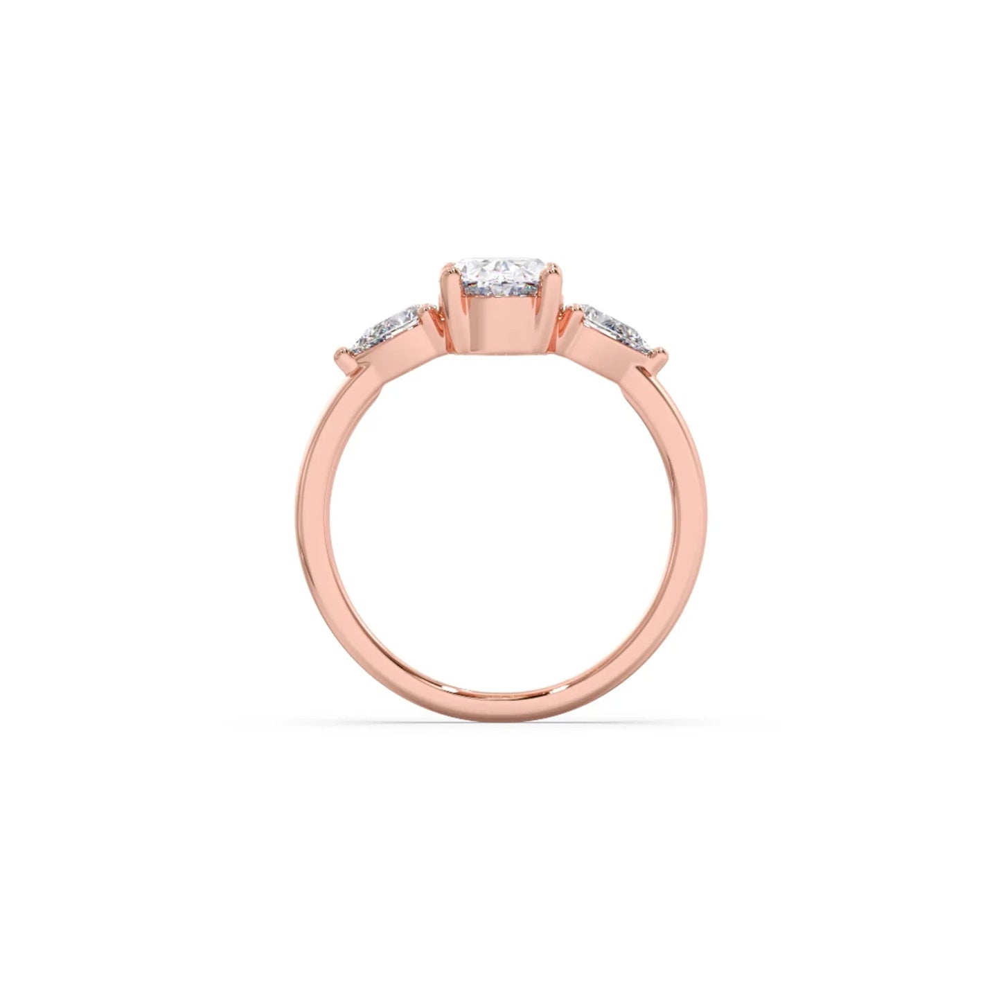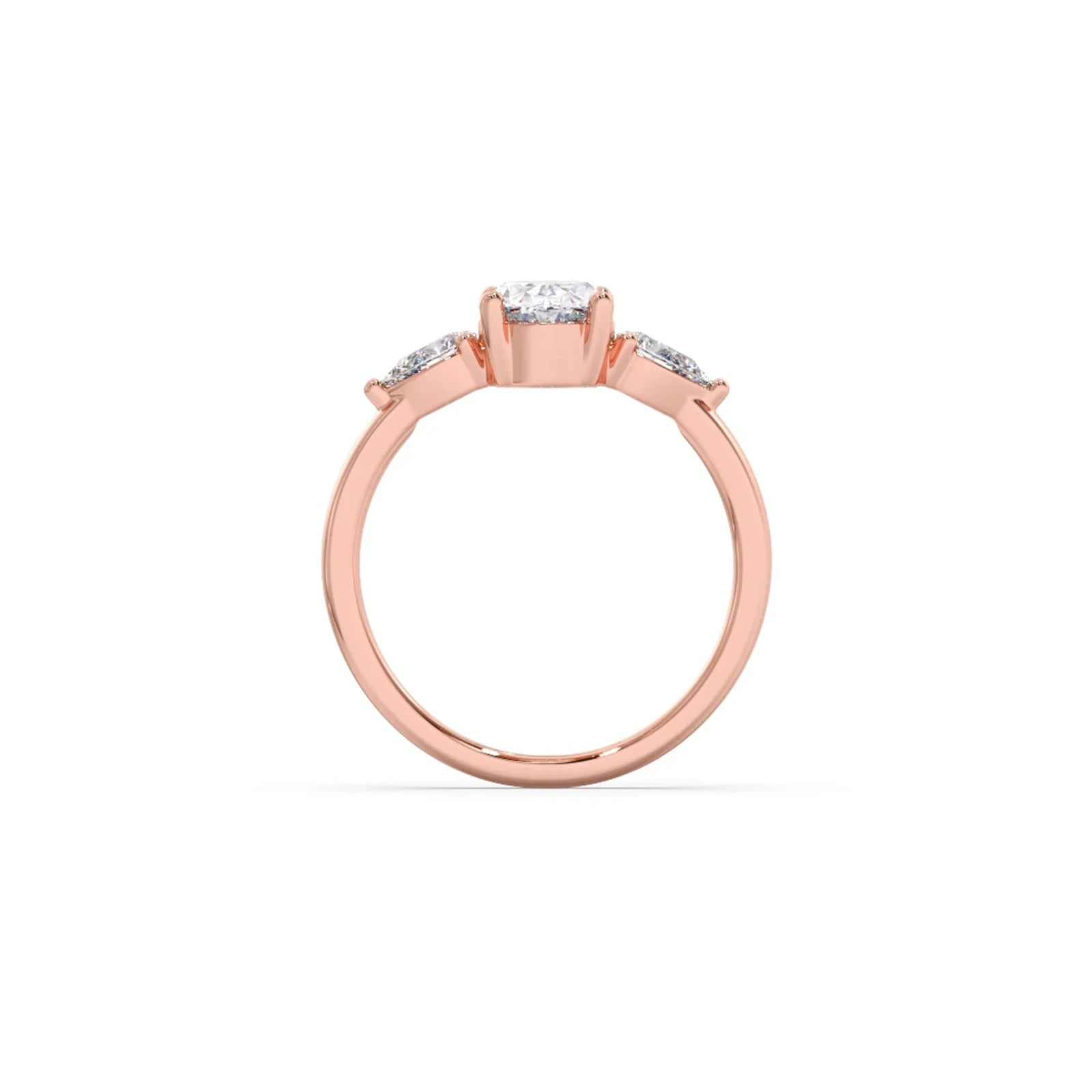 Timeless and romantic, our Oval Cut Three Stone Engagement Ring features a captivating Oval-cut center diamond, flanked by Two Sparkling Pear-shaped side stones—symbolizing the past, present, and future✨