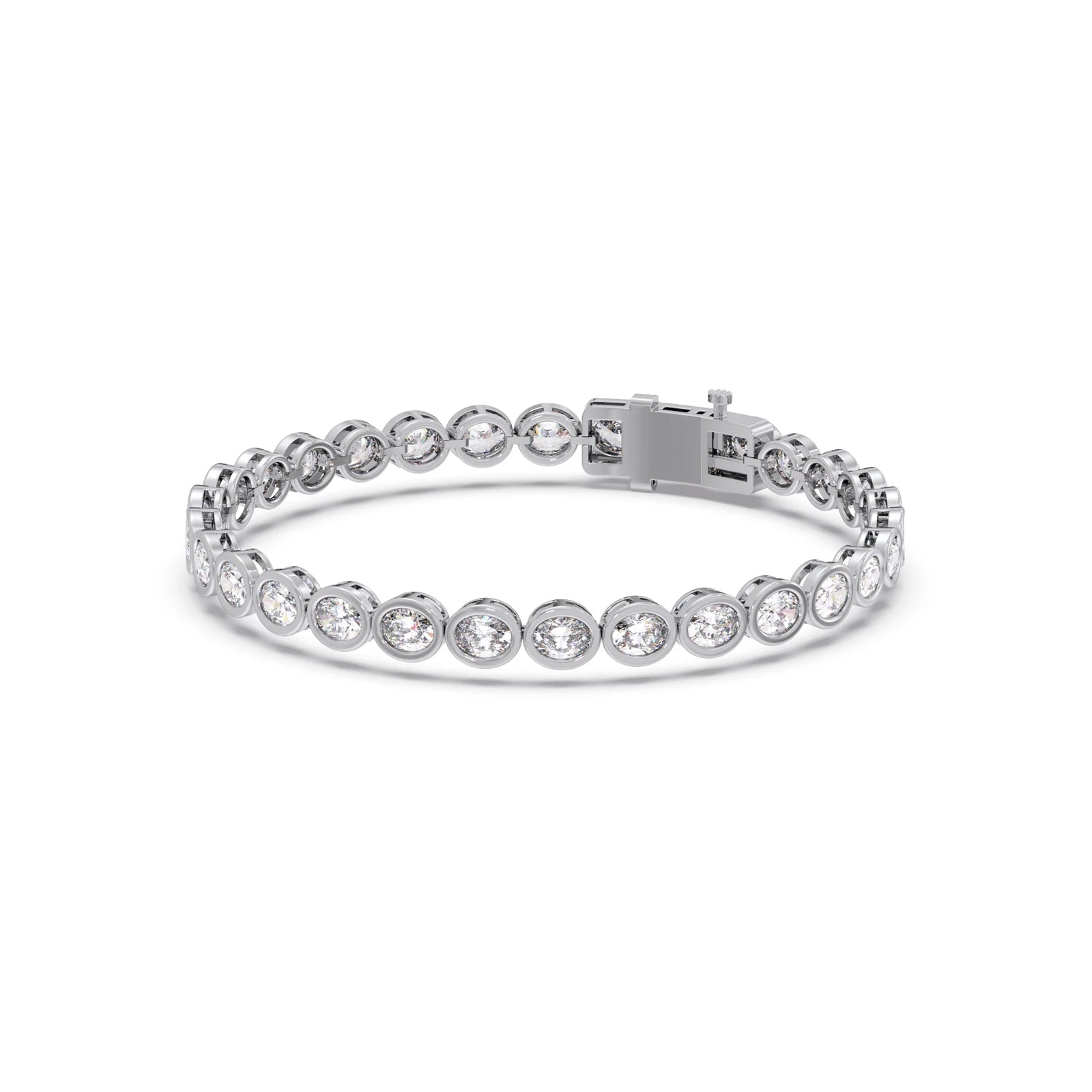 This bracelet is where timeless design meets modern strength. With 6.25 ct. of bezel-set brilliance, each of the 30 Oval Lucira Grown Diamonds is framed in a circle of gold - a symbol of continuity, resilience, and quiet power. Sleek, secure, and radiant from every angle, it reflects a life led with purpose and presence. For the woman who doesn’t just move through the world - she shapes it.
