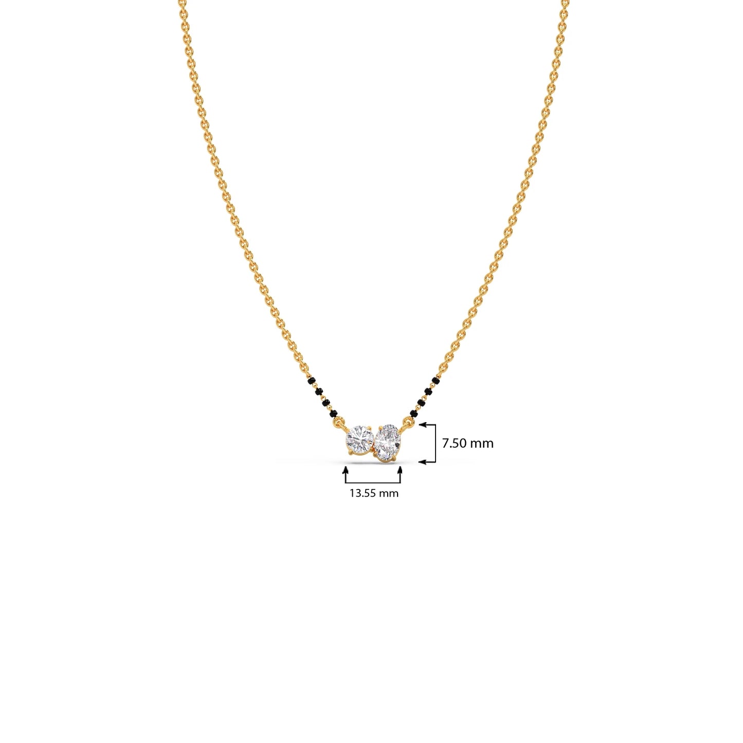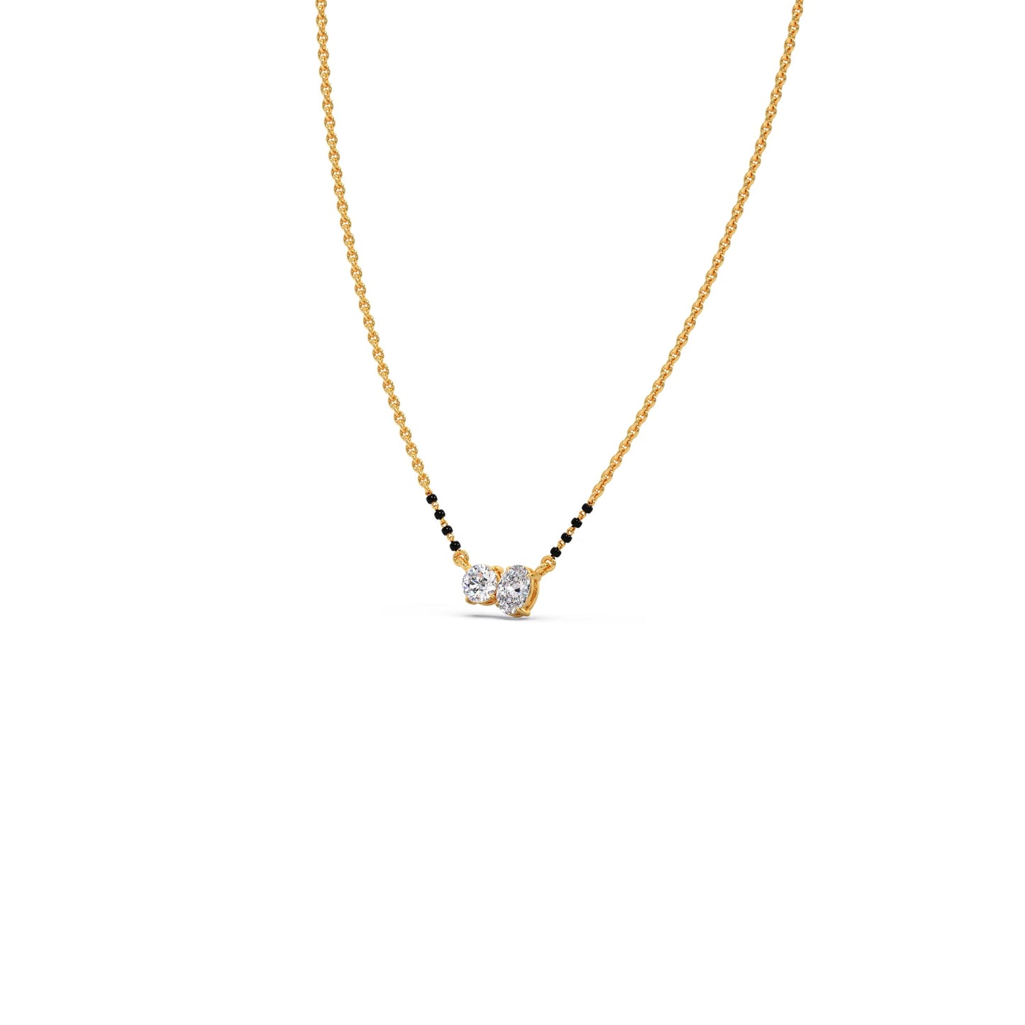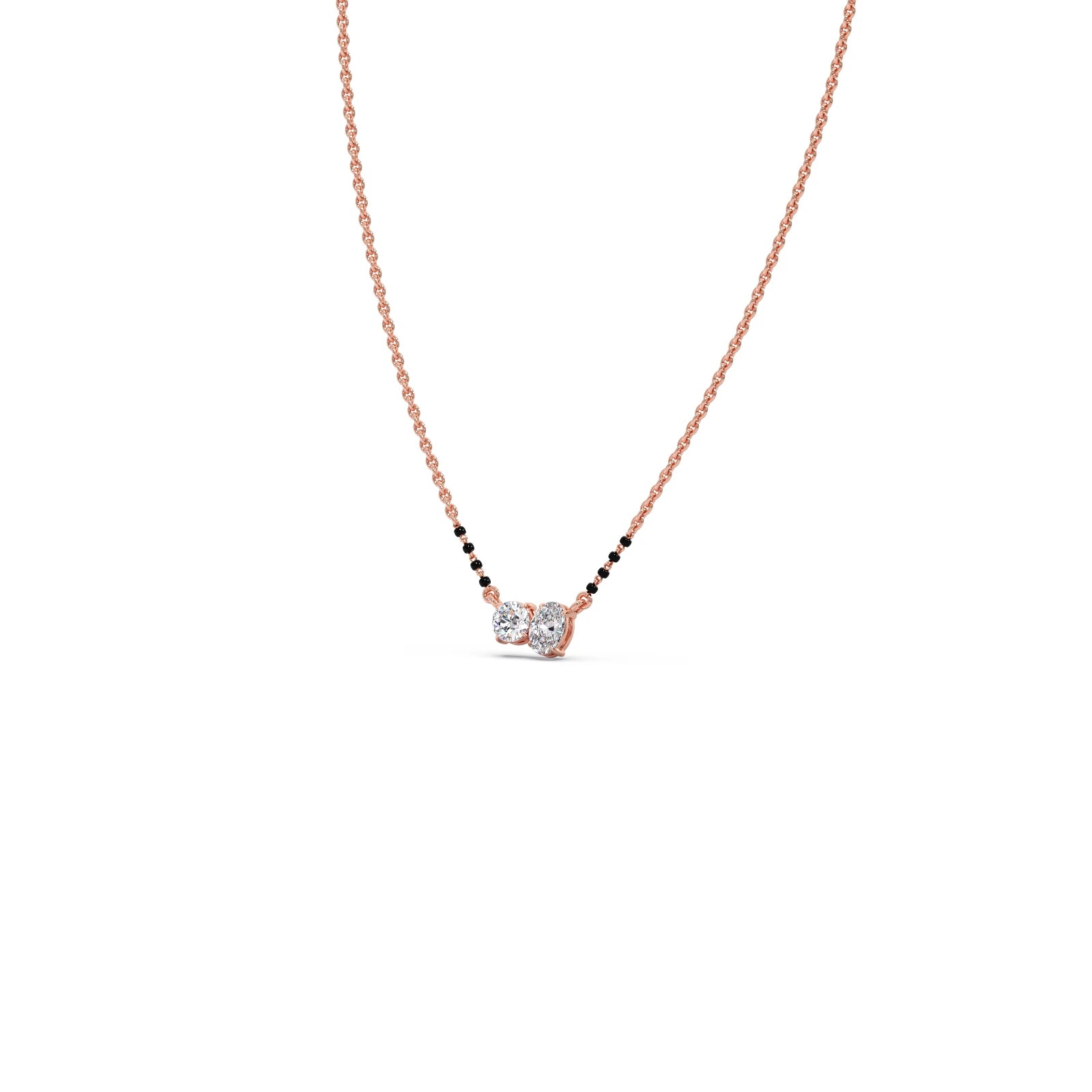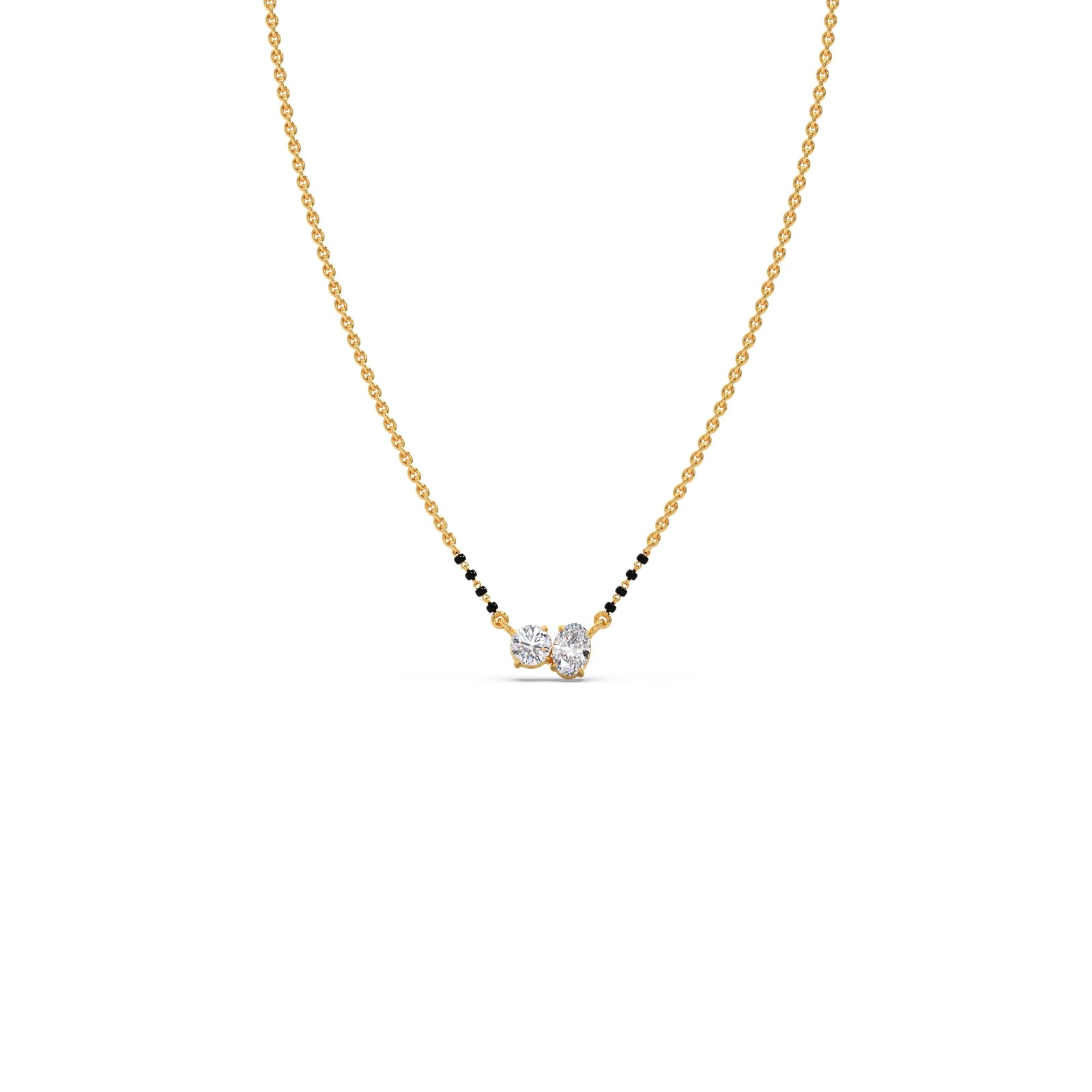 Two dazzling worlds meet in the Round & Oval Diamond Mangalsutra Necklace a soft Round-cut diamond and a brilliant oval stone, linked together on a delicate gold chain with black beads. A modern love story wrapped in tradition, made just for you.