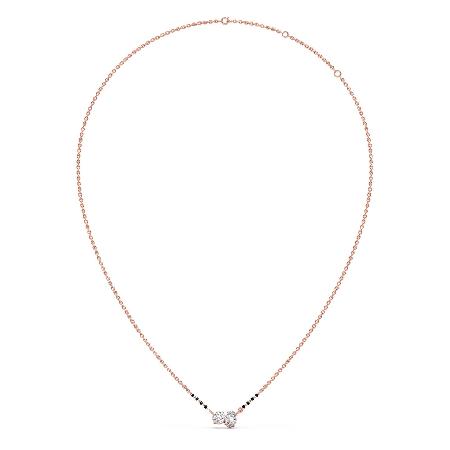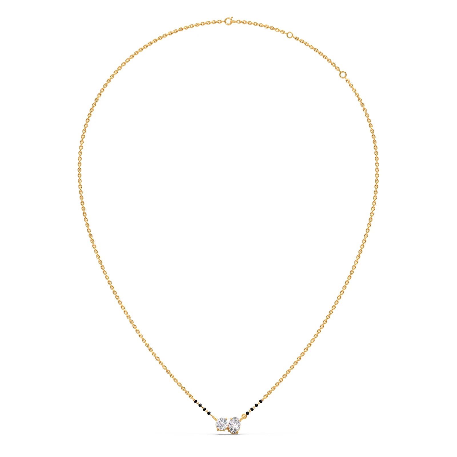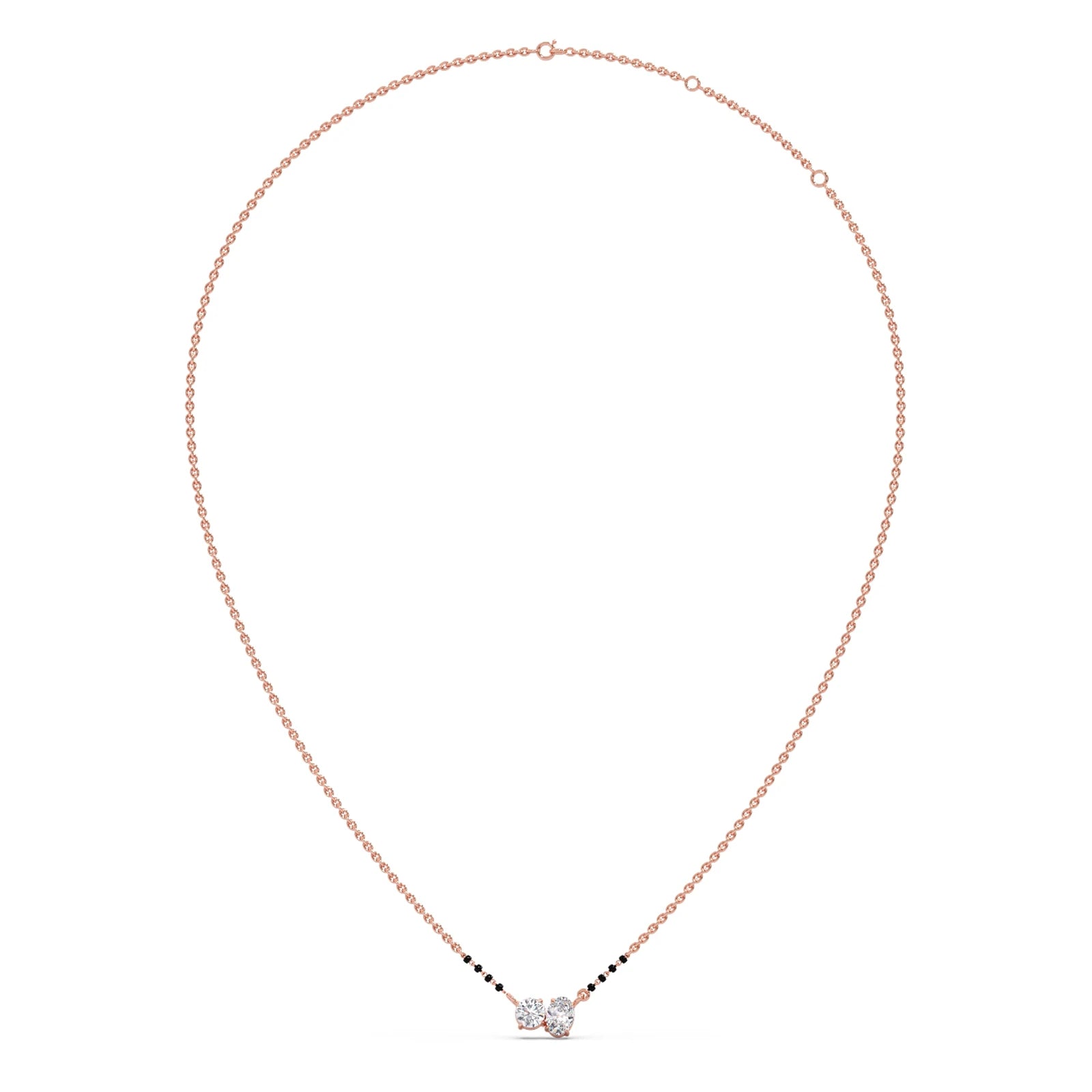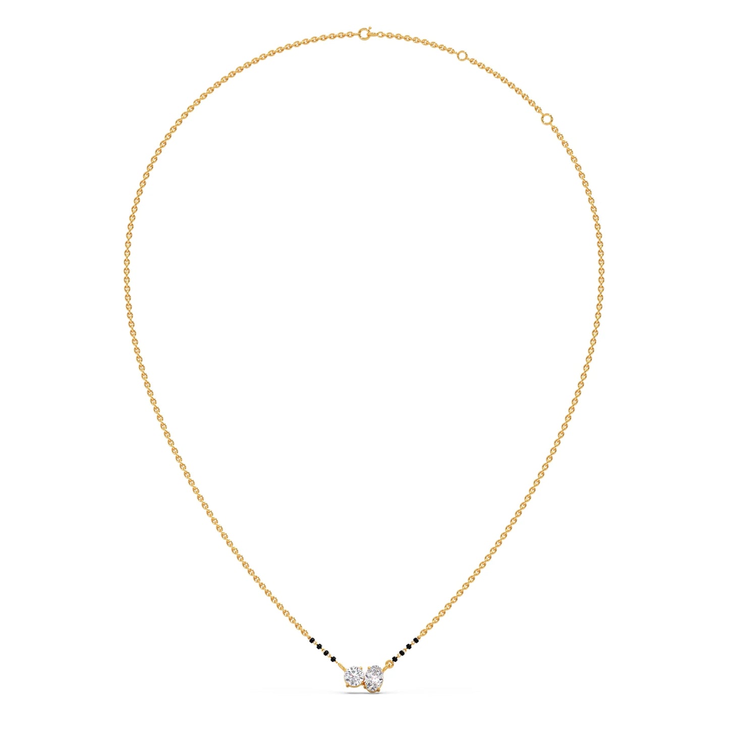 Two dazzling worlds meet in the Round & Oval Diamond Mangalsutra Necklace a soft Round-cut diamond and a brilliant oval stone, linked together on a delicate gold chain with black beads. A modern love story wrapped in tradition, made just for you.