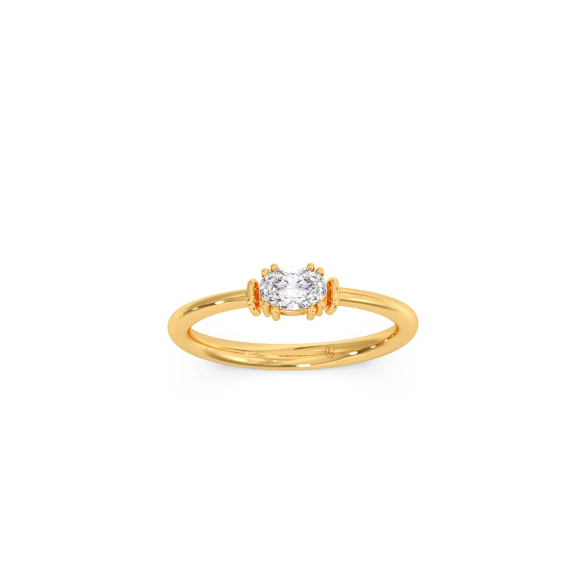 This ring features an oval-cut solitaire, designed for maximum sparkle. The setting highlights the elongated shape and brilliance of the stone. Its classic design emphasizes the centre stone, making it an elegant and timeless piece, perfect for engagements or special occasions.