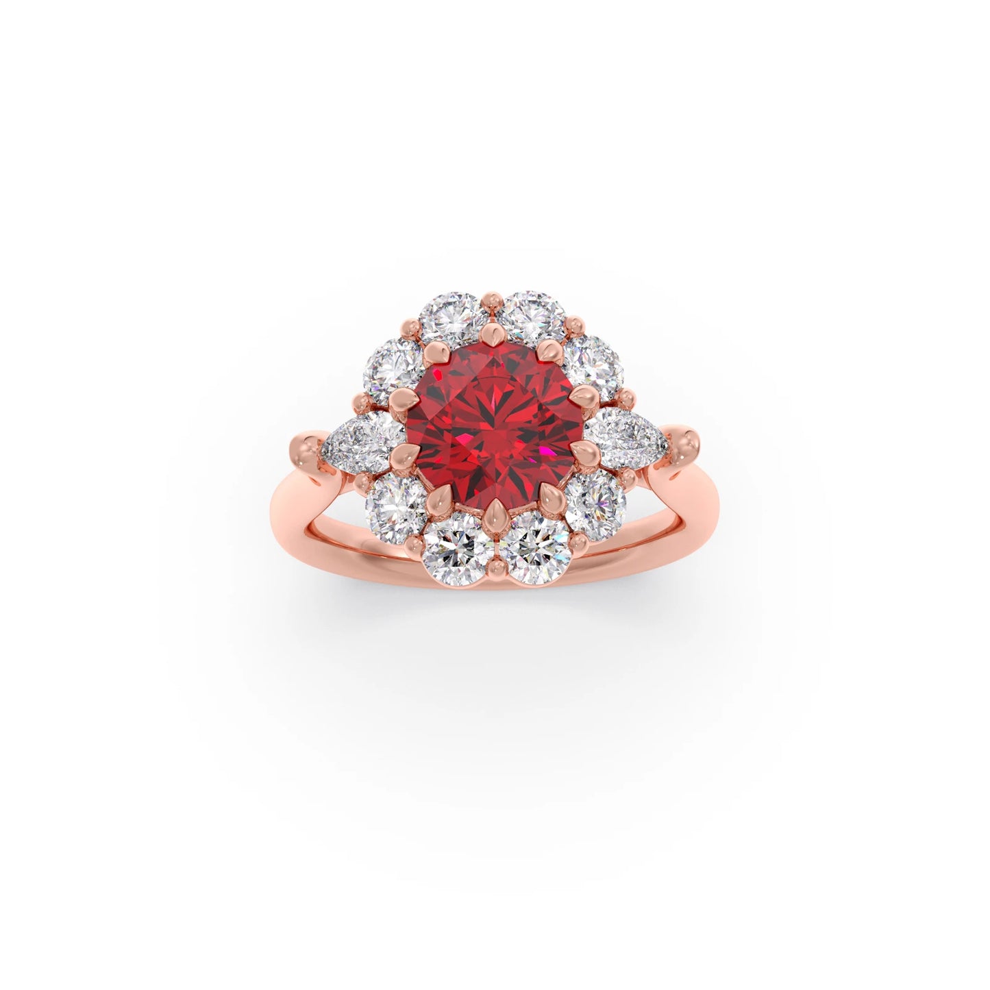 Pear and Round Diamond Halo Ring with Center Gemstone