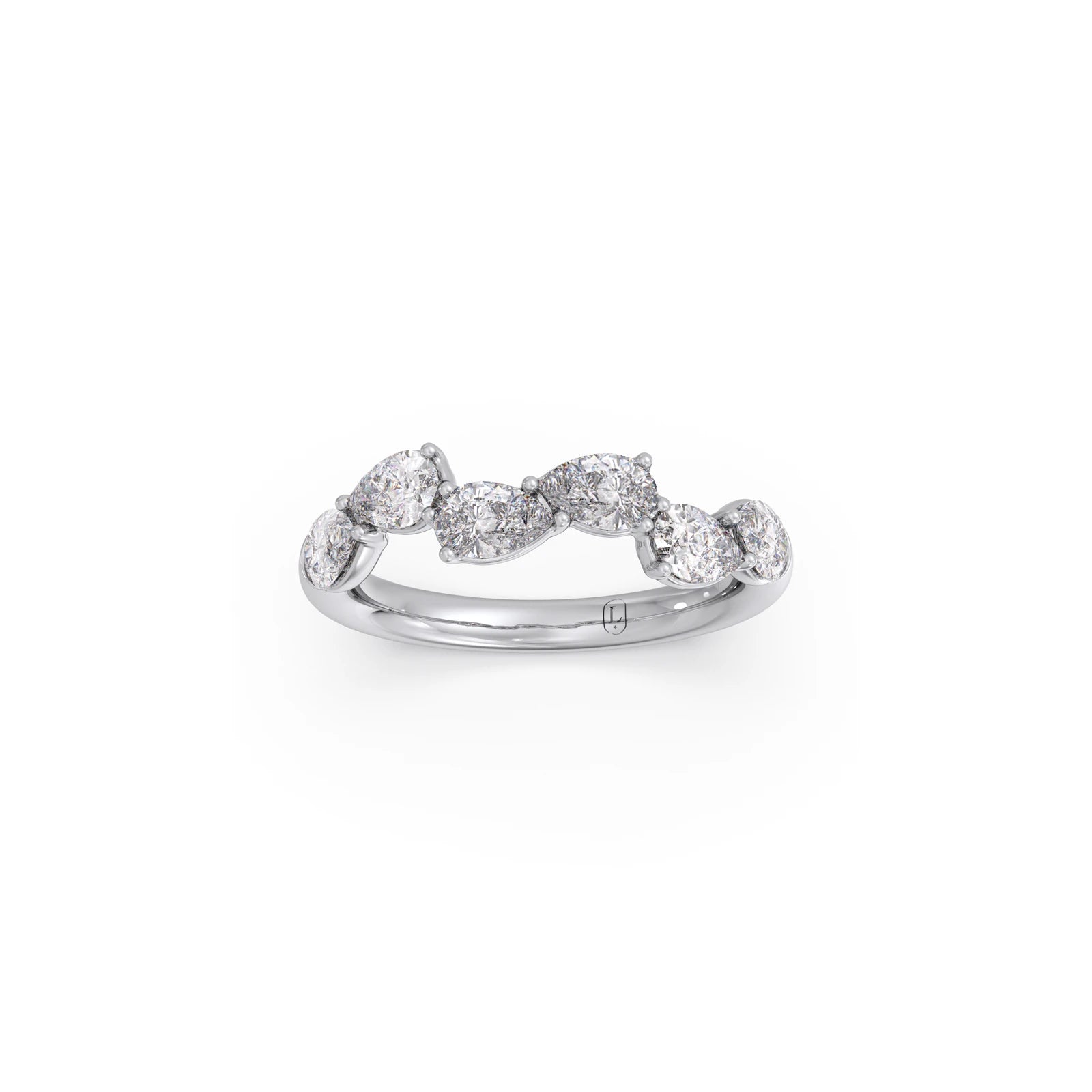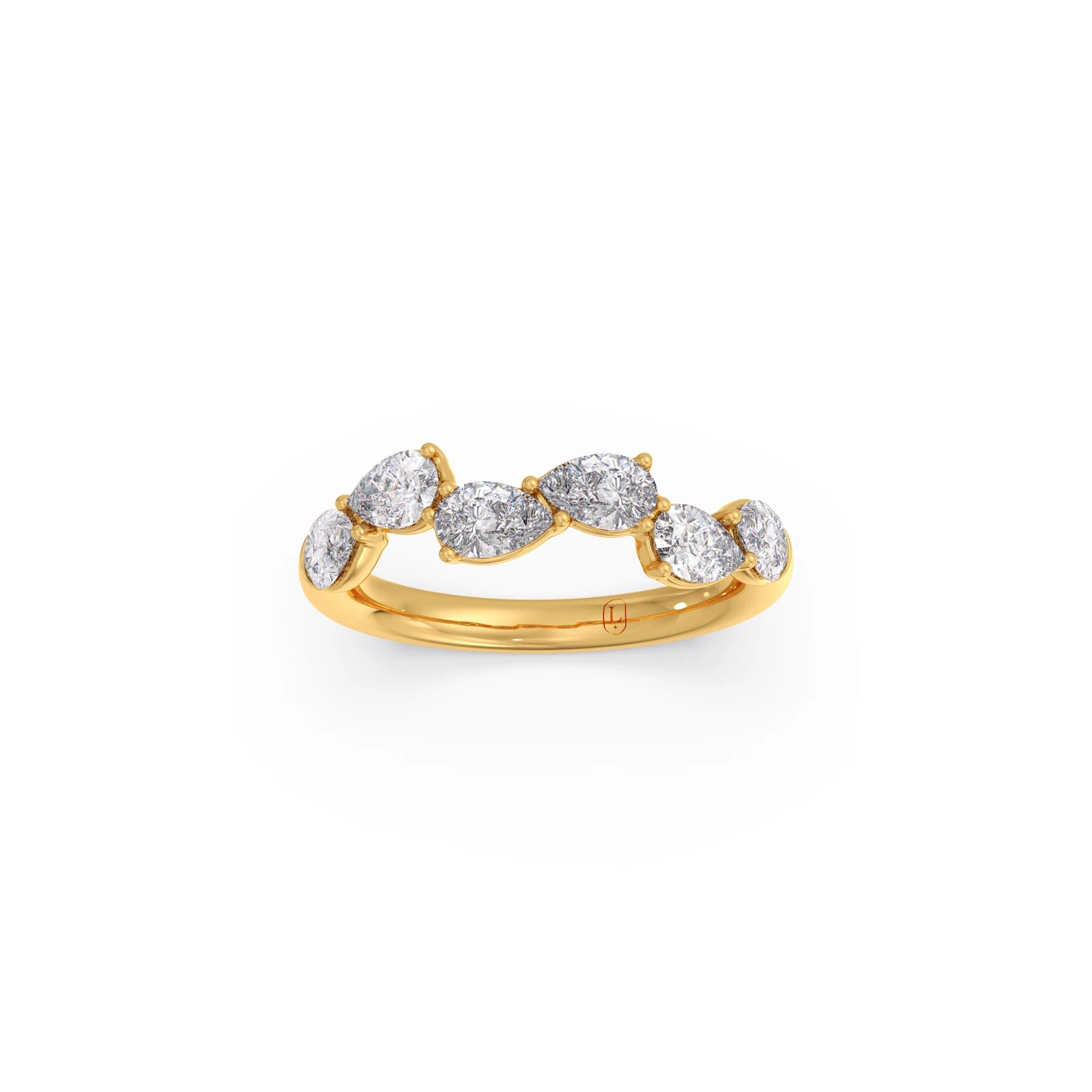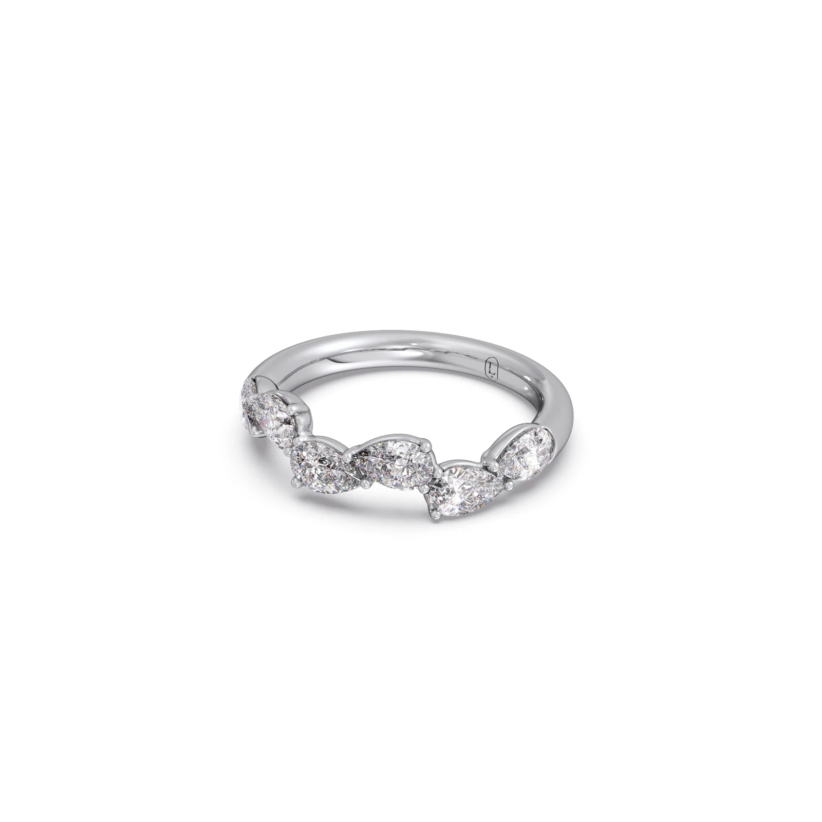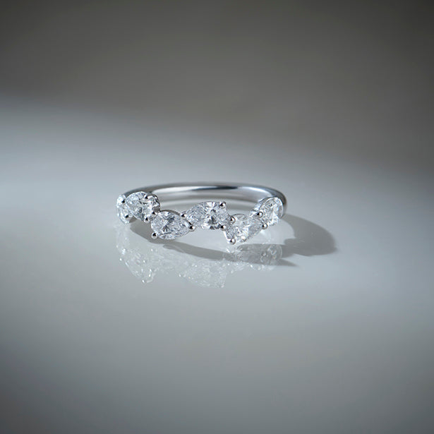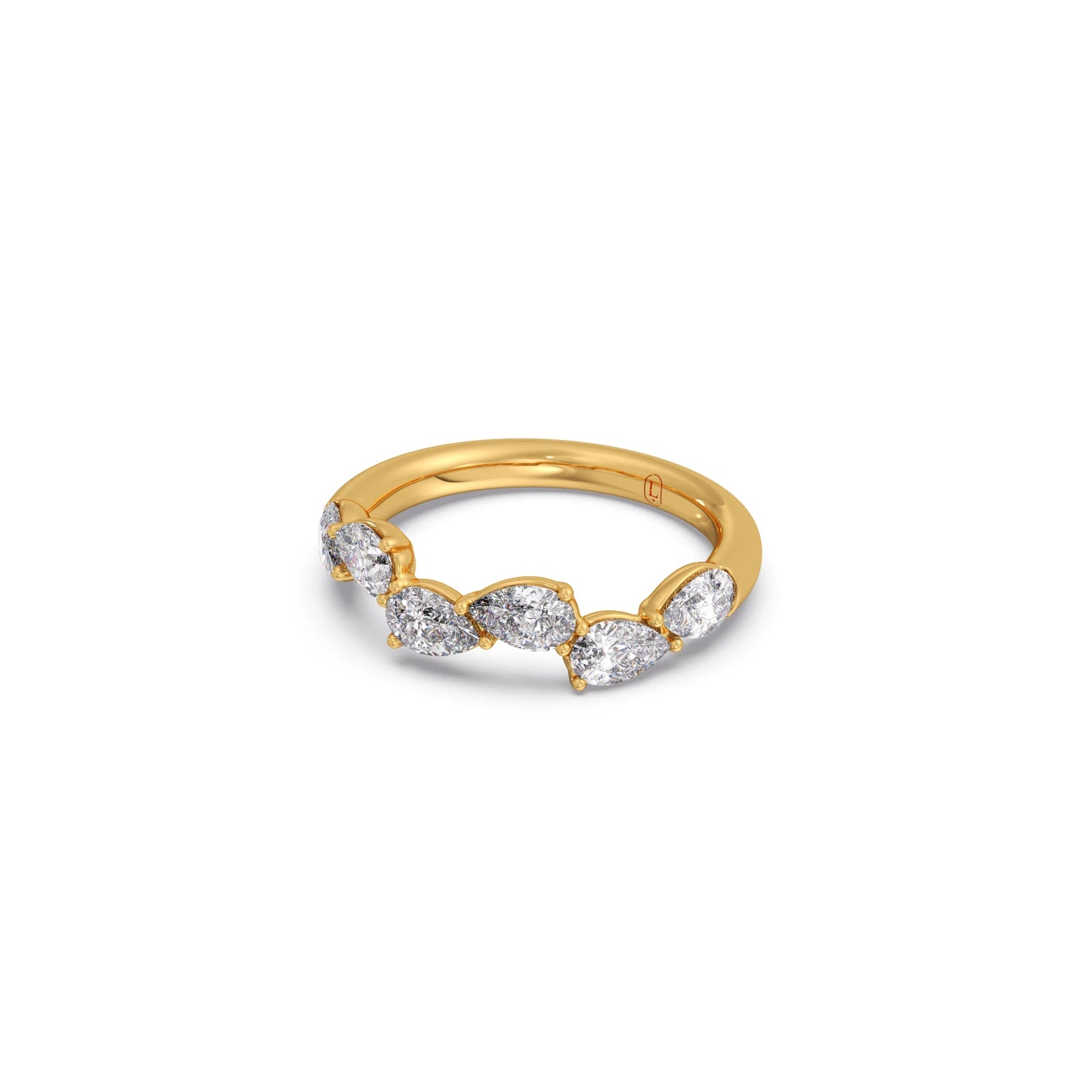 Featuring uniquely elegant pear-cut diamonds, this half eternity ring offers a sophisticated twist on a classic design. Each dazzling pear-shaped stone is set to maximize its captivating sparkle, symbolizing a love as distinctive and radiant as you are. A perfect blend of modern allure and timeless grace.