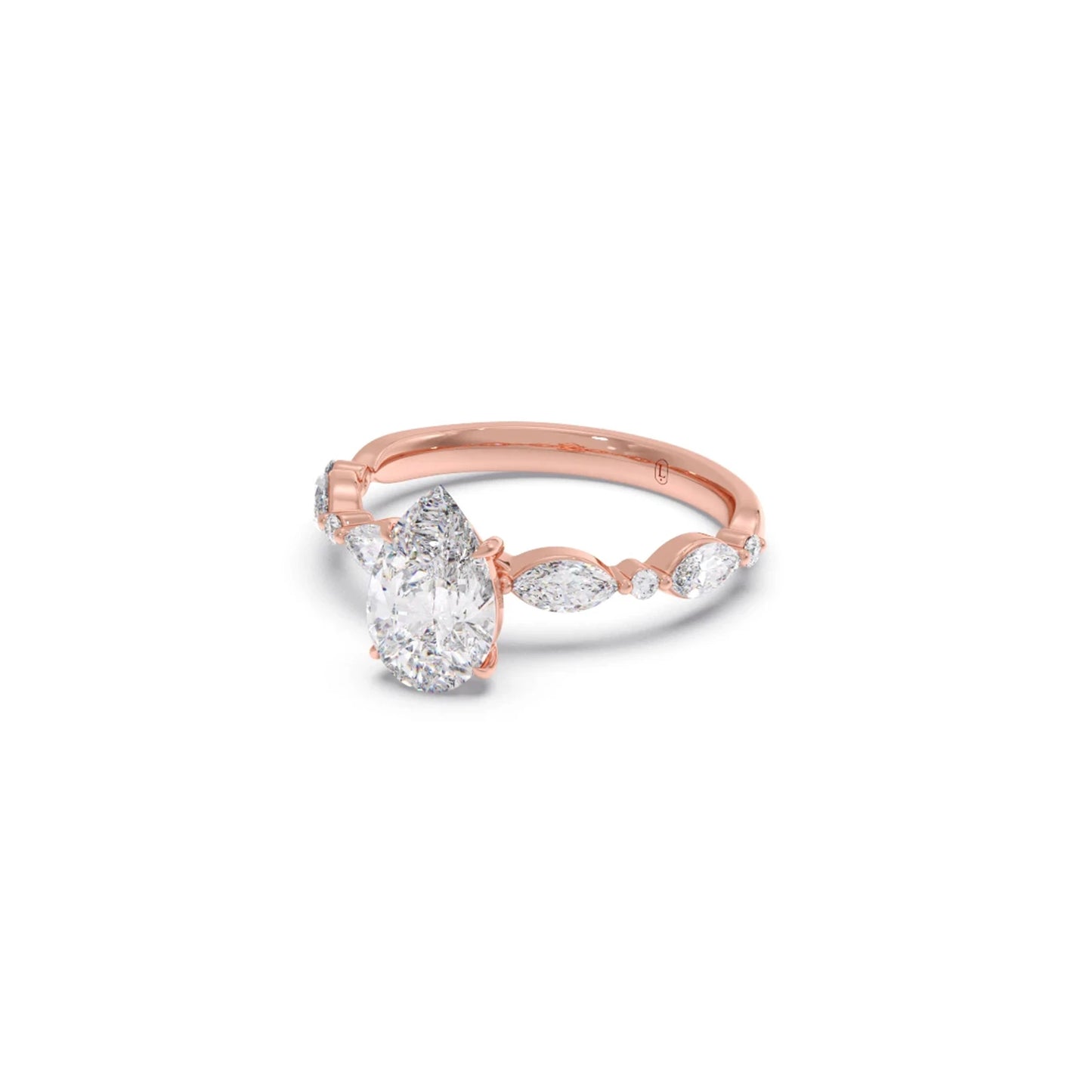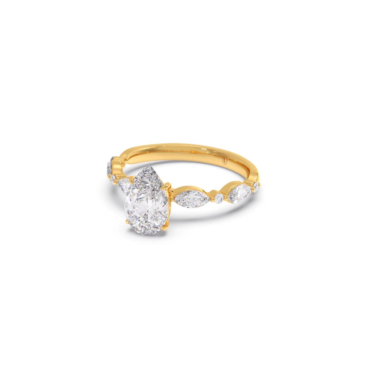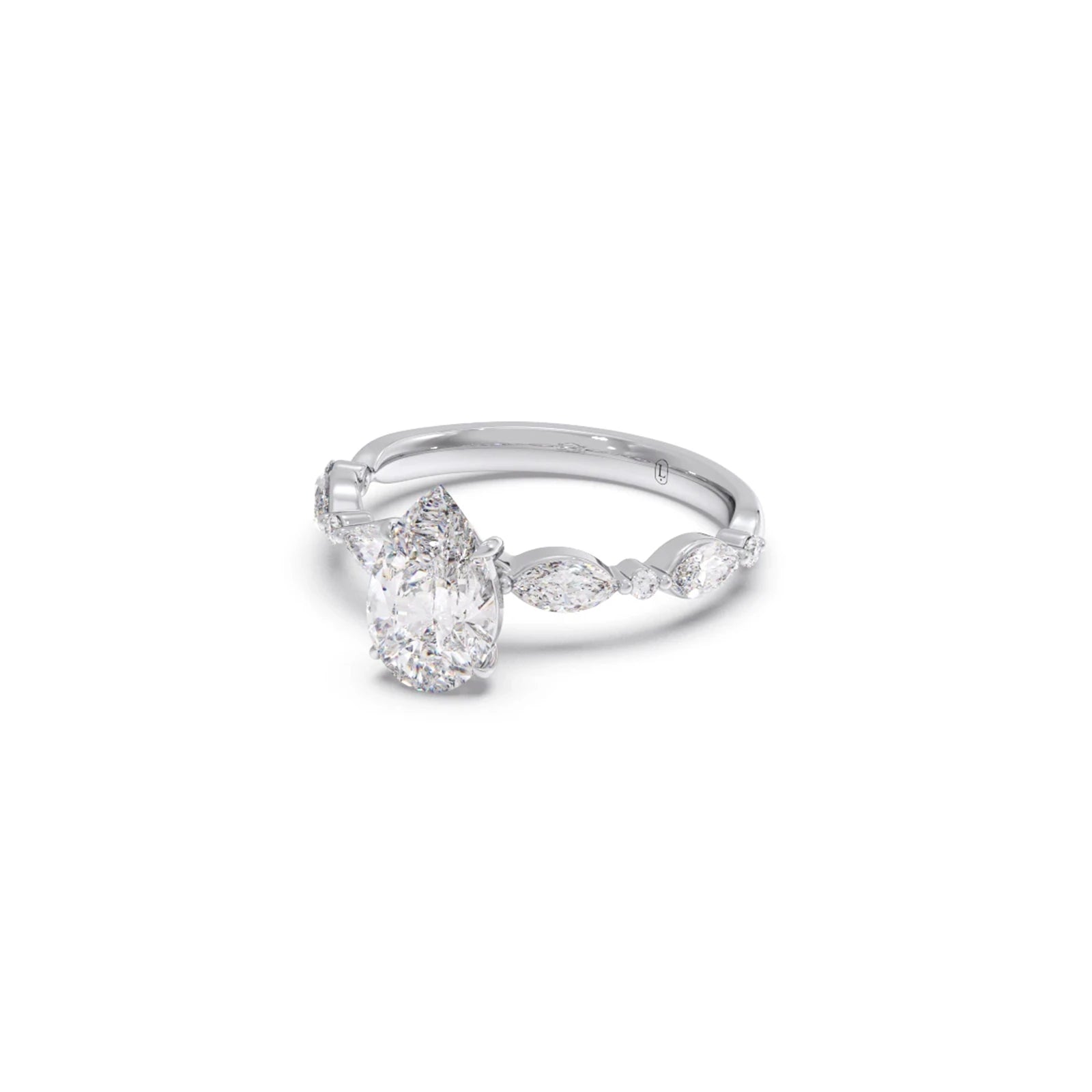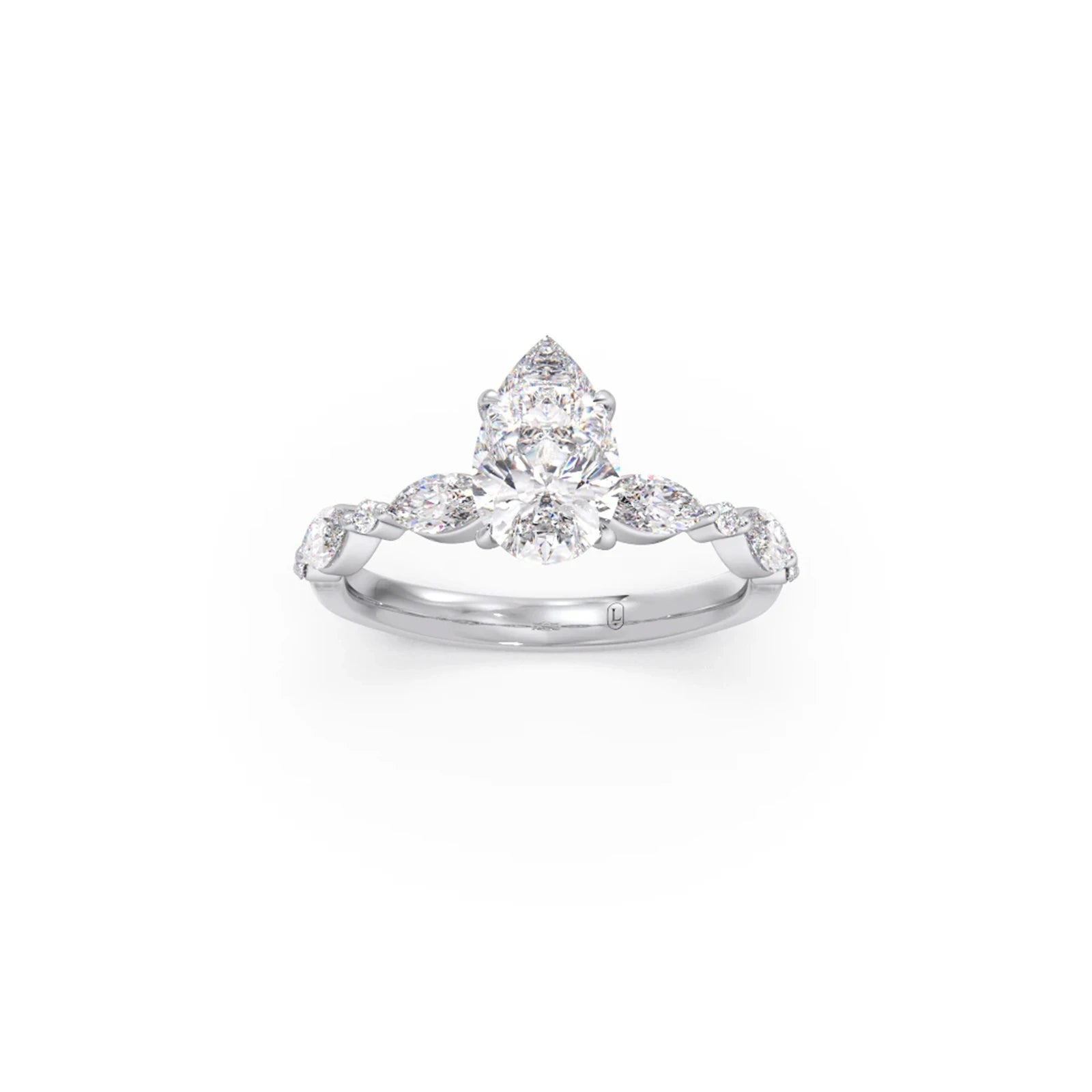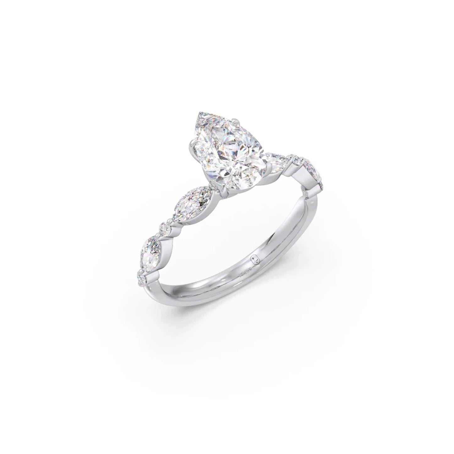 Charming and radiant, our Pear Cut Engagement Ring features a beautiful pear-shaped diamond, accented with Shimmering Marquise-shaped and Petite Round Diamonds for a stunning, elongated sparkle💫💍
