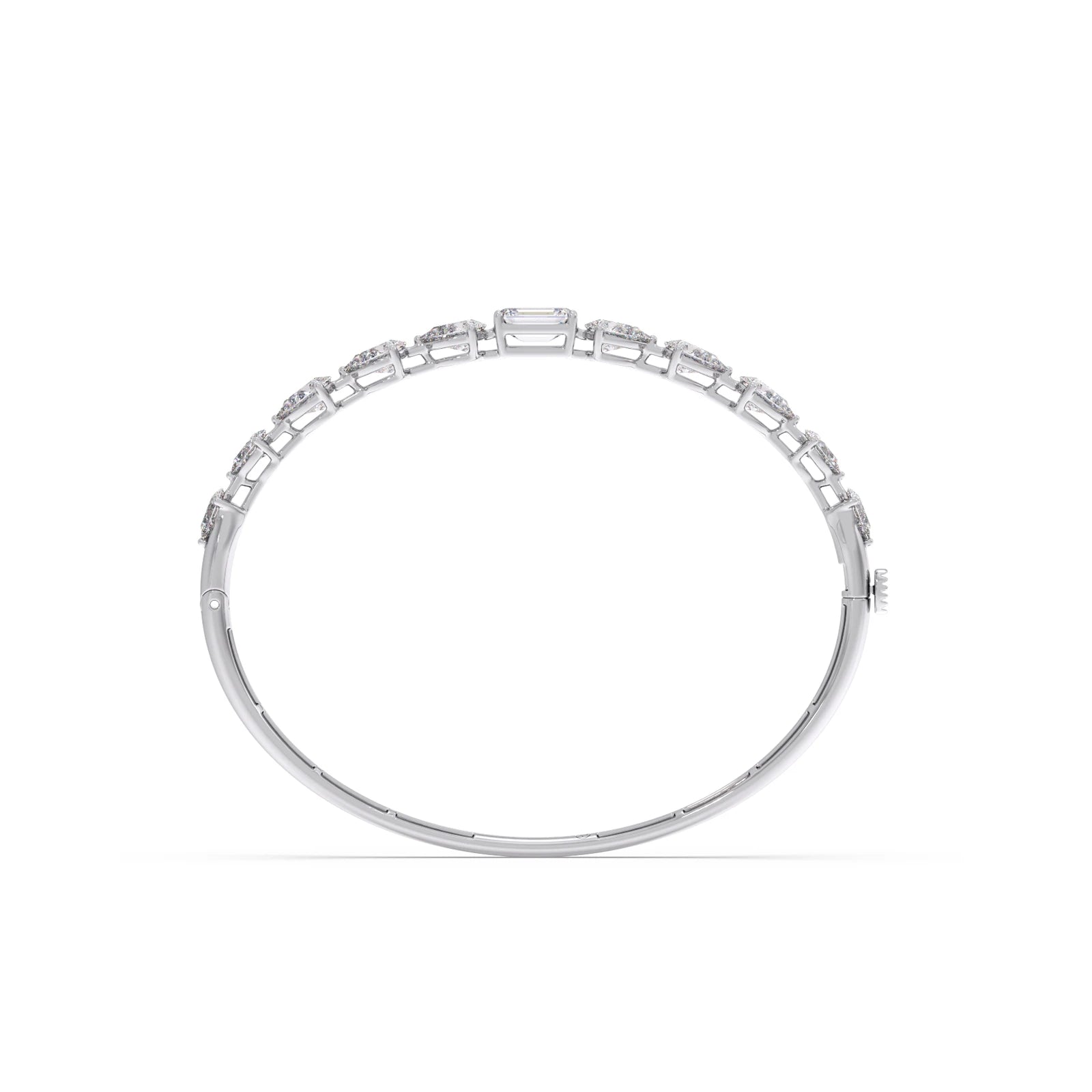 "Adorn your wrist with unparalleled elegance. This stunning bracelet features a harmonious dance of exquisite pear-cut and sophisticated emerald-cut diamonds. Each stone is meticulously set to capture and reflect light, creating a breathtaking display of brilliance. A truly unique and luxurious statement piece."