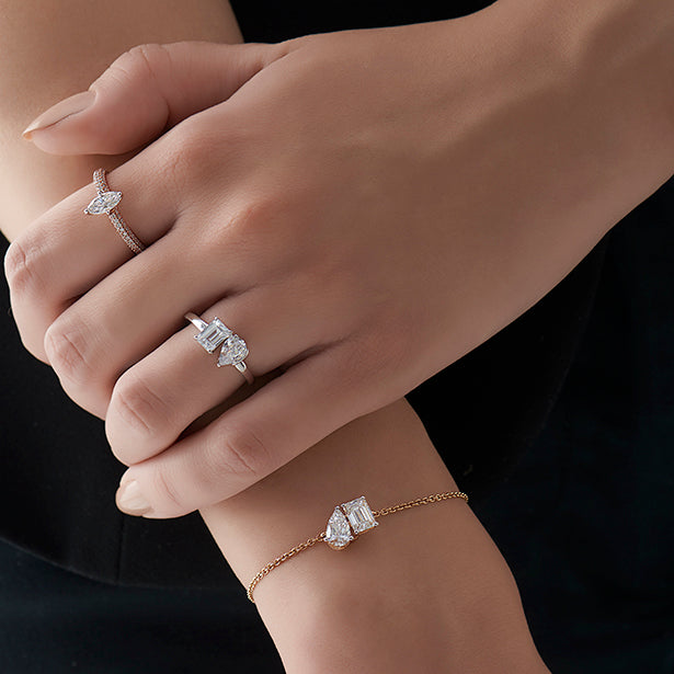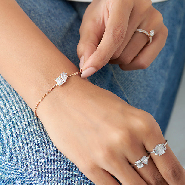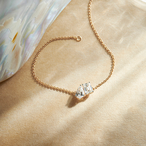 Pear & Emerald Cut Diamond Delicate Chain Bracelet