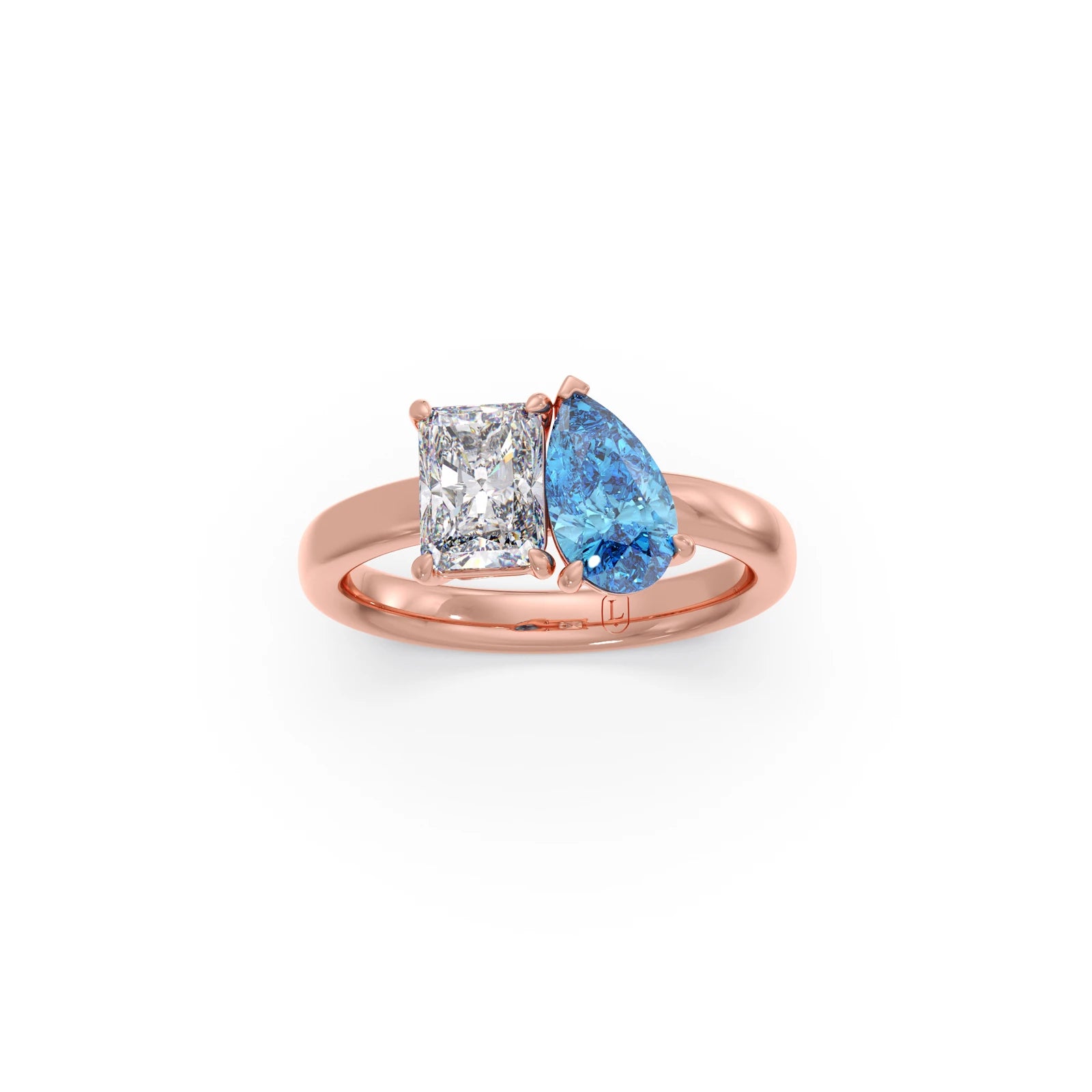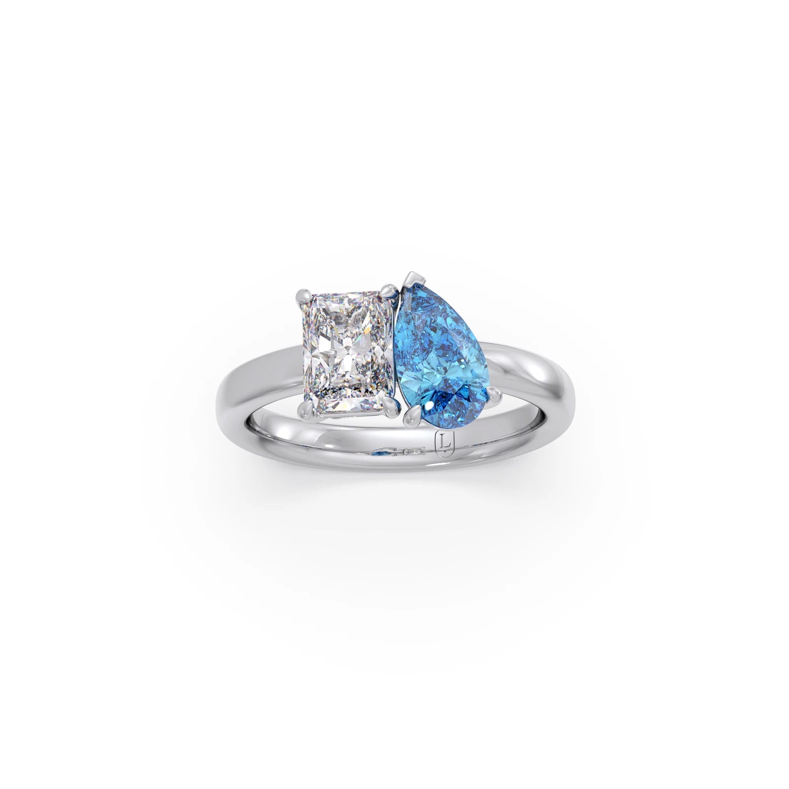 Experience eternal connection with our breathtaking Toi et Moi ring, showcasing a lustrous pear-shaped gemstone alongside a vibrant emerald diamond. This captivating duo symbolizes two souls intertwined, offering a truly unique and elegant statement of love.
