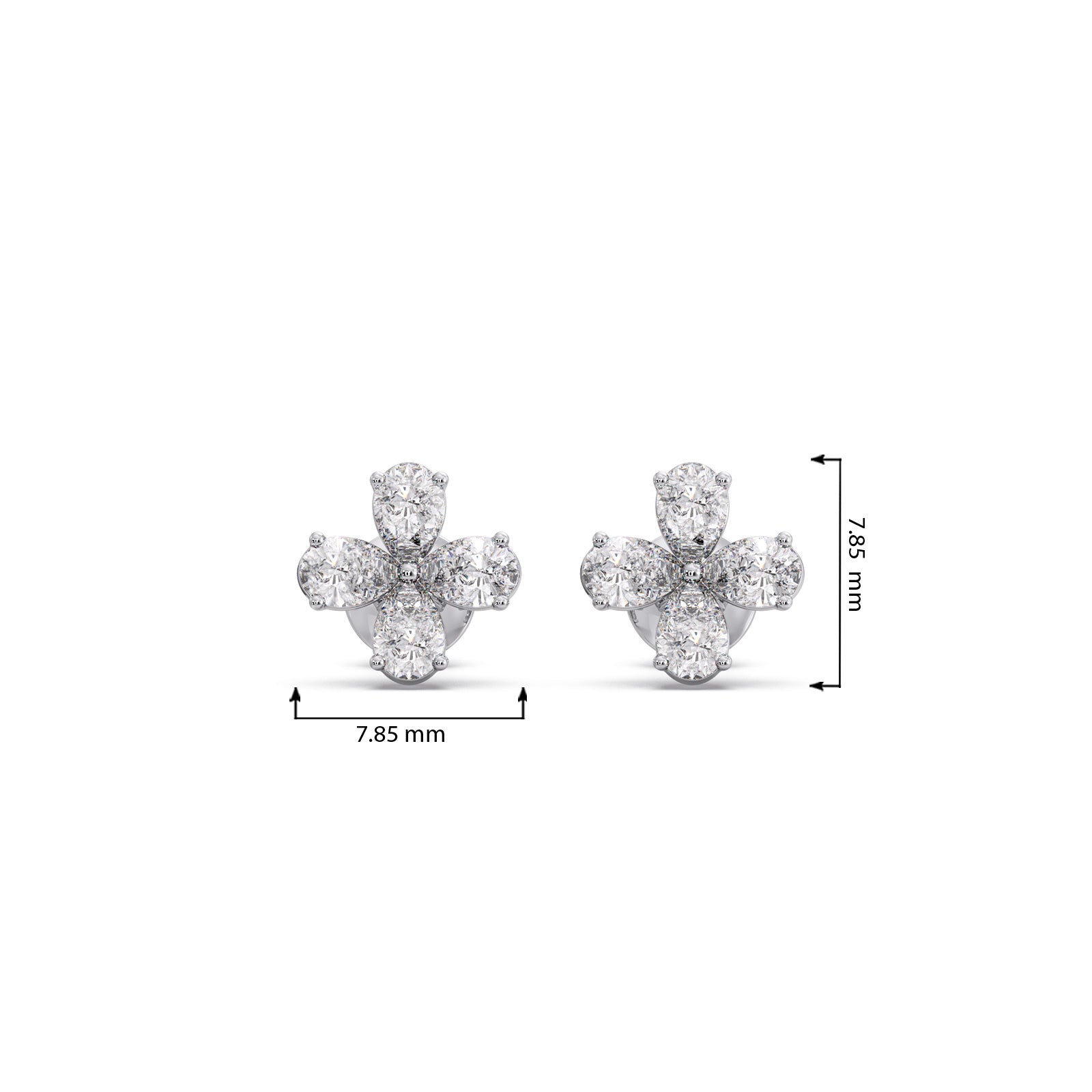 Delicate and elegant, the Pear Floral Stud Earrings feature sparkling Pear Diamonds arranged in a graceful floral pattern. Crafted for timeless beauty, these earrings add a touch of sophistication to any look, making them perfect for both everyday elegance and special occasions.