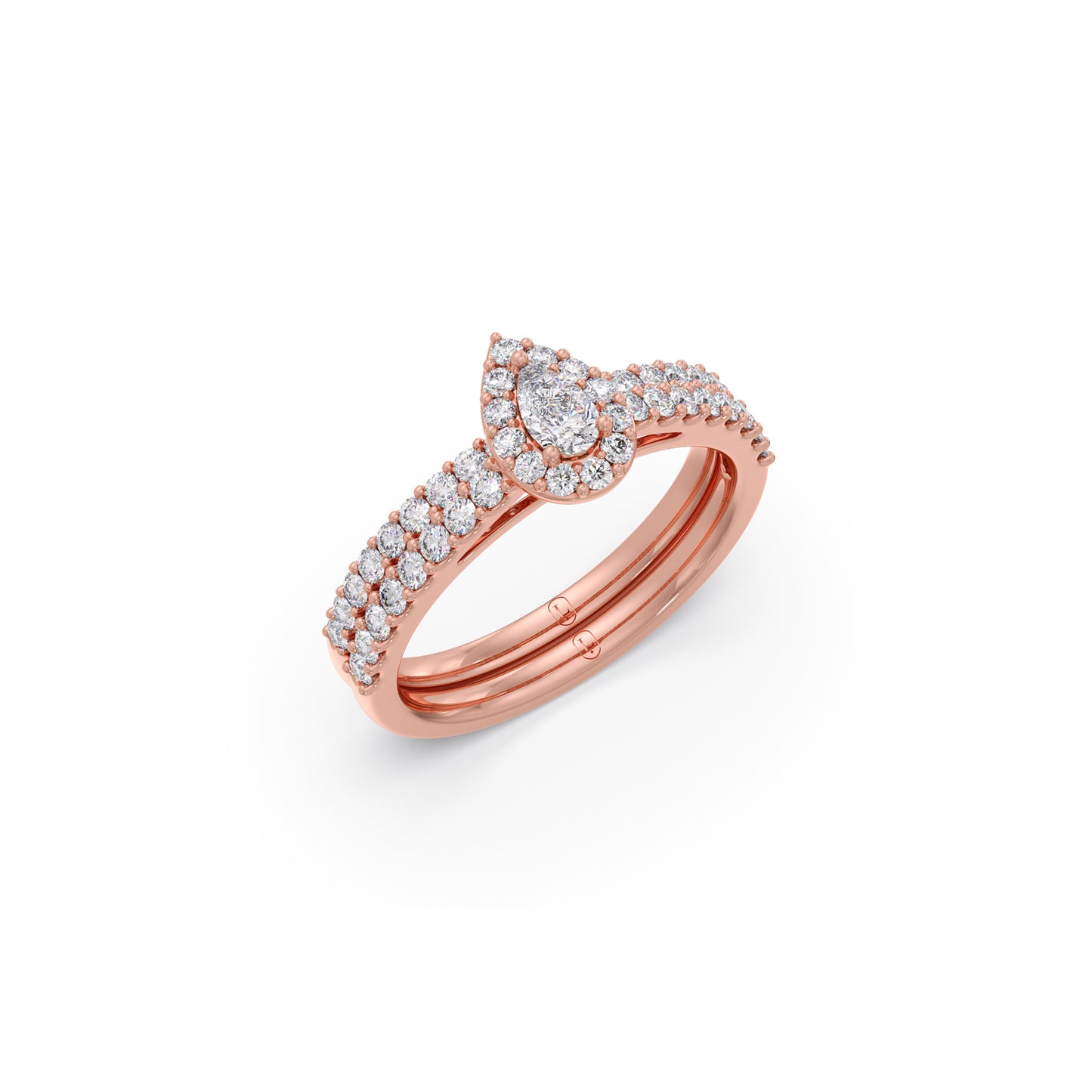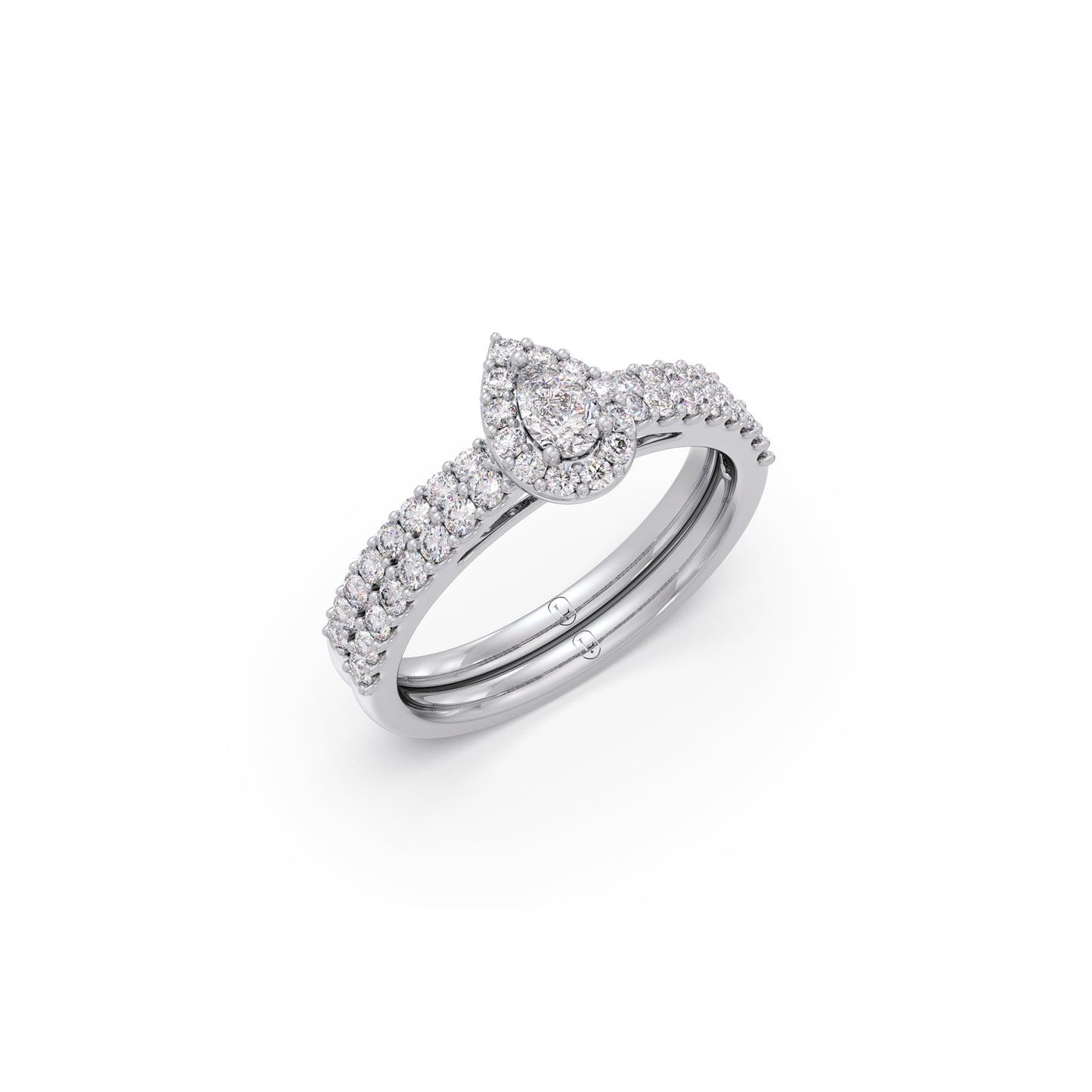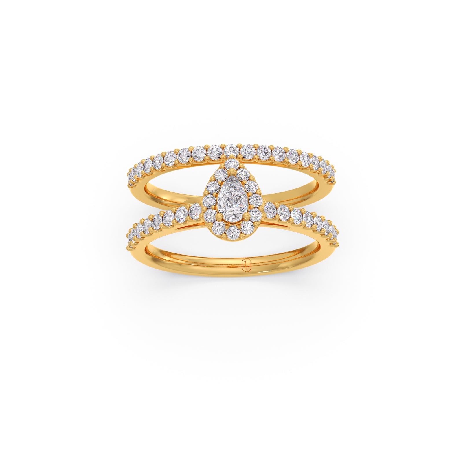 Elevate your stack with this graceful ring featuring a captivating pear-shaped diamond as its focal point. Delicate accents of smaller diamonds enhance its unique silhouette, adding a touch of subtle sparkle. Designed for effortless layering, this ring brings a sophisticated and distinctive charm to any ensemble. A beautiful expression of individual style.