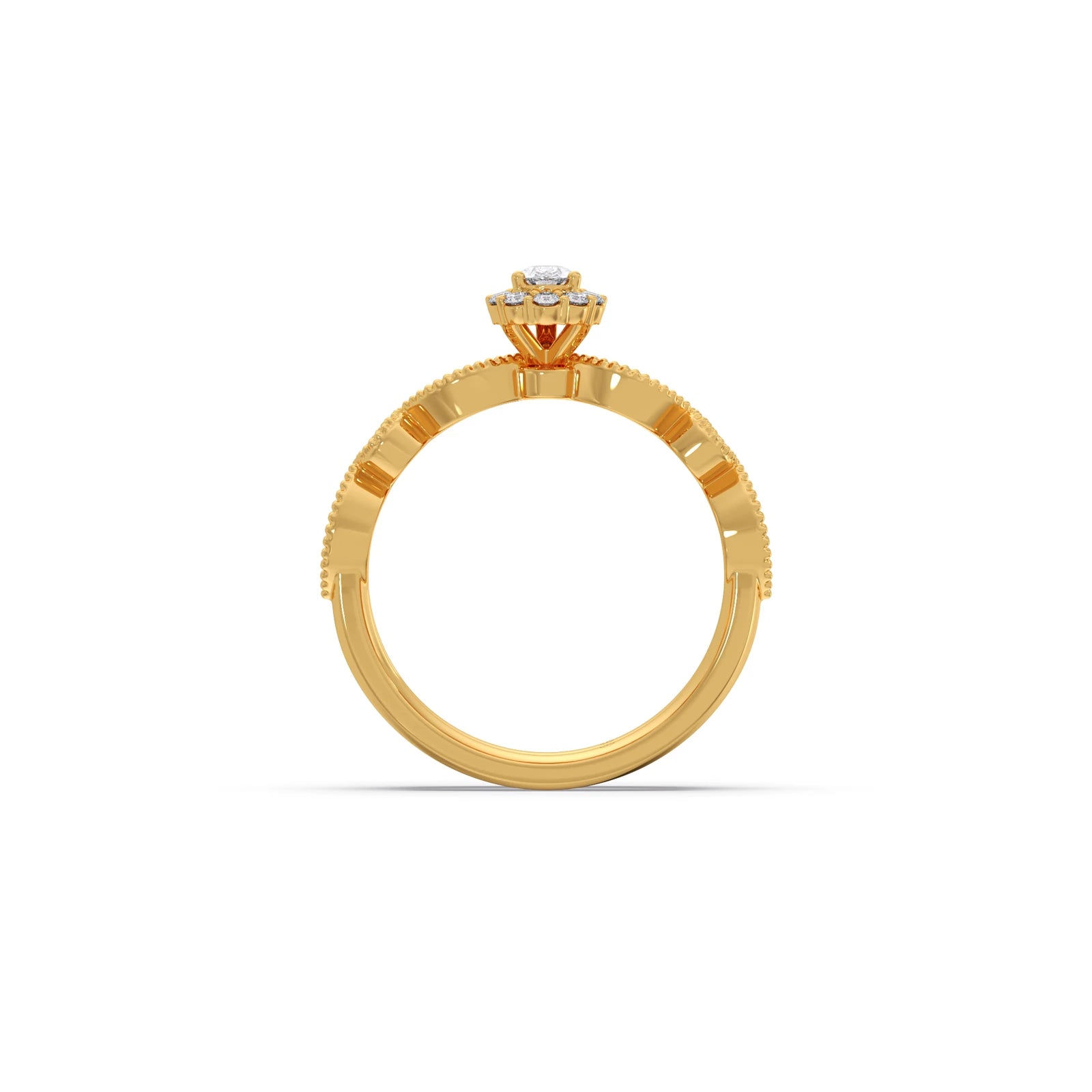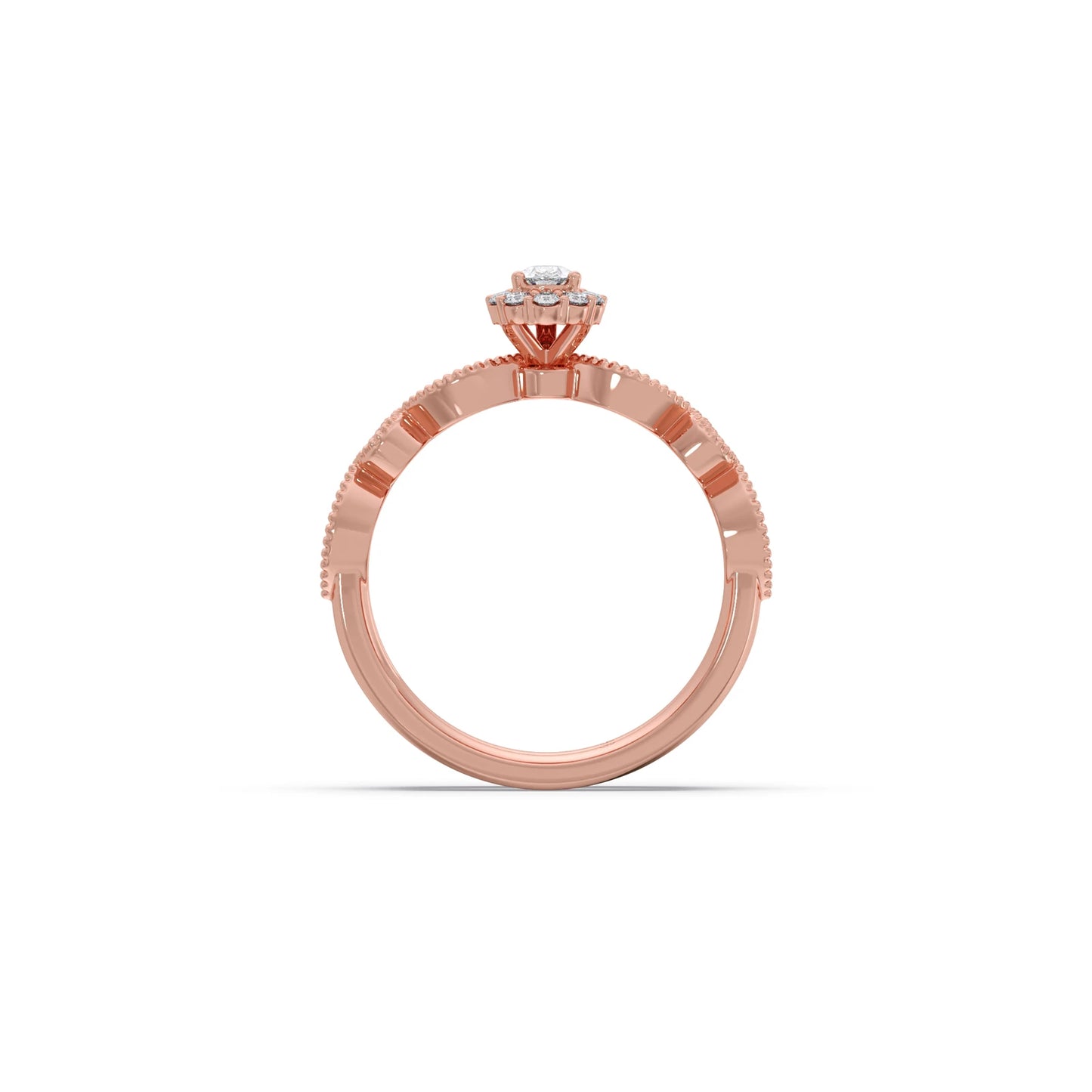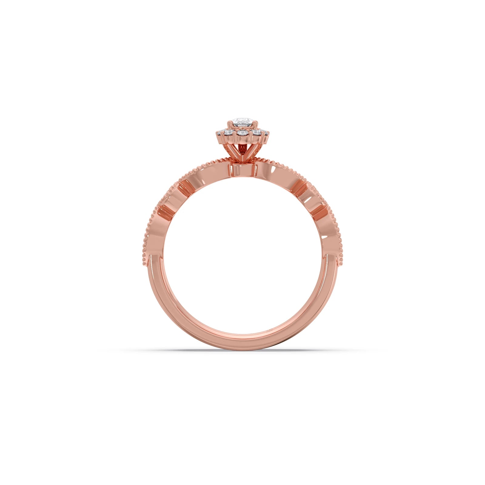 This captivating stackable Wedding ring showcases a stunning pear-shaped diamond embraced by a shimmering halo of round diamonds. The delicate band, also accented with petite round diamonds, adds extra sparkle. Designed for seamless stacking, this ring offers a unique blend of classic elegance and modern versatility, perfect for celebrating your love story.