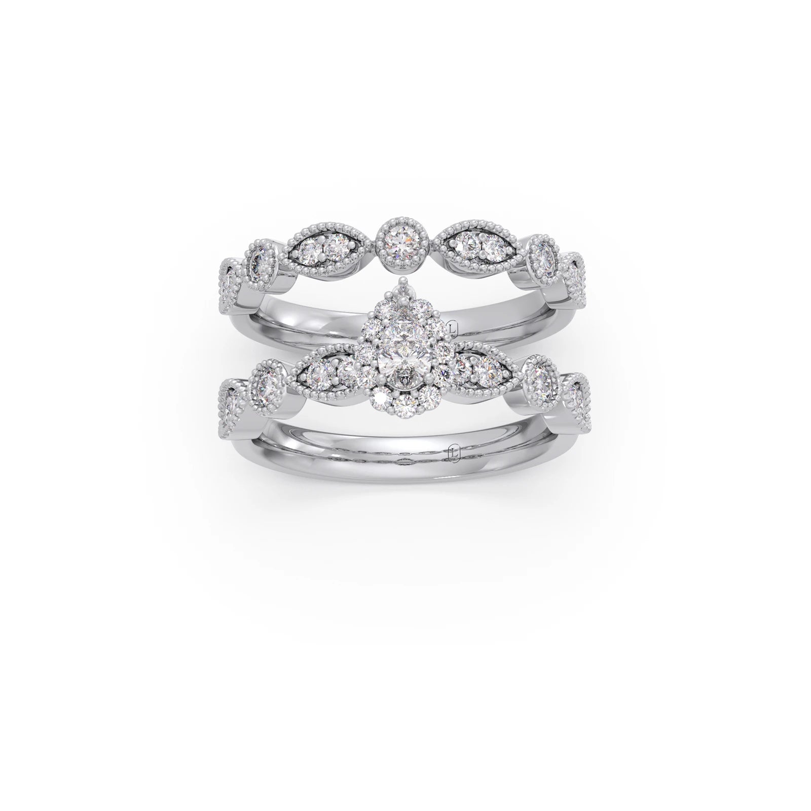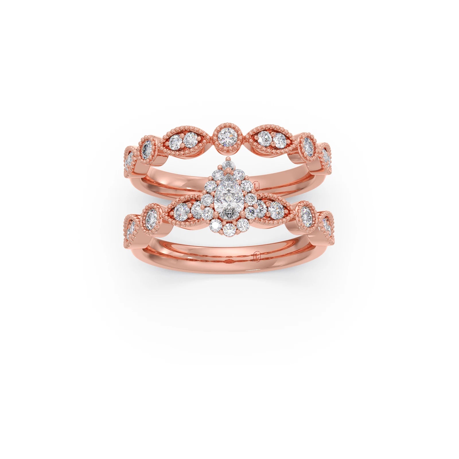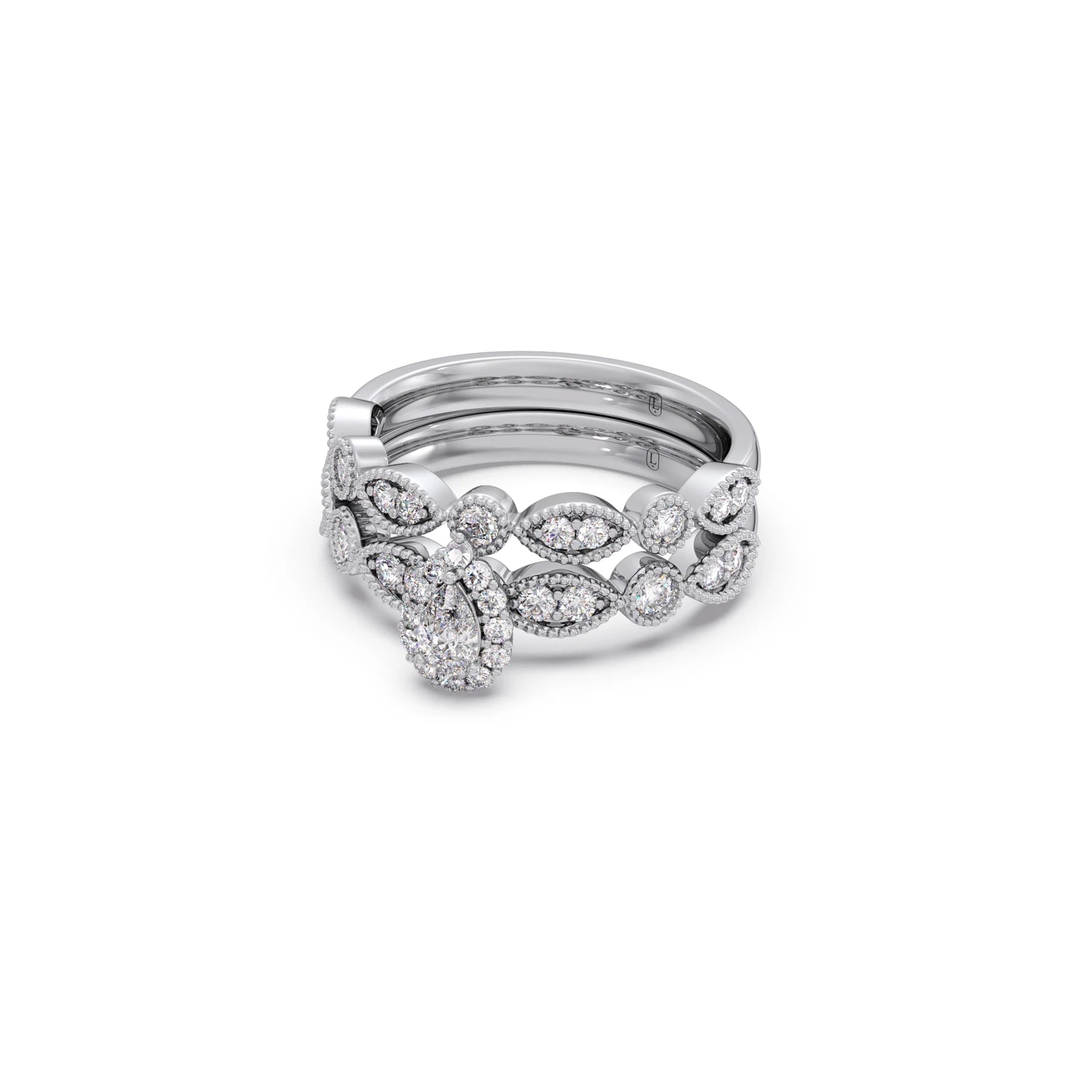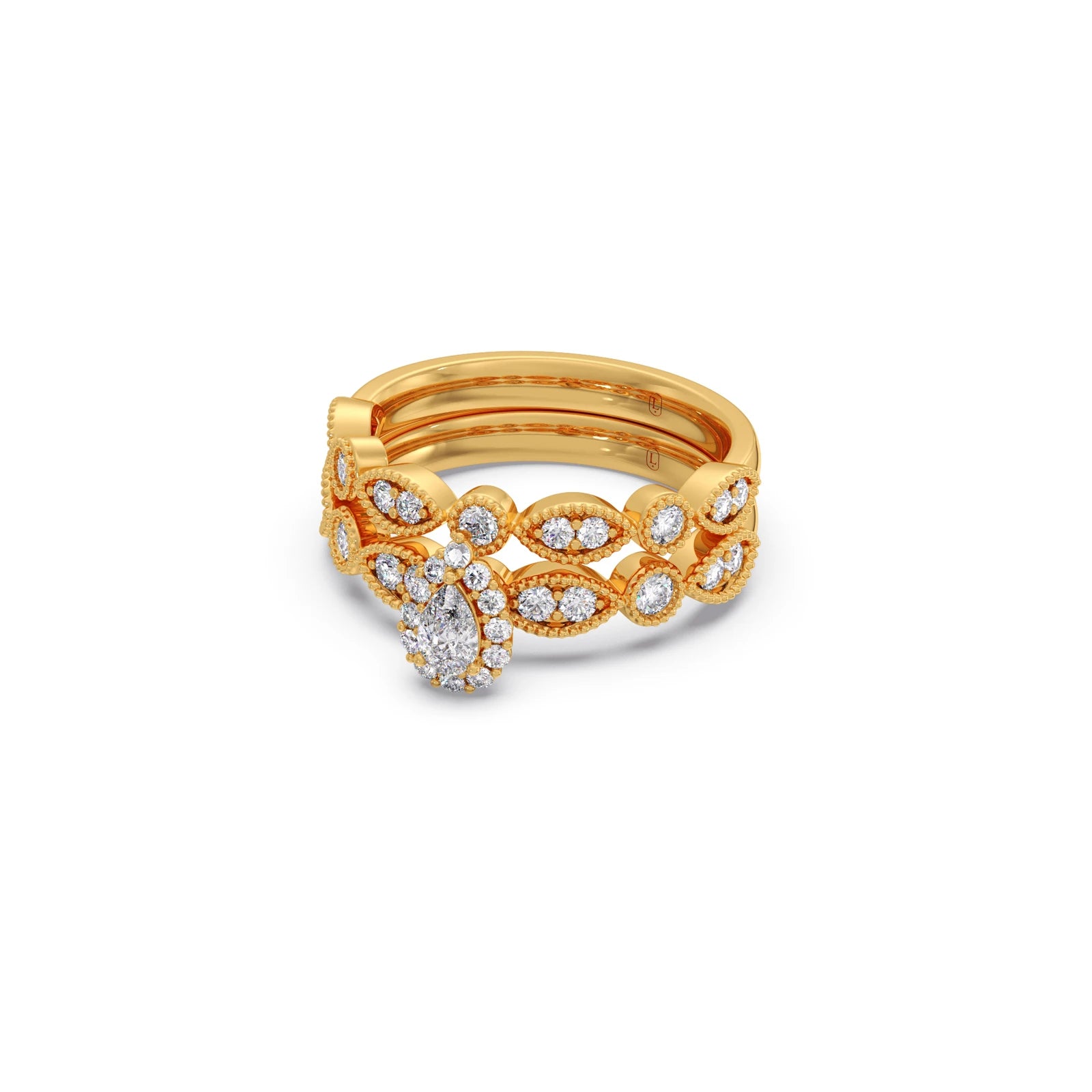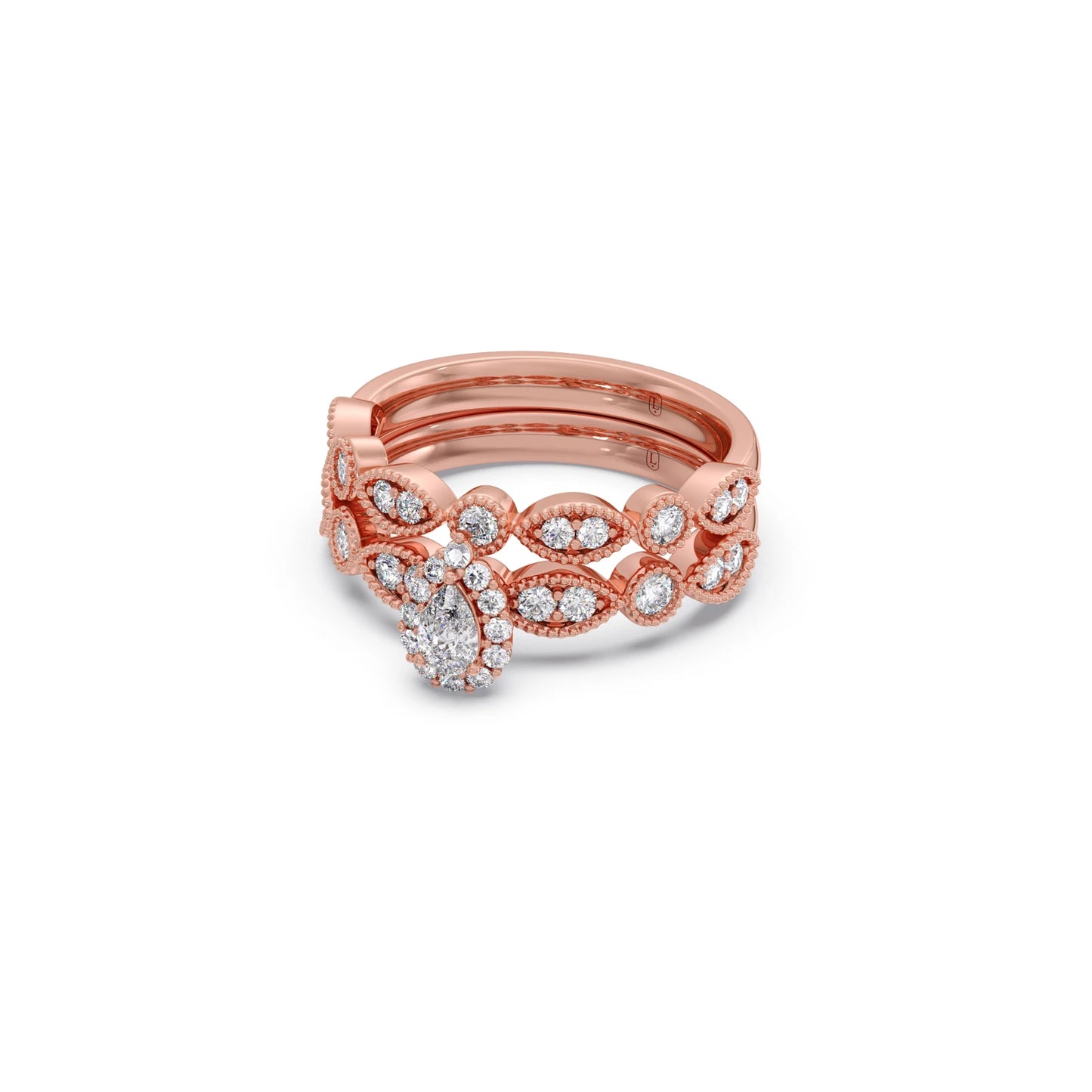 Pear Shaped and Halo Round Diamond Stackable Wedding Ring
