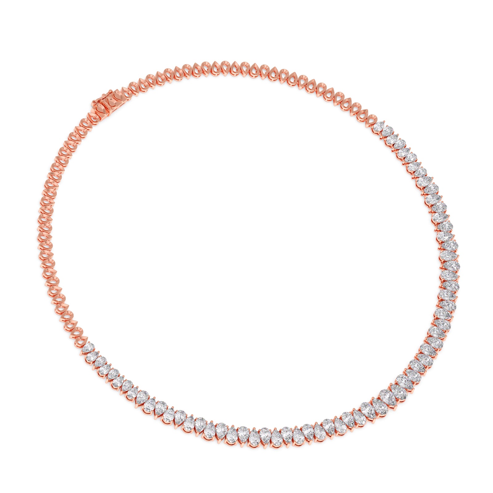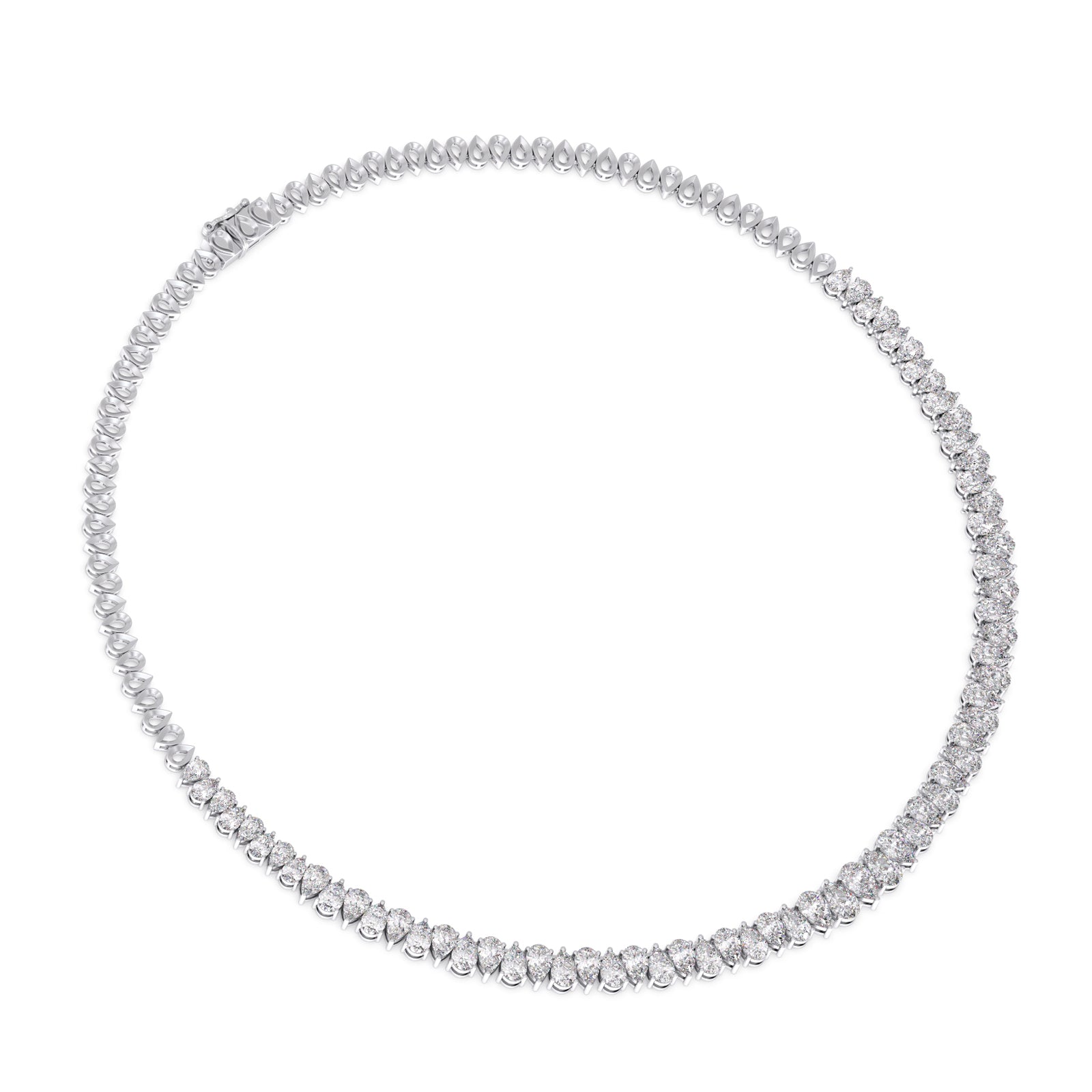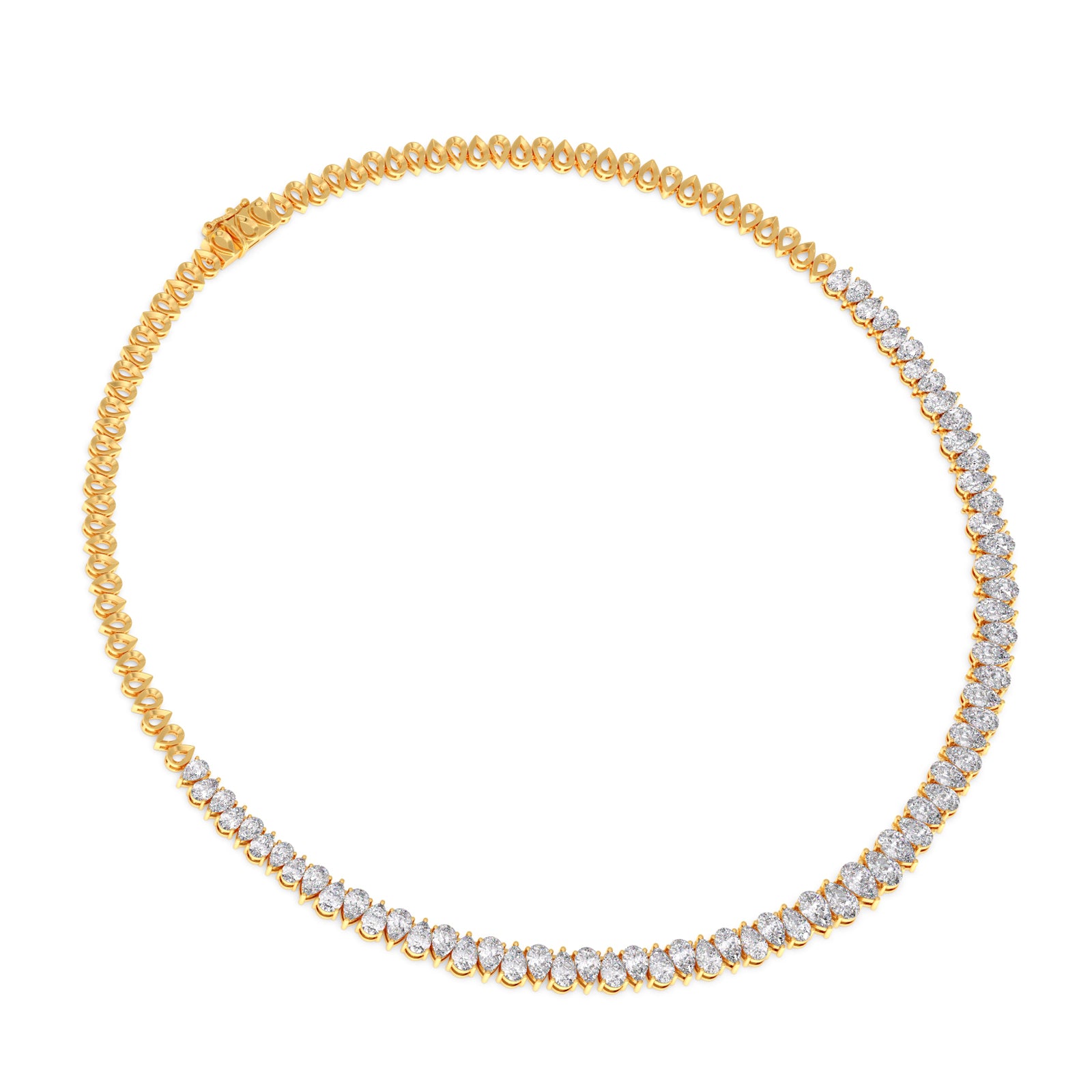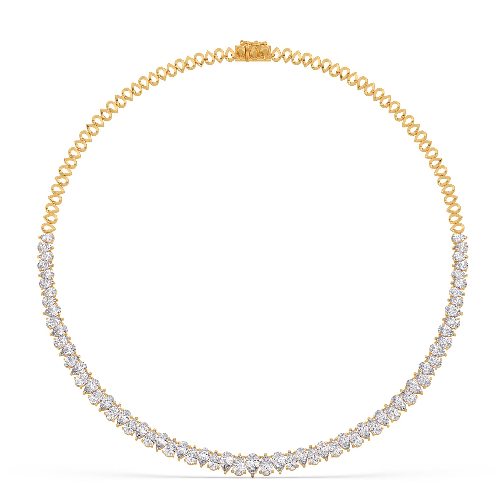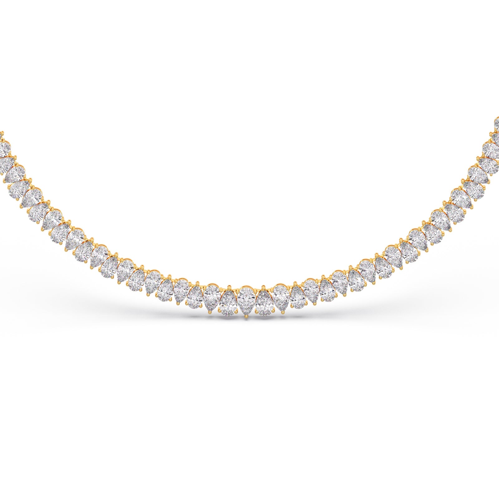 Elevate your look with our Pear Shaped Diamond Tennis Necklace. Featuring a continuous, flexible line of brilliant pear-cut diamonds, it offers unique sparkle and graceful elegance. A luxurious twist on a classic, perfect for making a sophisticated statement.