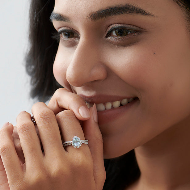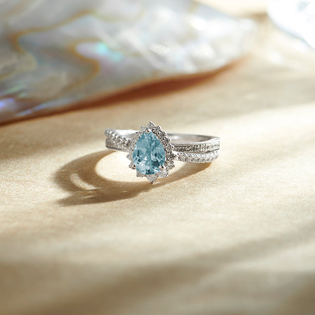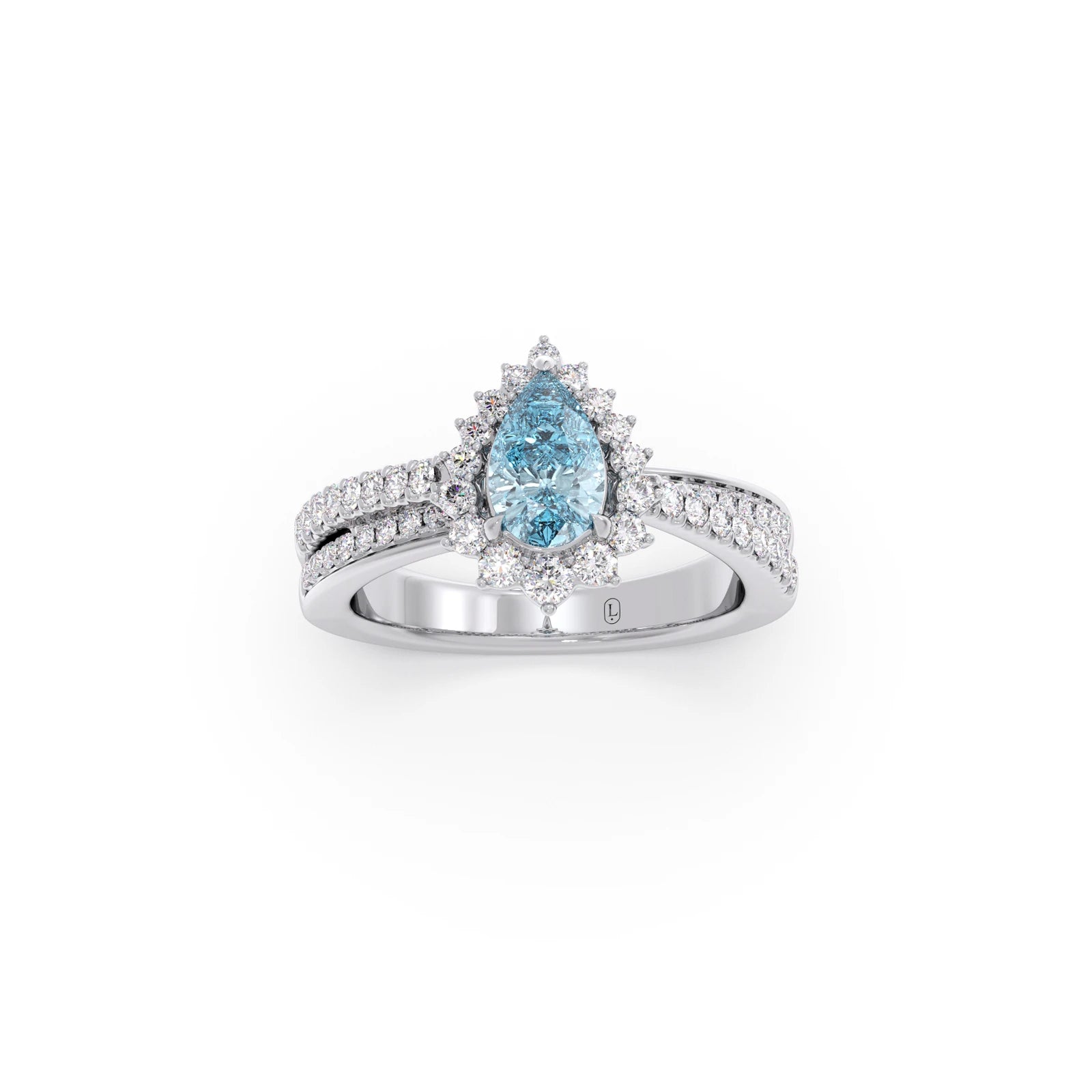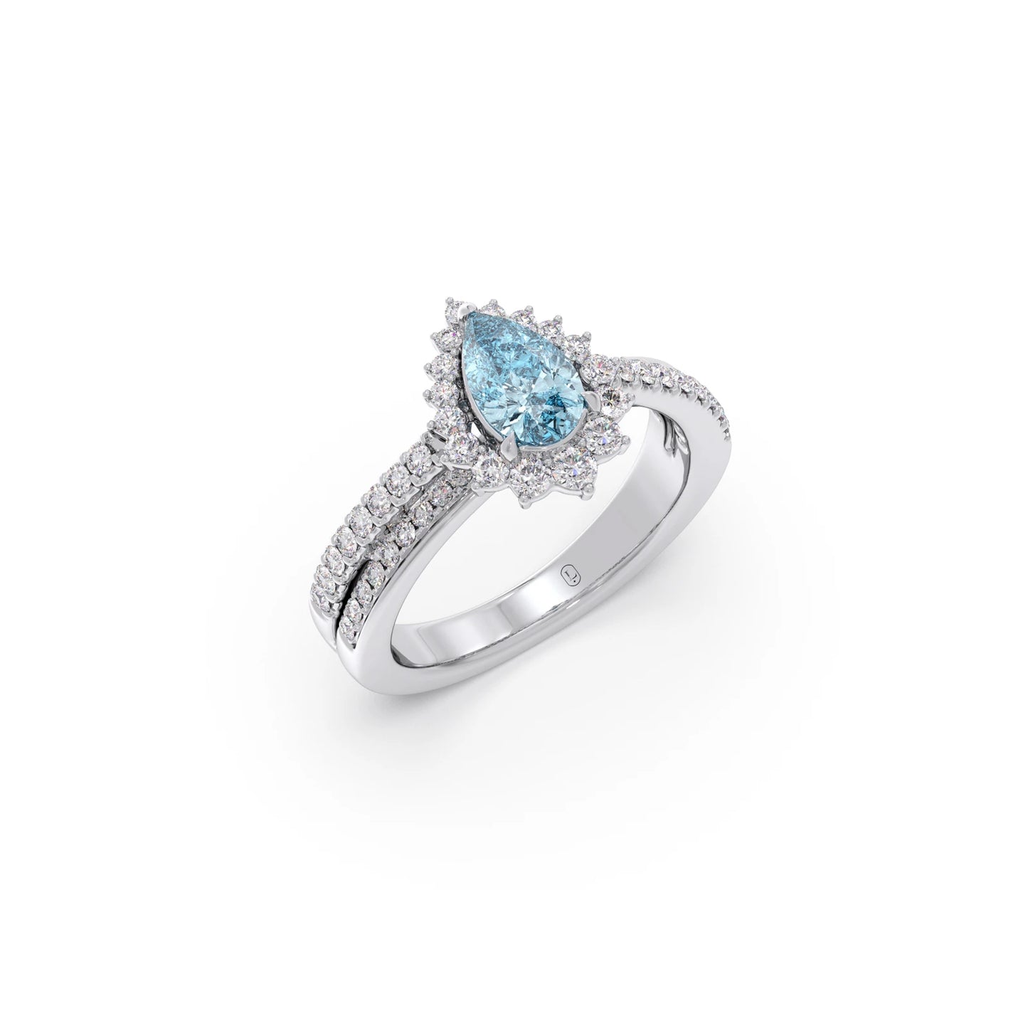 Pear-Shaped Gemstone with Diamond Halo and Accents Ring