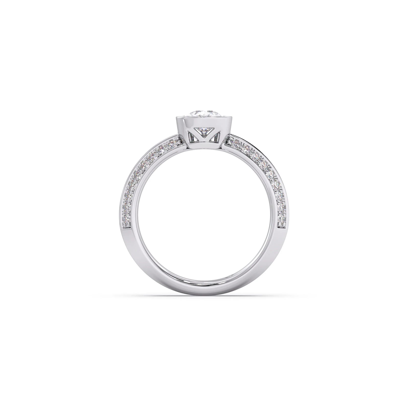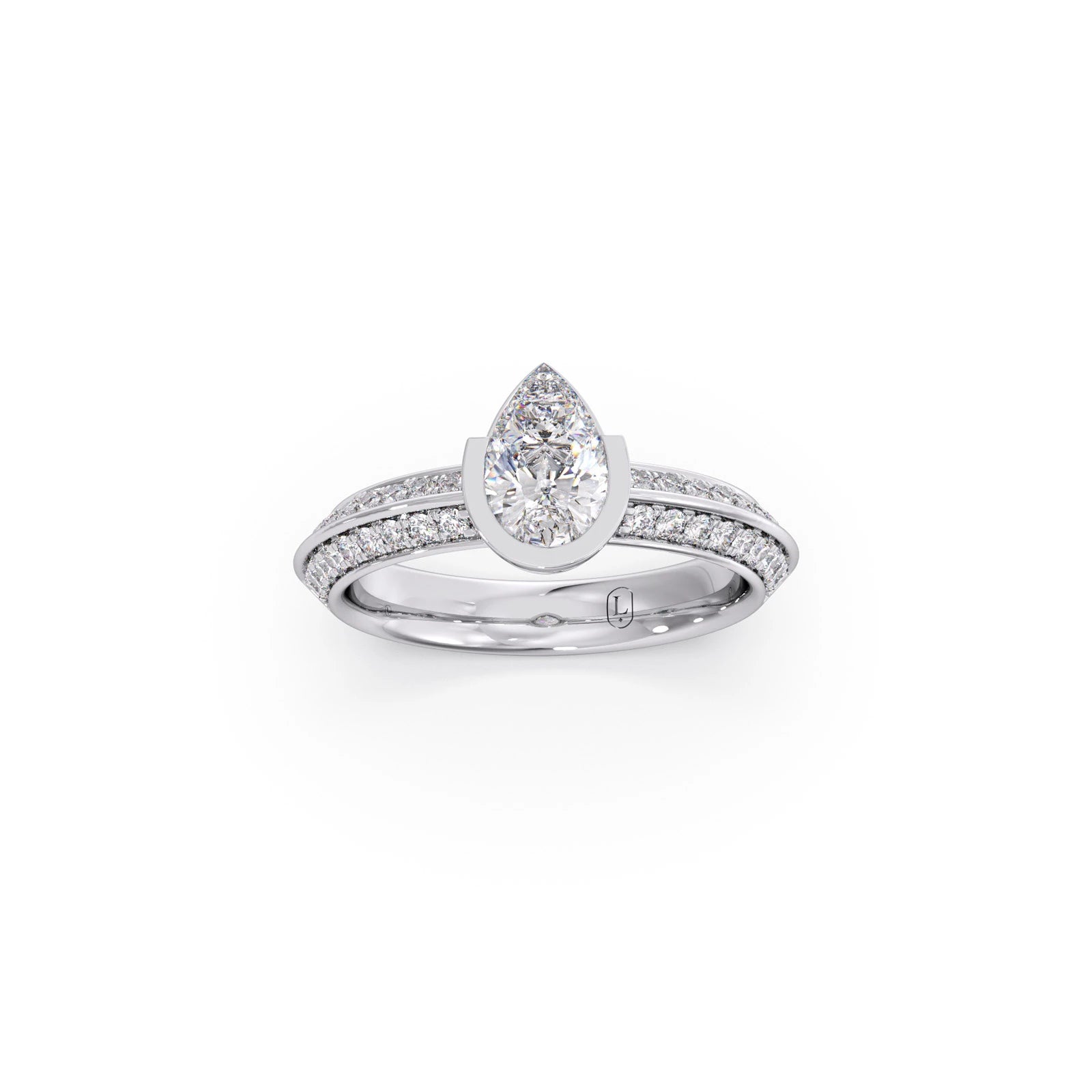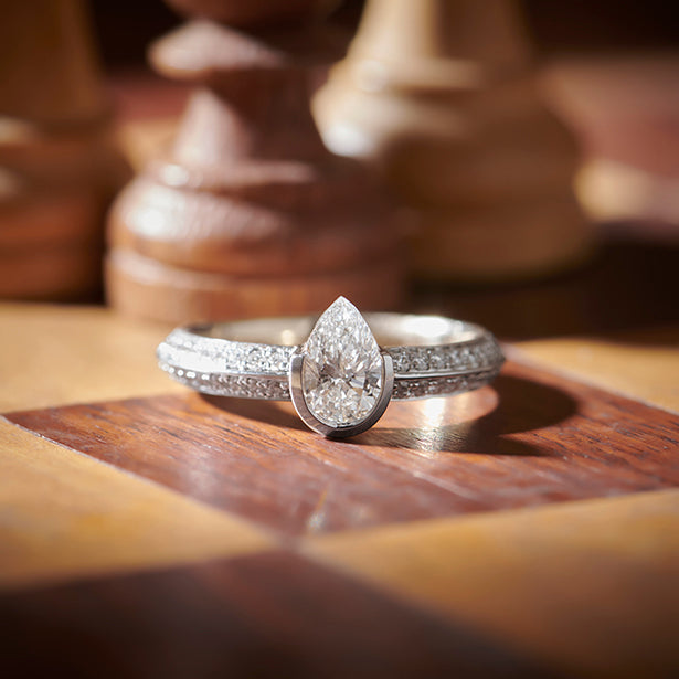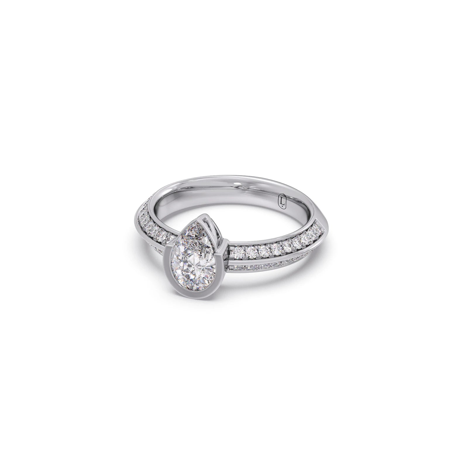 Pear Solitaire with Side Diamond Band Ring