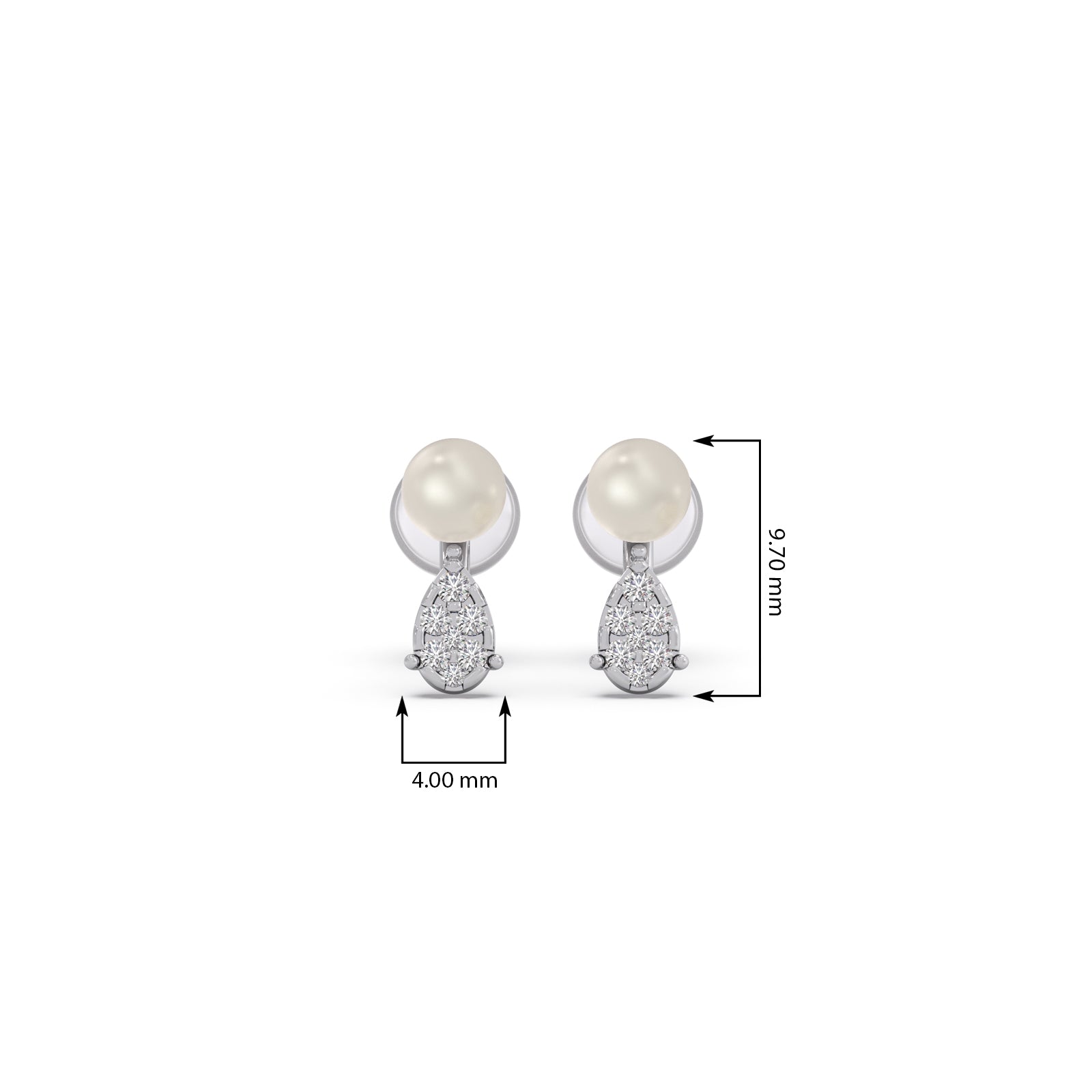 These earrings feature a contemporary classic,vertical pear drop hanged with fresh water pearls. Suspended below the pearl is a teardrop or pear-shaped cluster of round diamonds to enhance their brilliance. Their delicate size and sophisticated sparkle make them suitable for both everyday professional wear and formal attire.