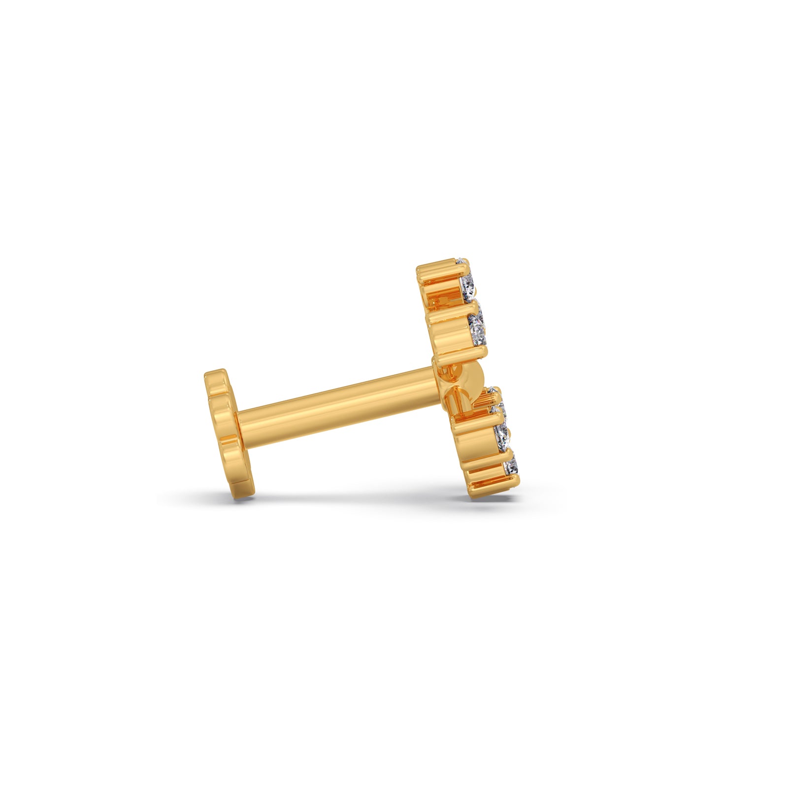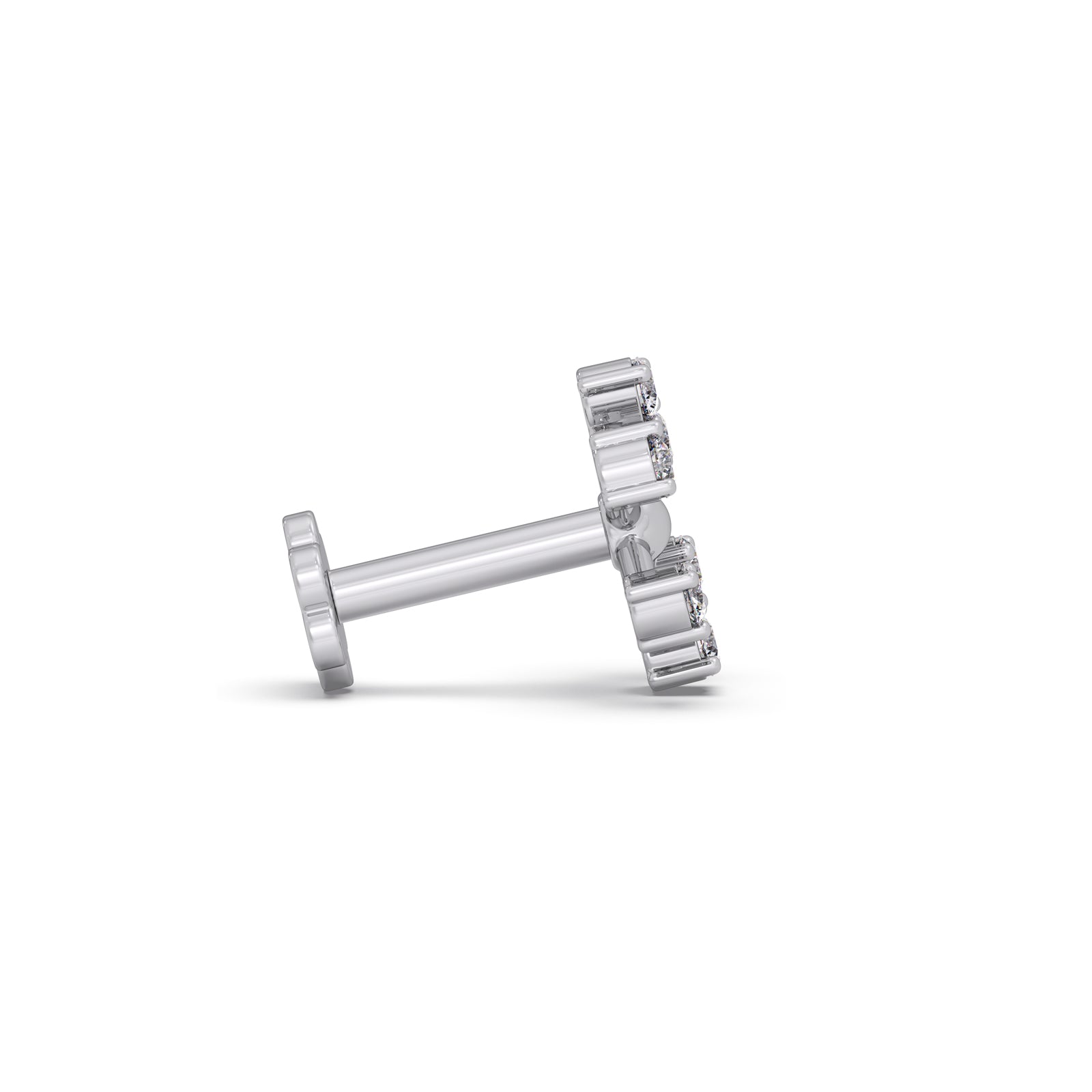 The Petal Earrings feature six round diamonds in each earring, arranged along the edges in a graceful petal-like design. A polished metal center adds contrast and depth, creating a refined floral look that blends sparkle with modern elegance—perfect for everyday sophistication or special occasions.