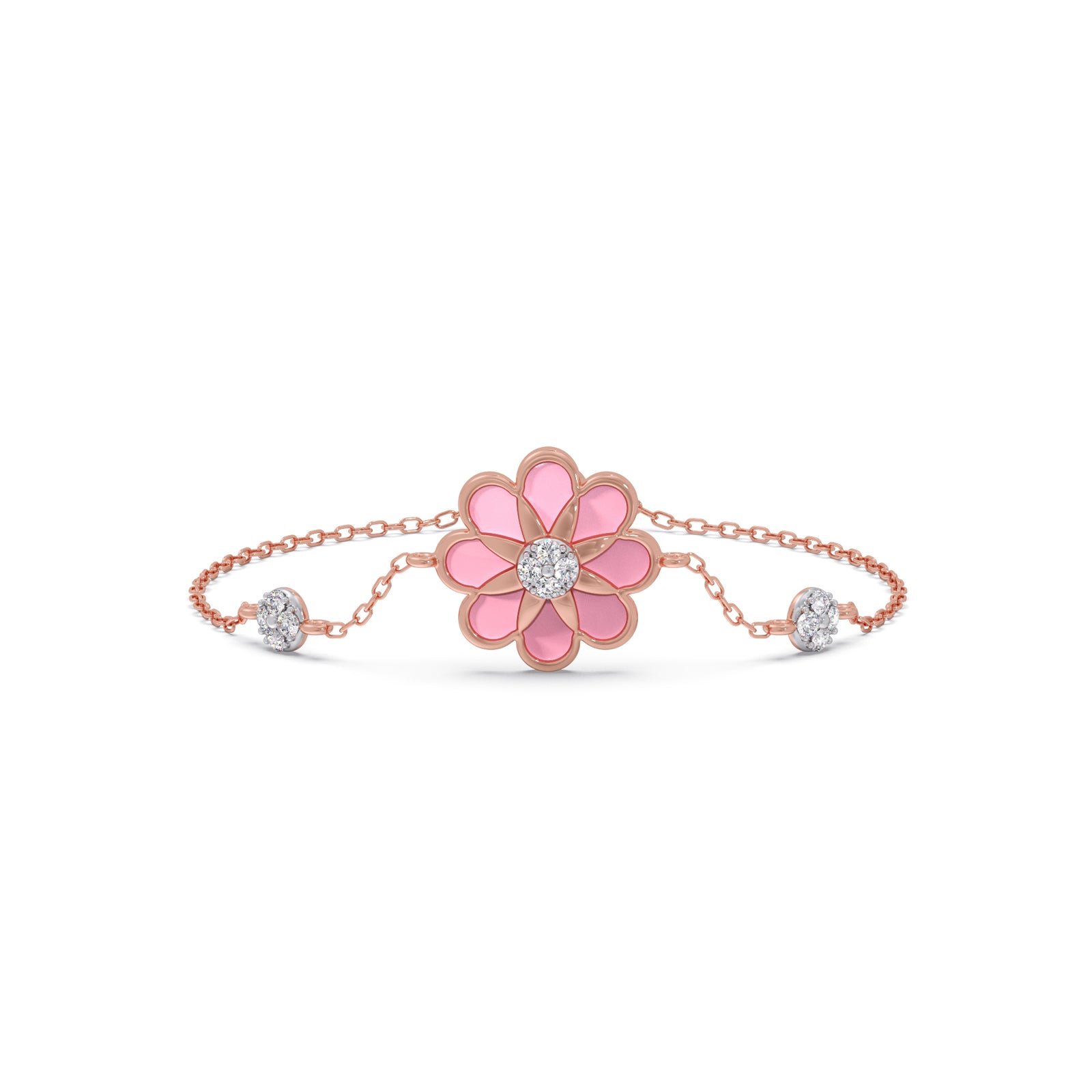 Pink Petal Bloom Diamond Kids Bracelet -A sweet, cheerful bracelet adorned with sparkling diamonds and soft pink petals, adding a touch of charm, innocence, and playful elegance to your little one’s everyday look.