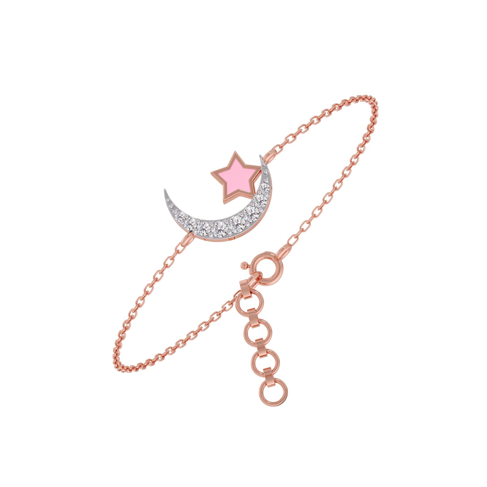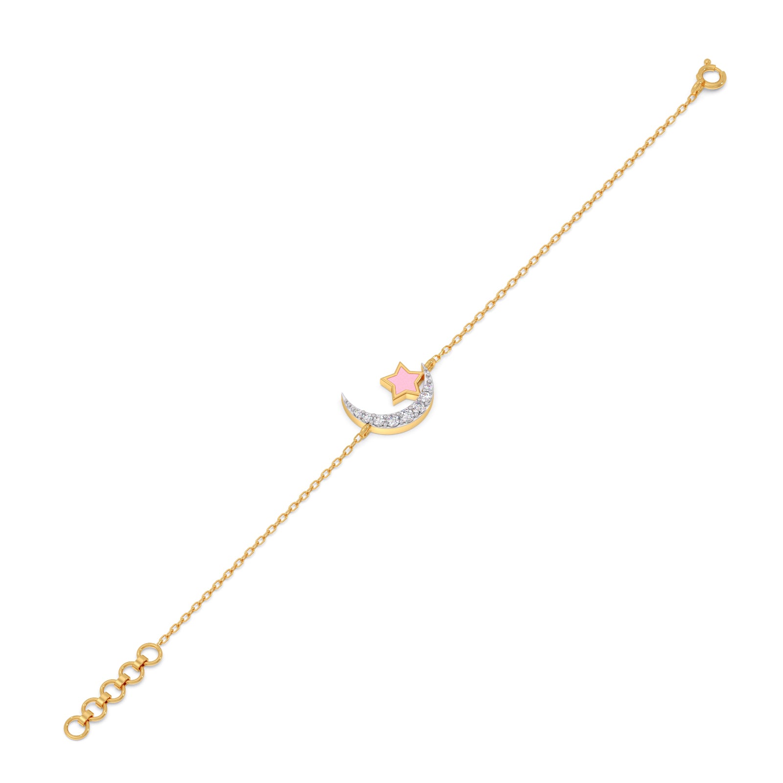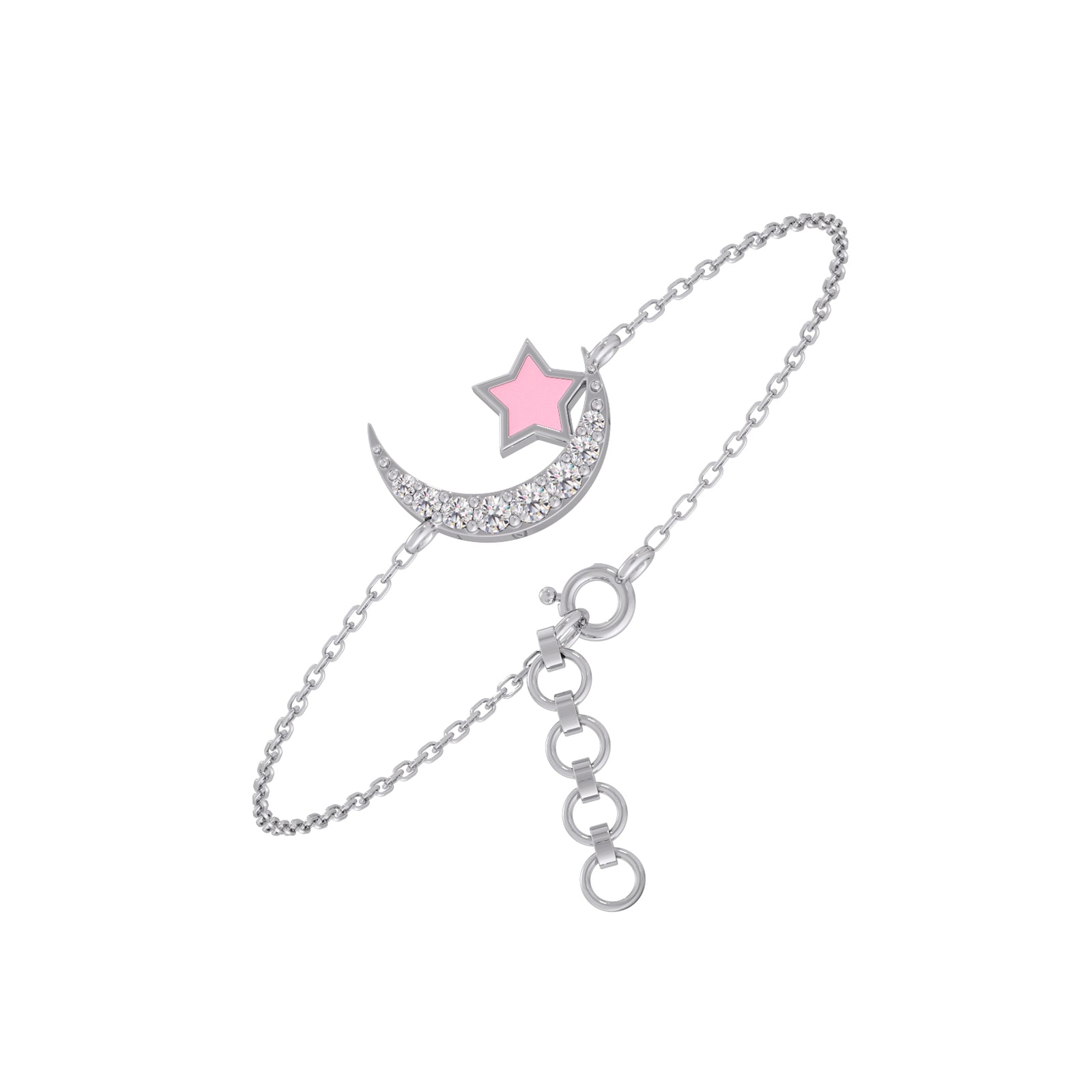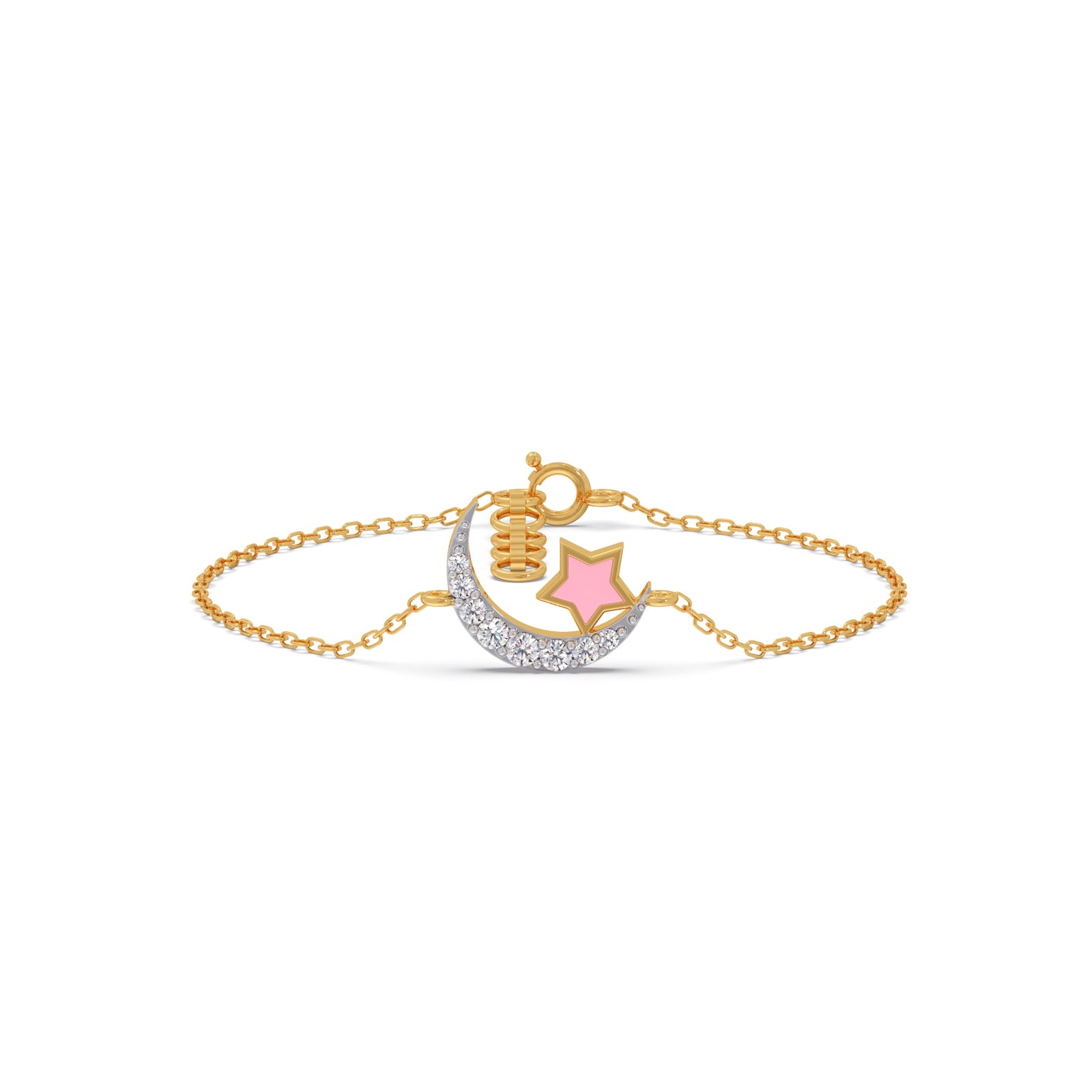 Pink Stardust Moon Diamond Kids Bracelet -A dreamy bracelet featuring a sparkling moon accented with soft pink details, adding a touch of magic, wonder, and celestial sparkle to every little star’s style.